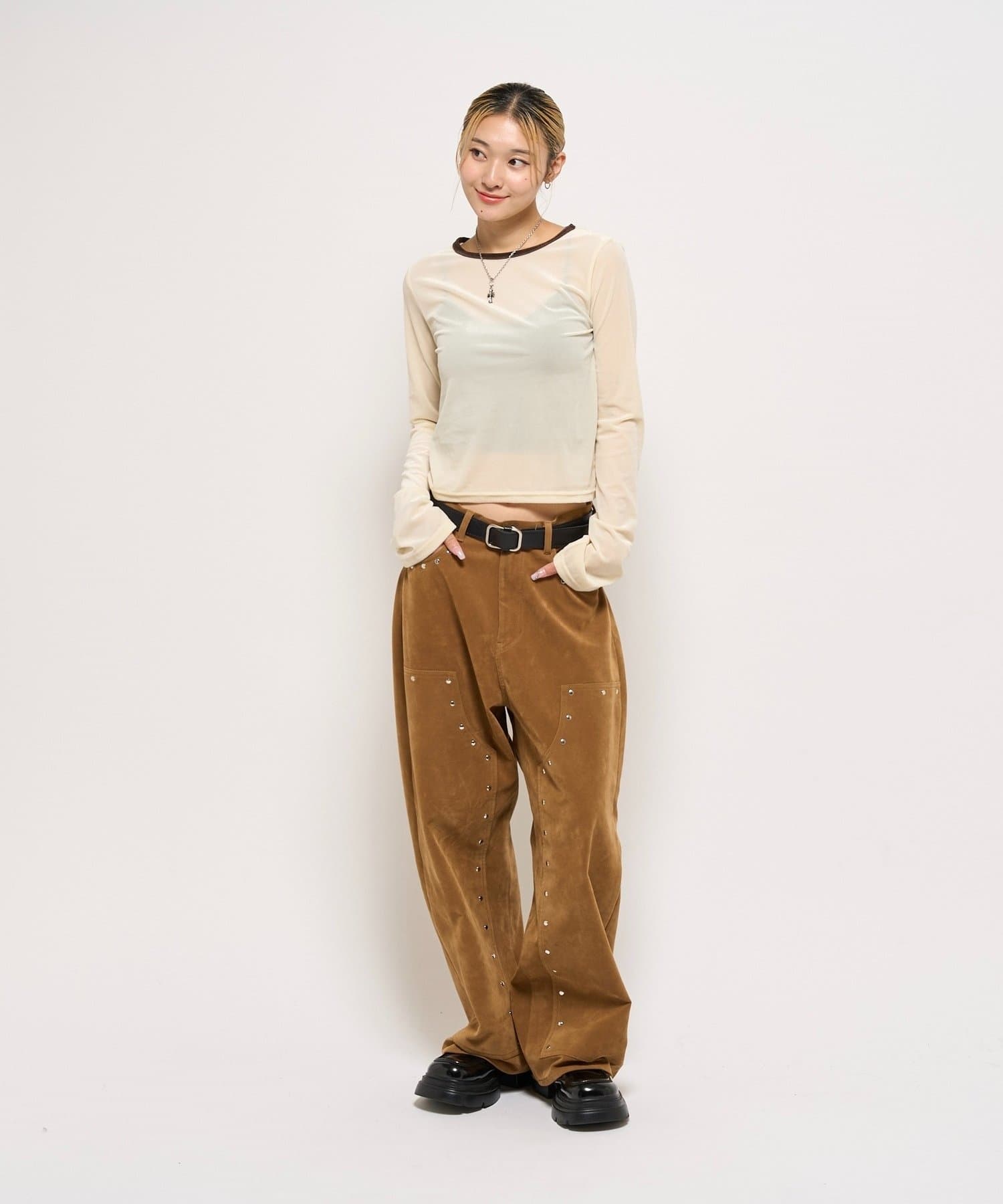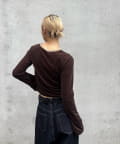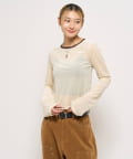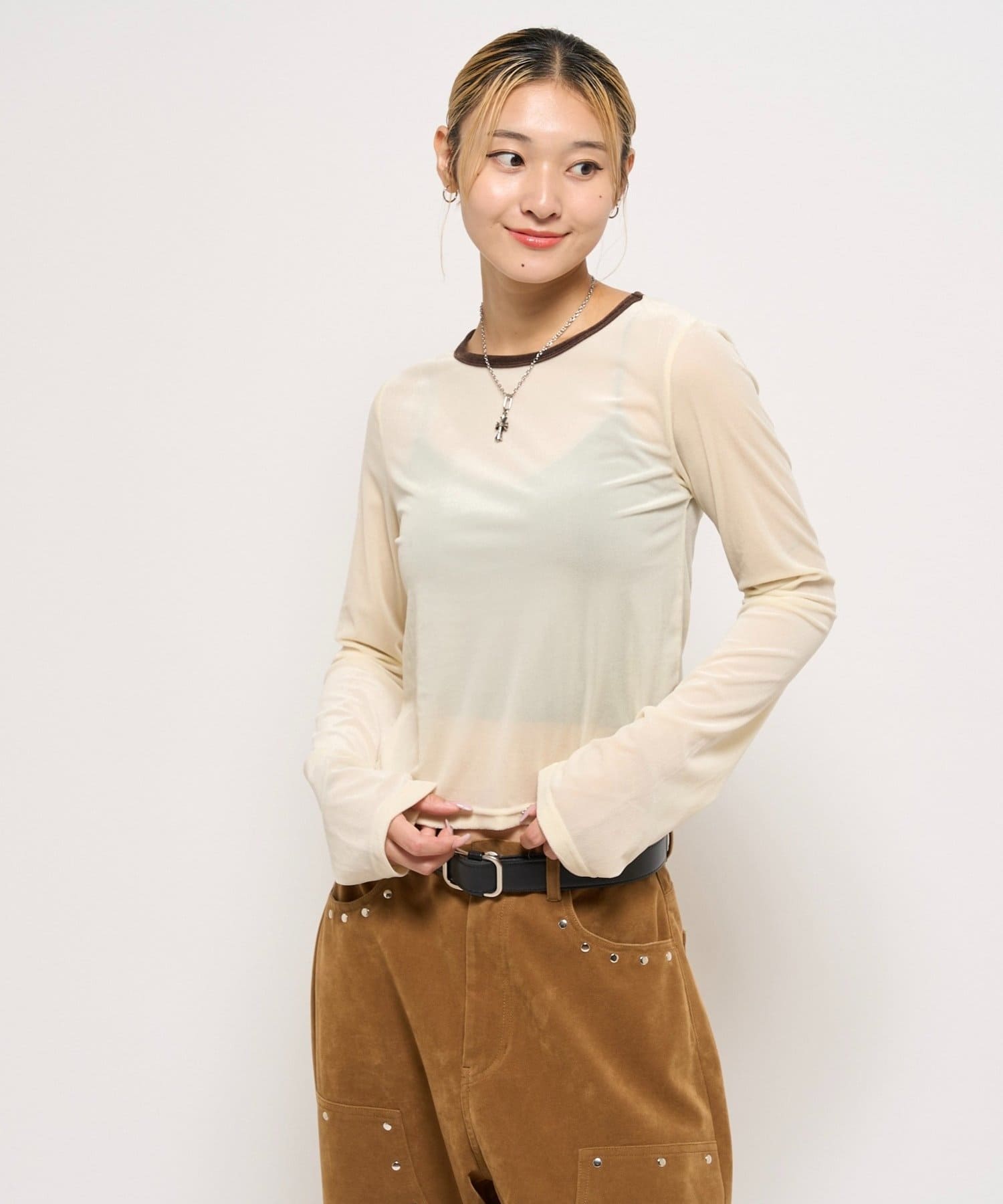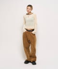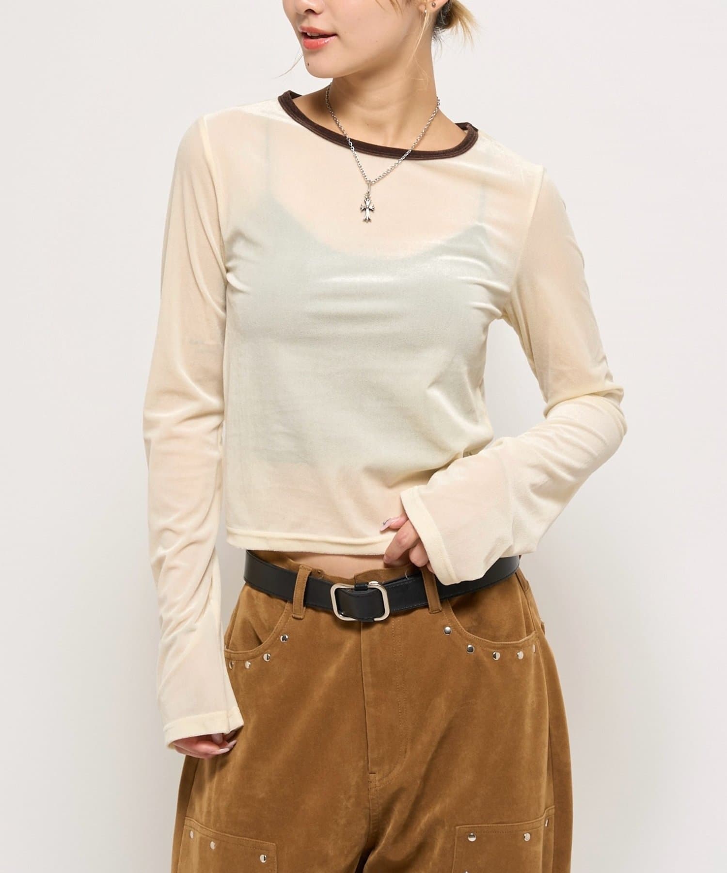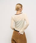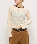 ・首元と袖口のリンガーデザインがポイントのトップス。