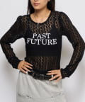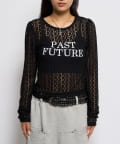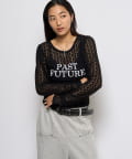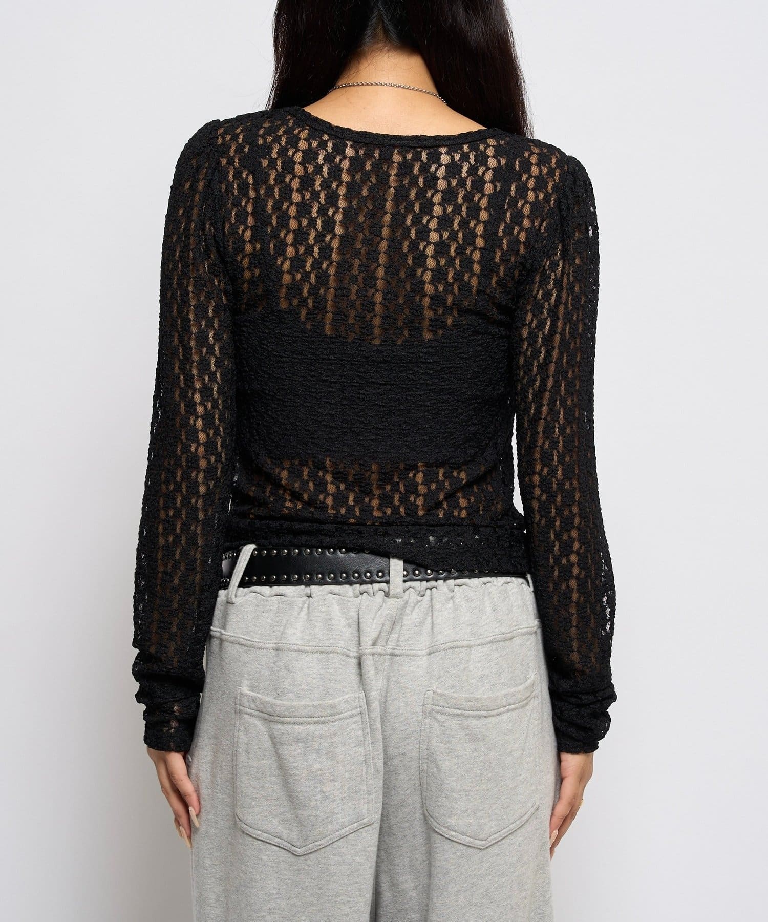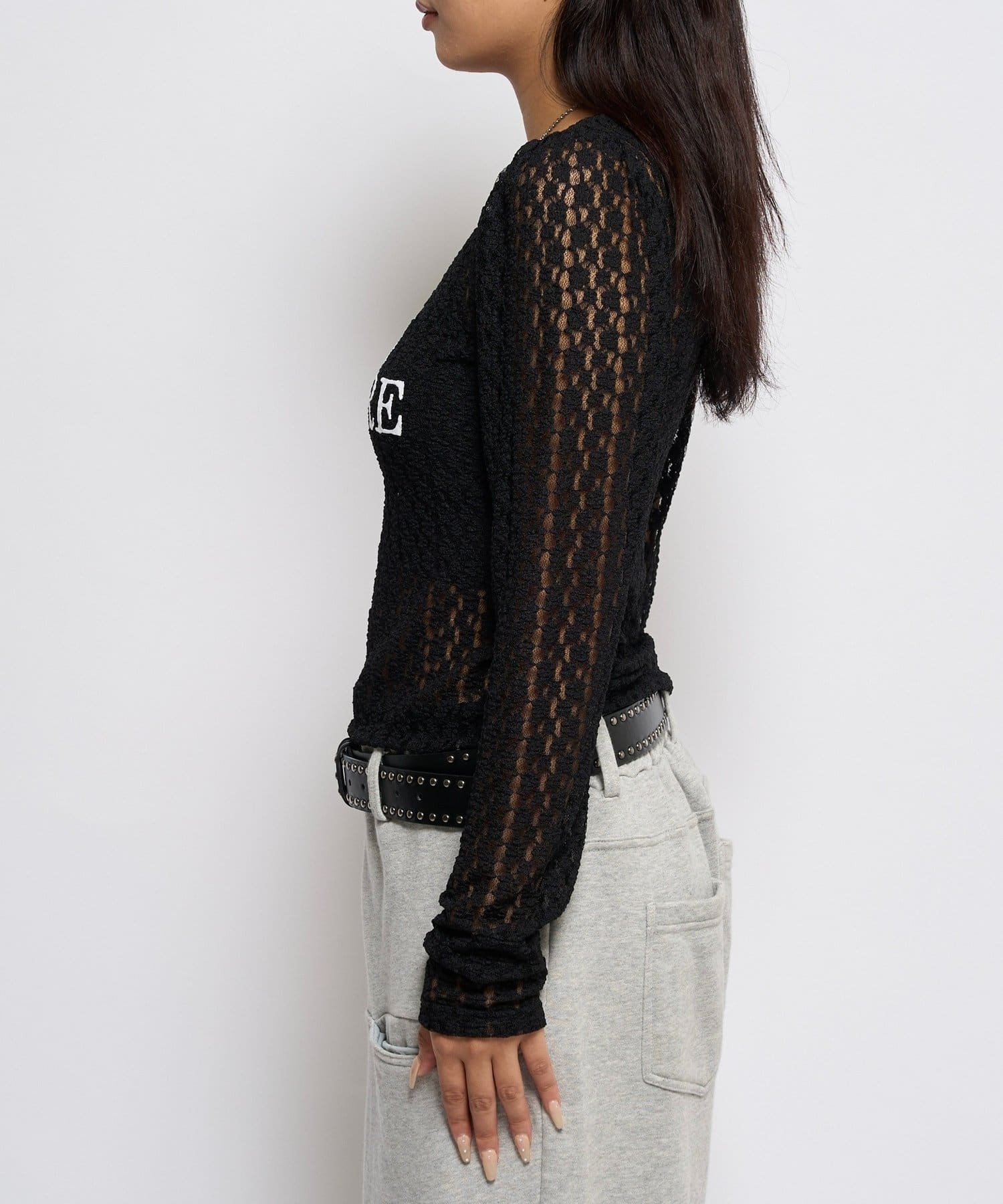 ・トレンド素材の繊細なレース編みが目を引く、ロゴ入りロングスリーブTシャツ。