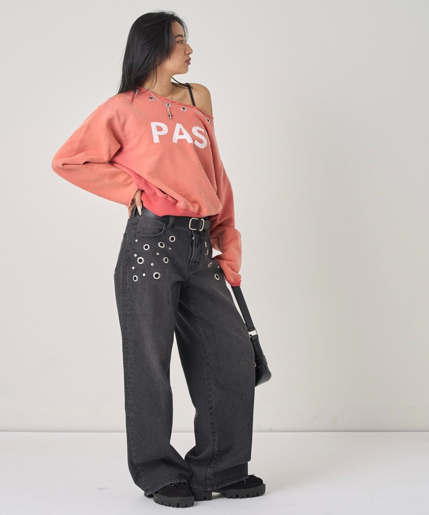 ・かすれた風合いのプリントがヴィンテージライクな雰囲気を醸し出すスウェットトップス。