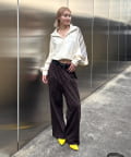ジャストサイズでスッキリと着れるので、ワイドパンツ合わせが相性抜群。