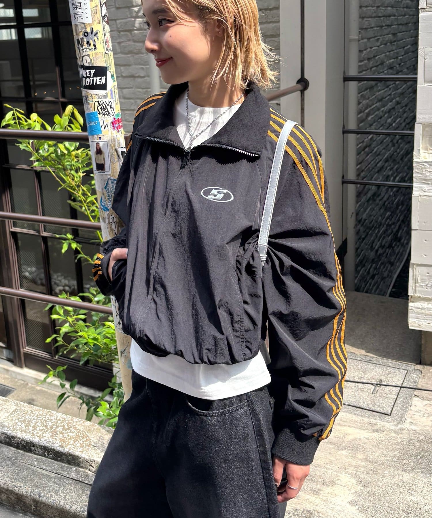 ・単色に袖のラインがバイカラーになっており、1枚で様になるアイテム。