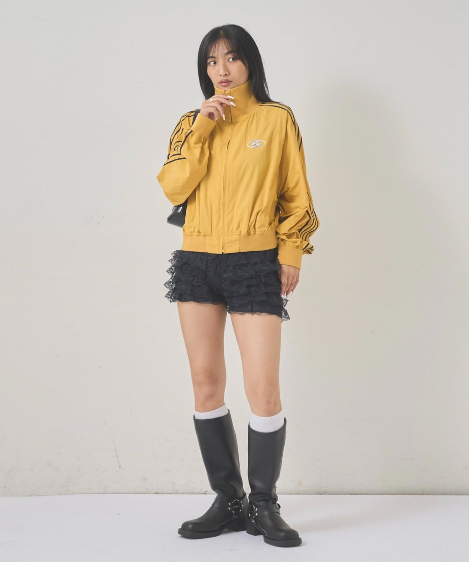 トレンドのレースアイテムと合わせることによって、トレンド感のある着こなしに。