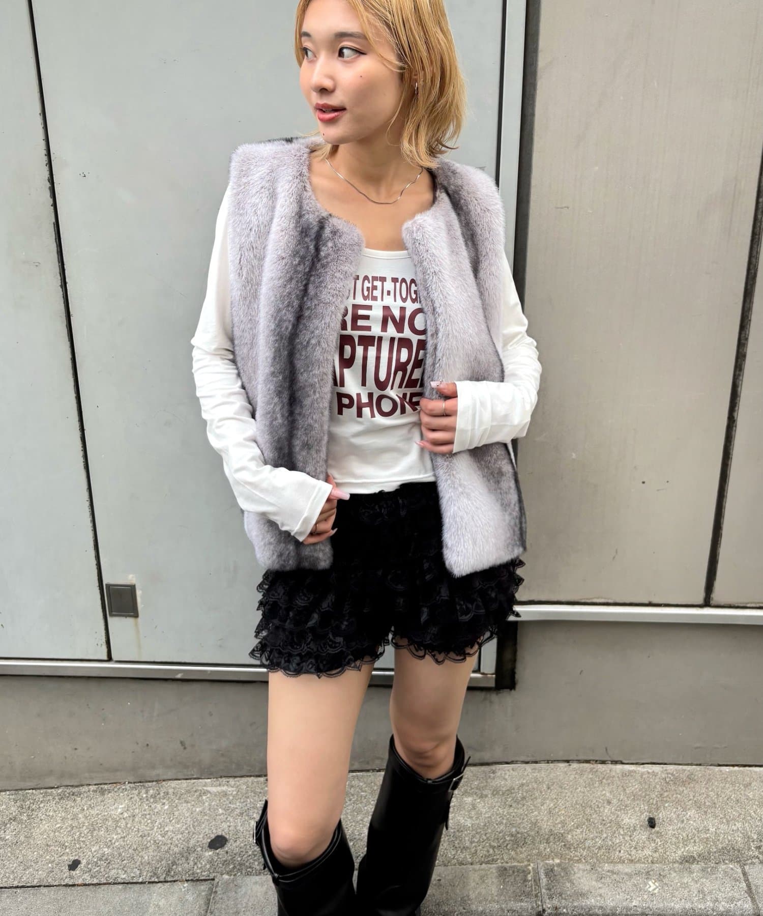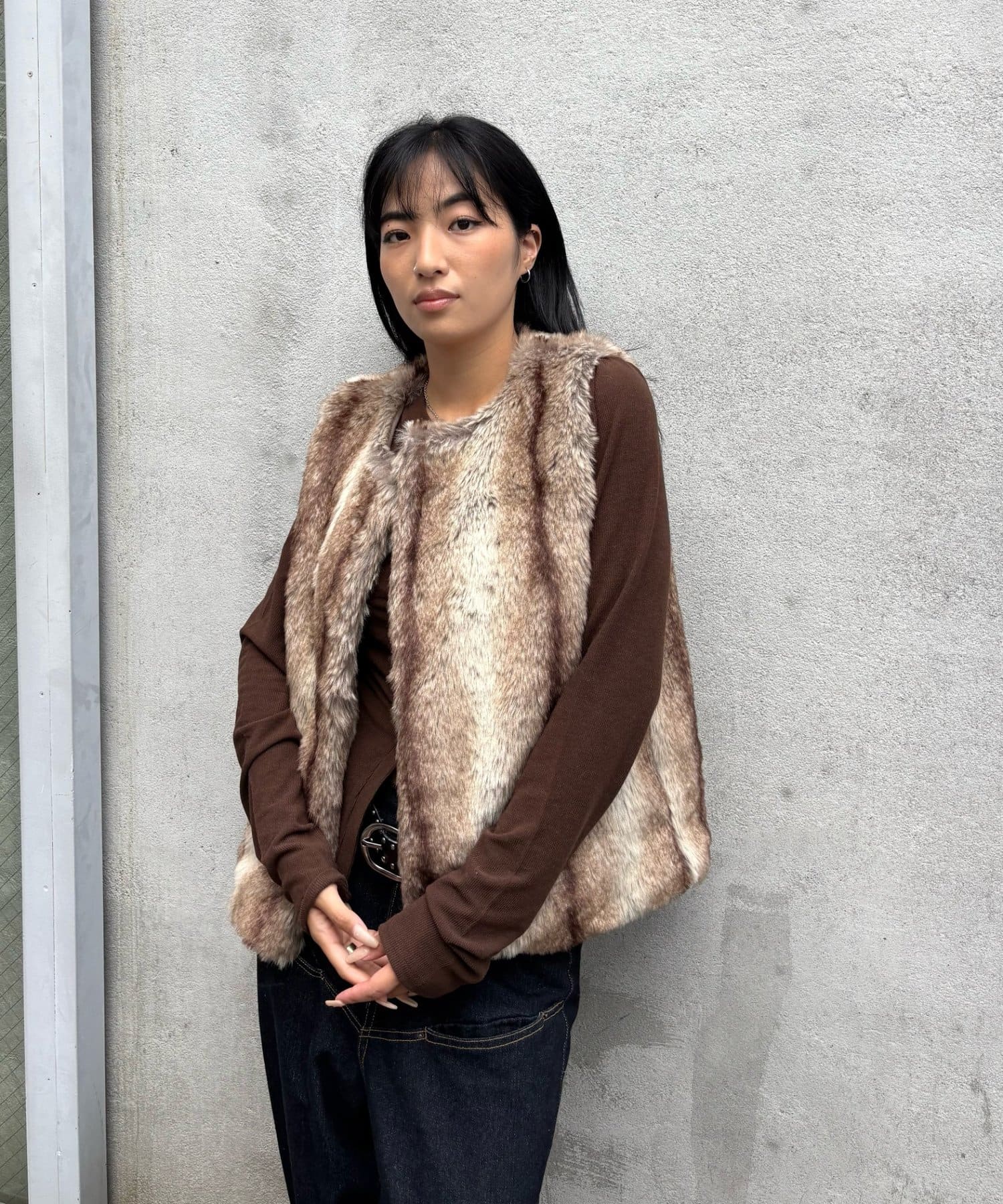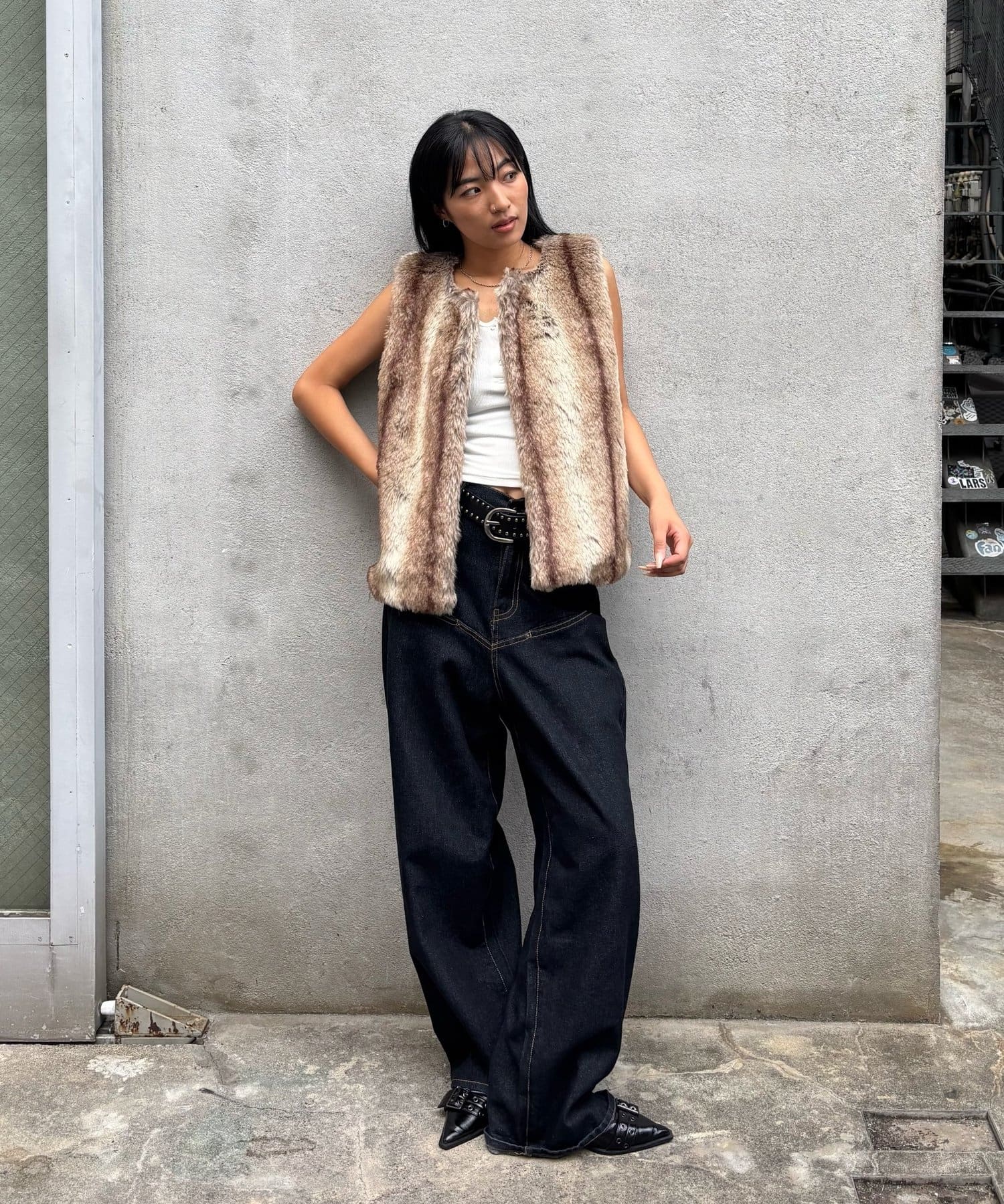 ・ファーベストのボリューム感を引き立てるため、トップスはすっきりとしたシルエットのものをチョイス。