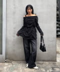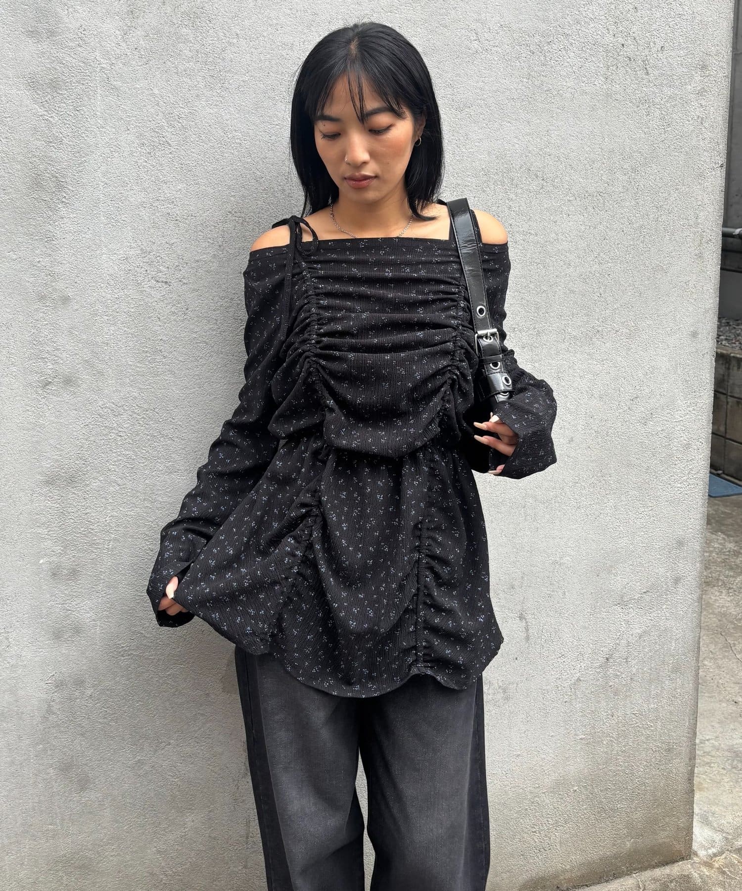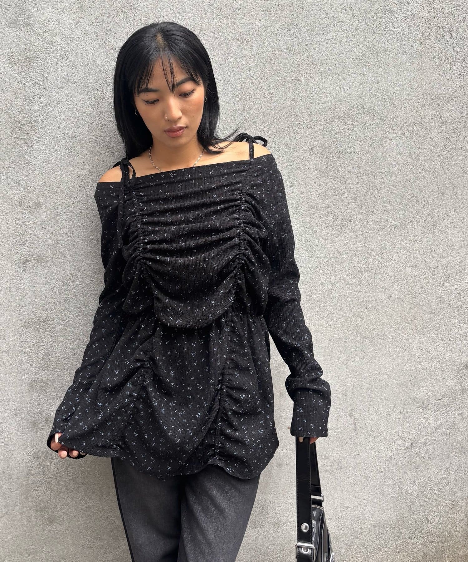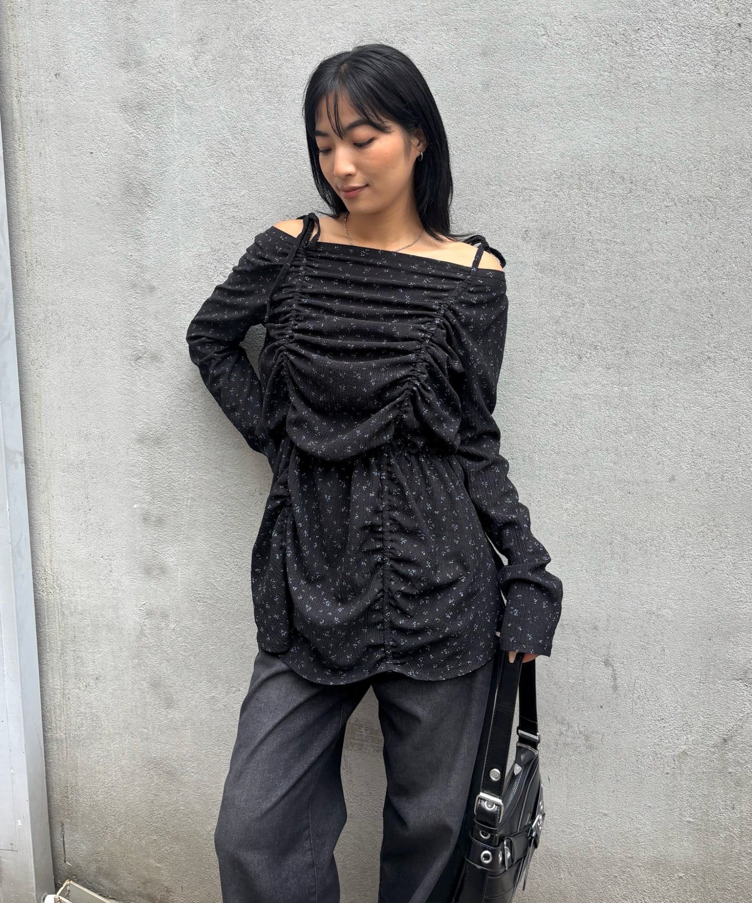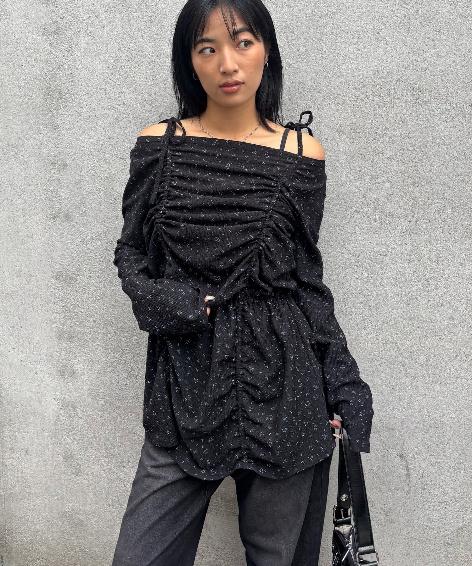 ・シャーリングの絞り具合でシルエットの変化を楽しめるチュニックワンピース。