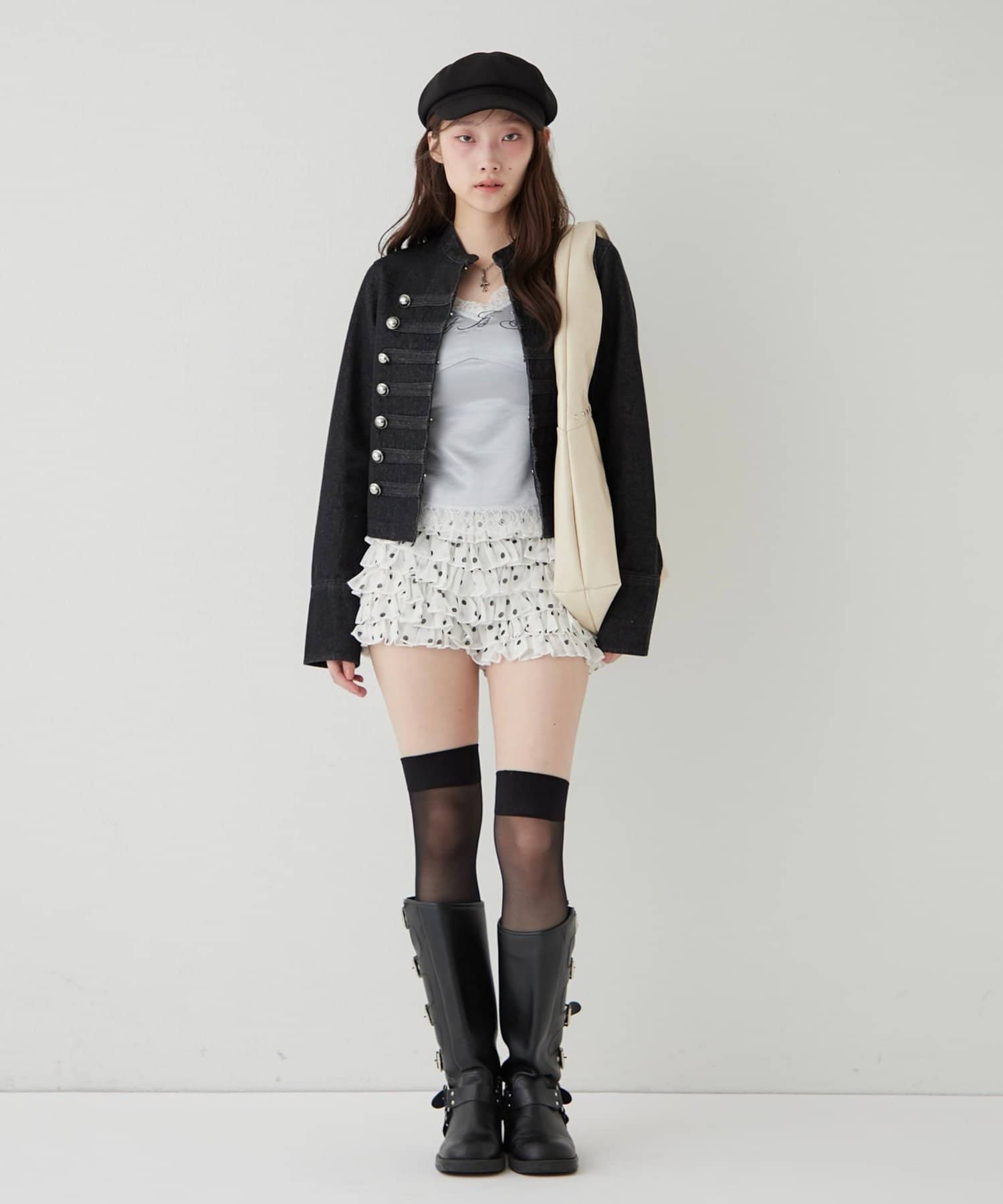 ►チェック柄が気になる方は韓国ガーリーな印象で着ることができます