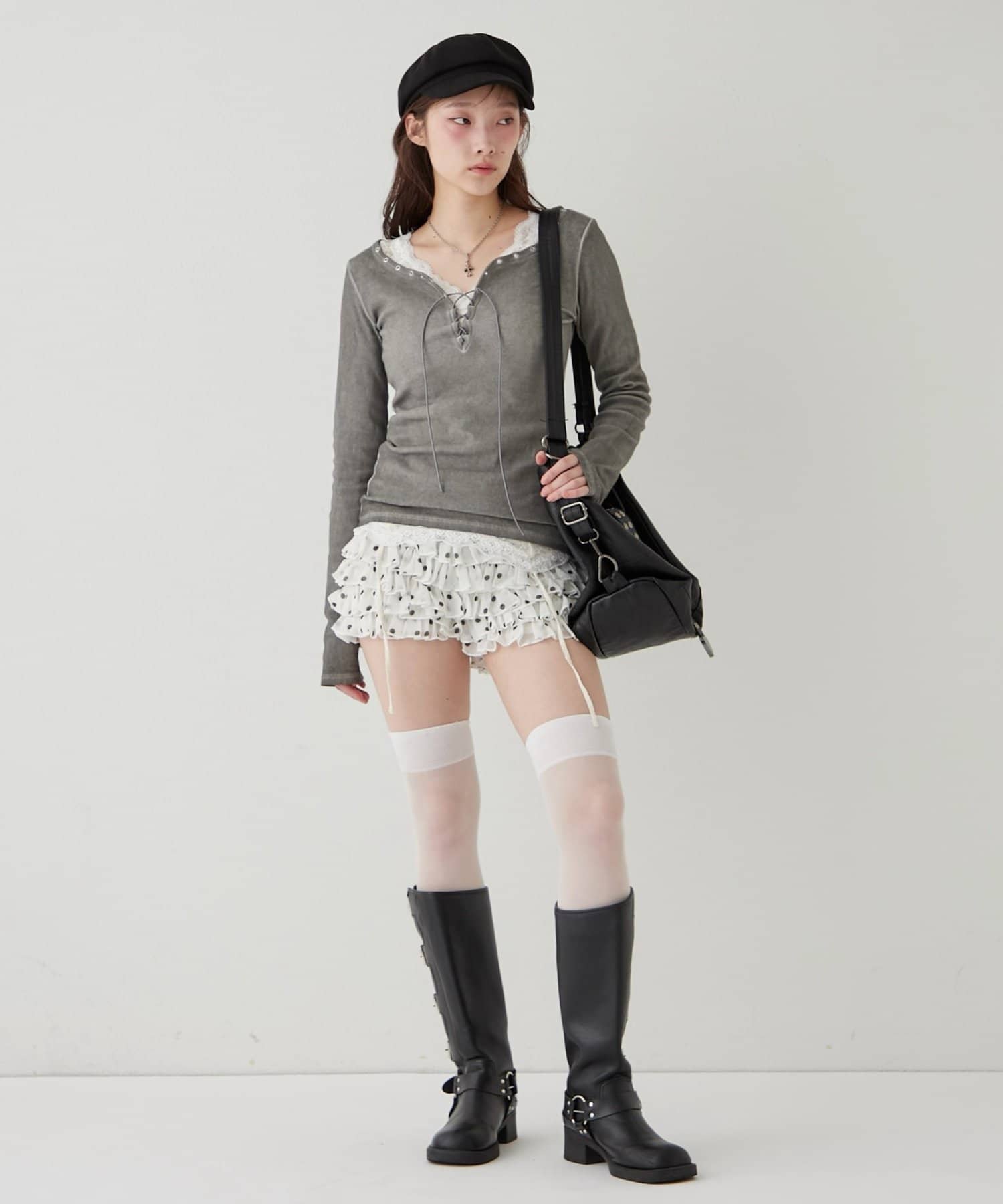 ►ドット柄が気になる方は韓国ガーリー、オルチャンファッションで着ることができます