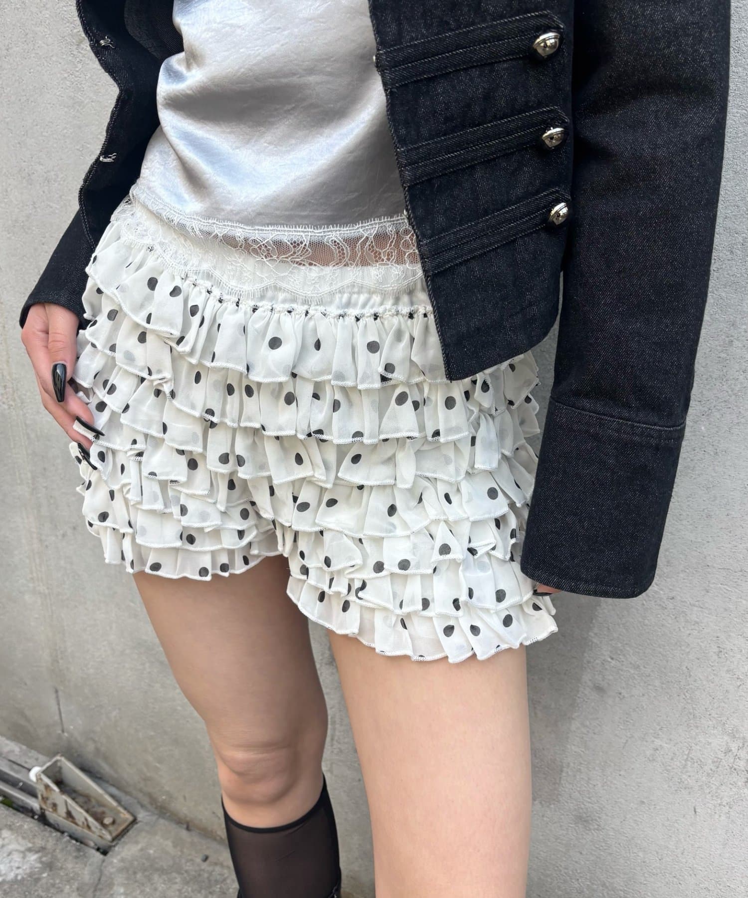・レースを重ねた可愛らしいショートパンツ