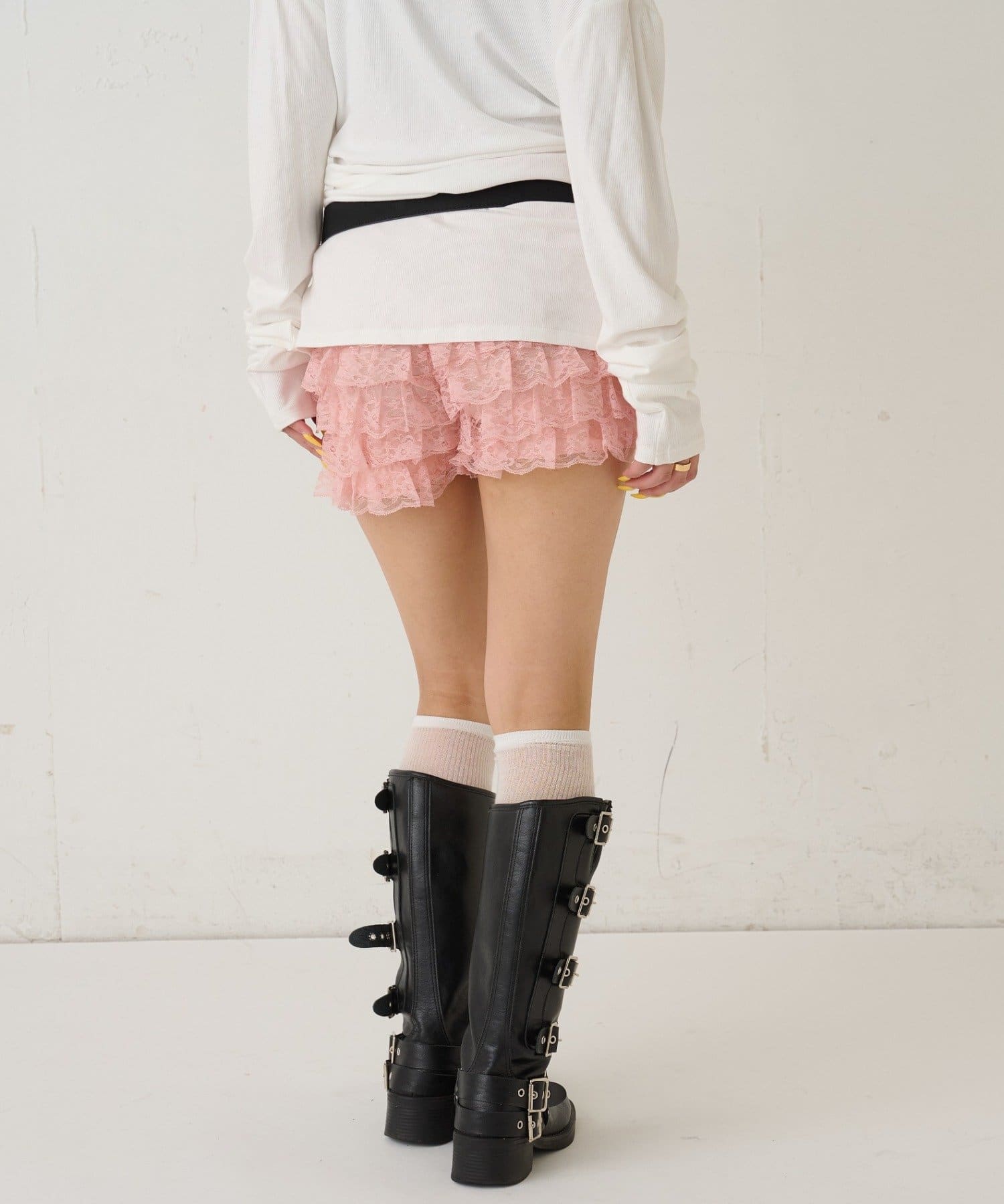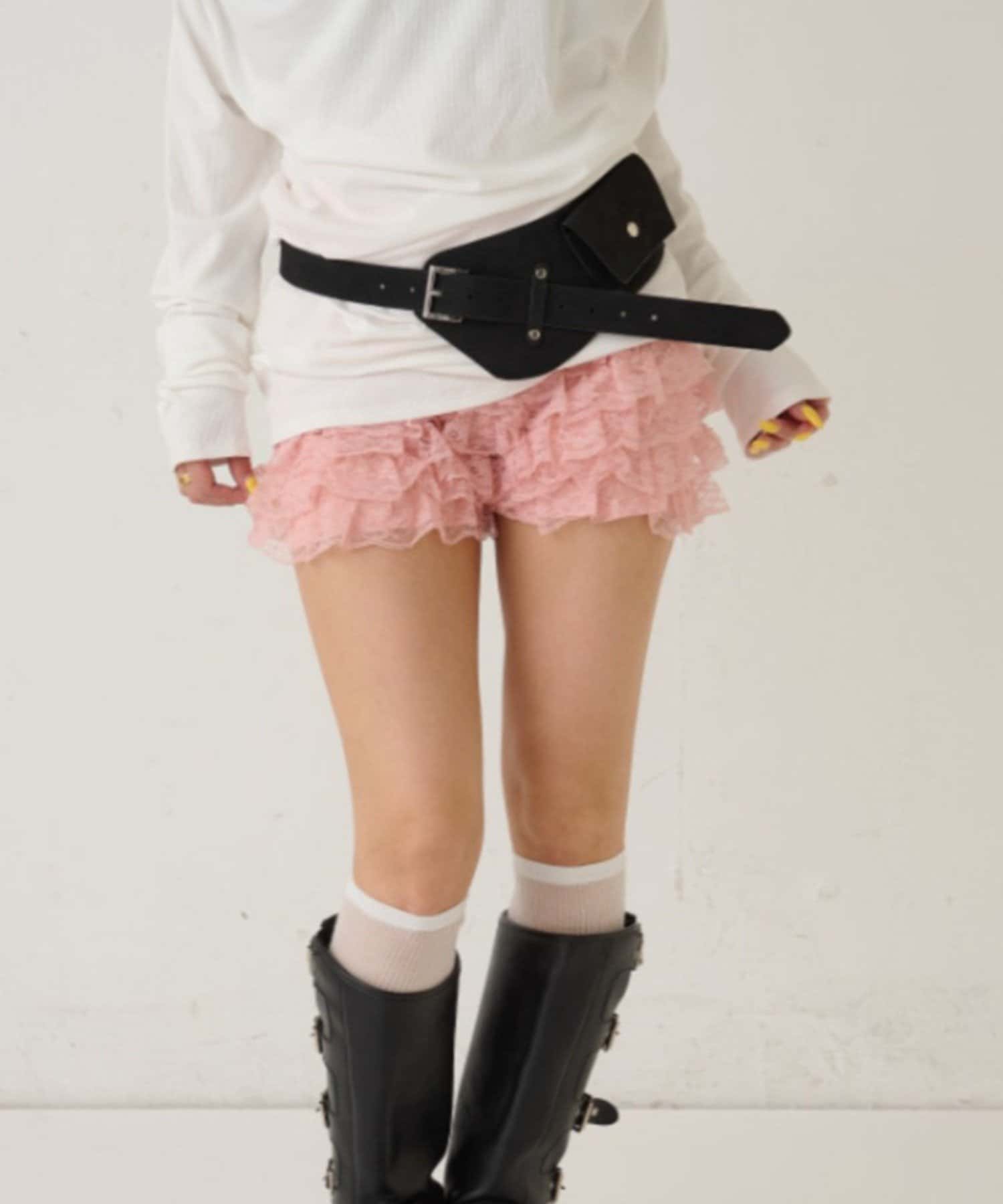 ・レースを重ねた可愛らしいショートパンツ