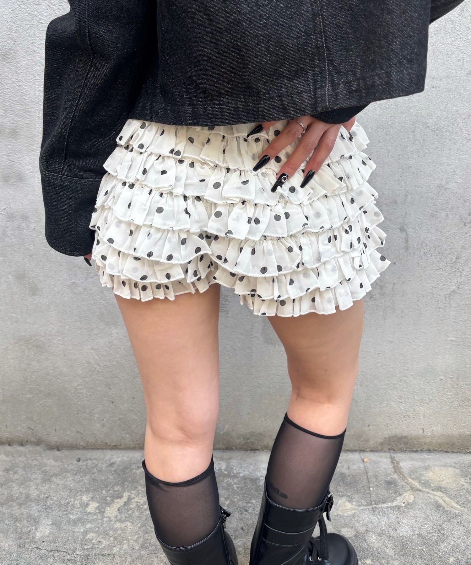 甘さとエッジを効かせた立体感のあるフリルデザインパンツ。