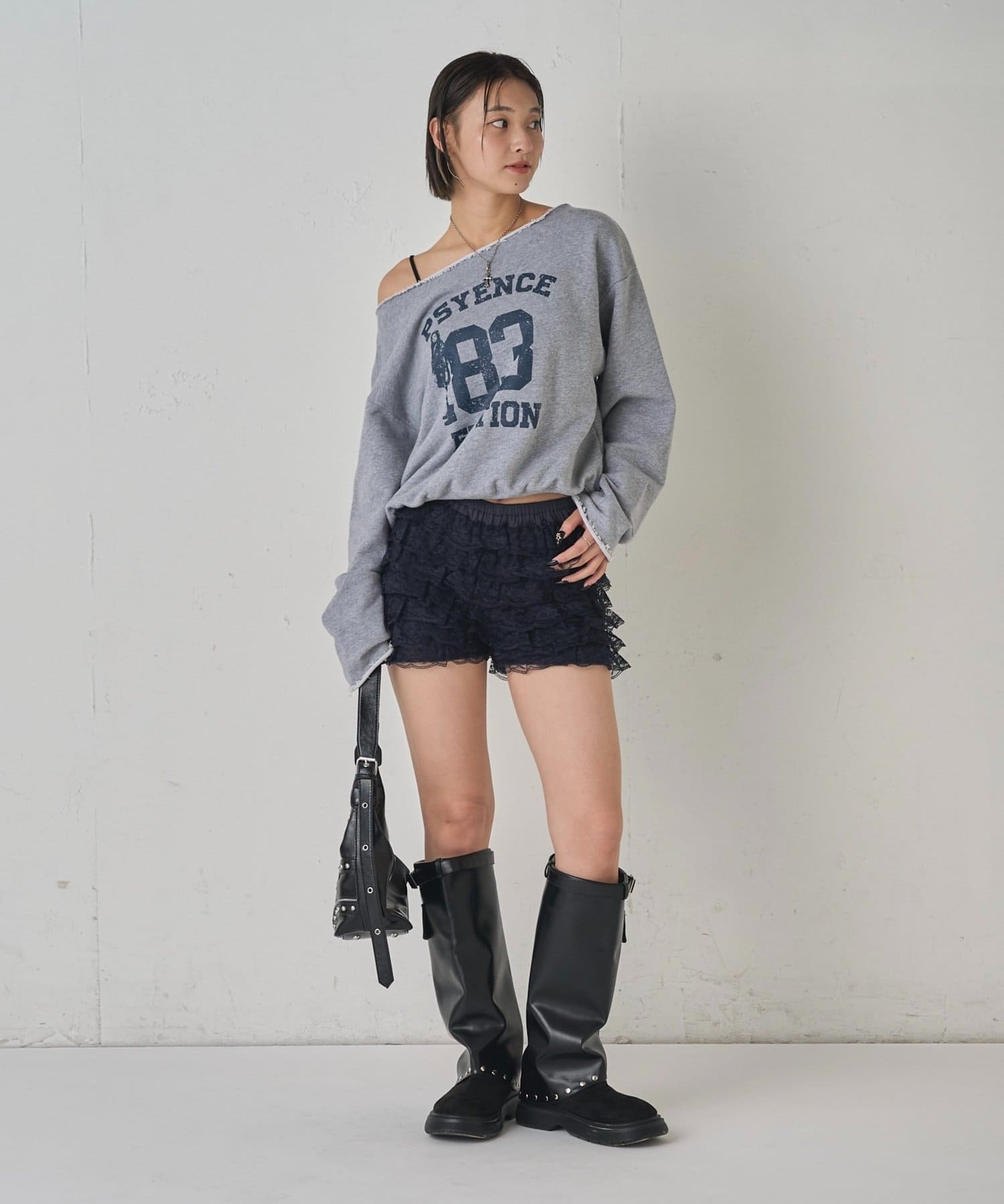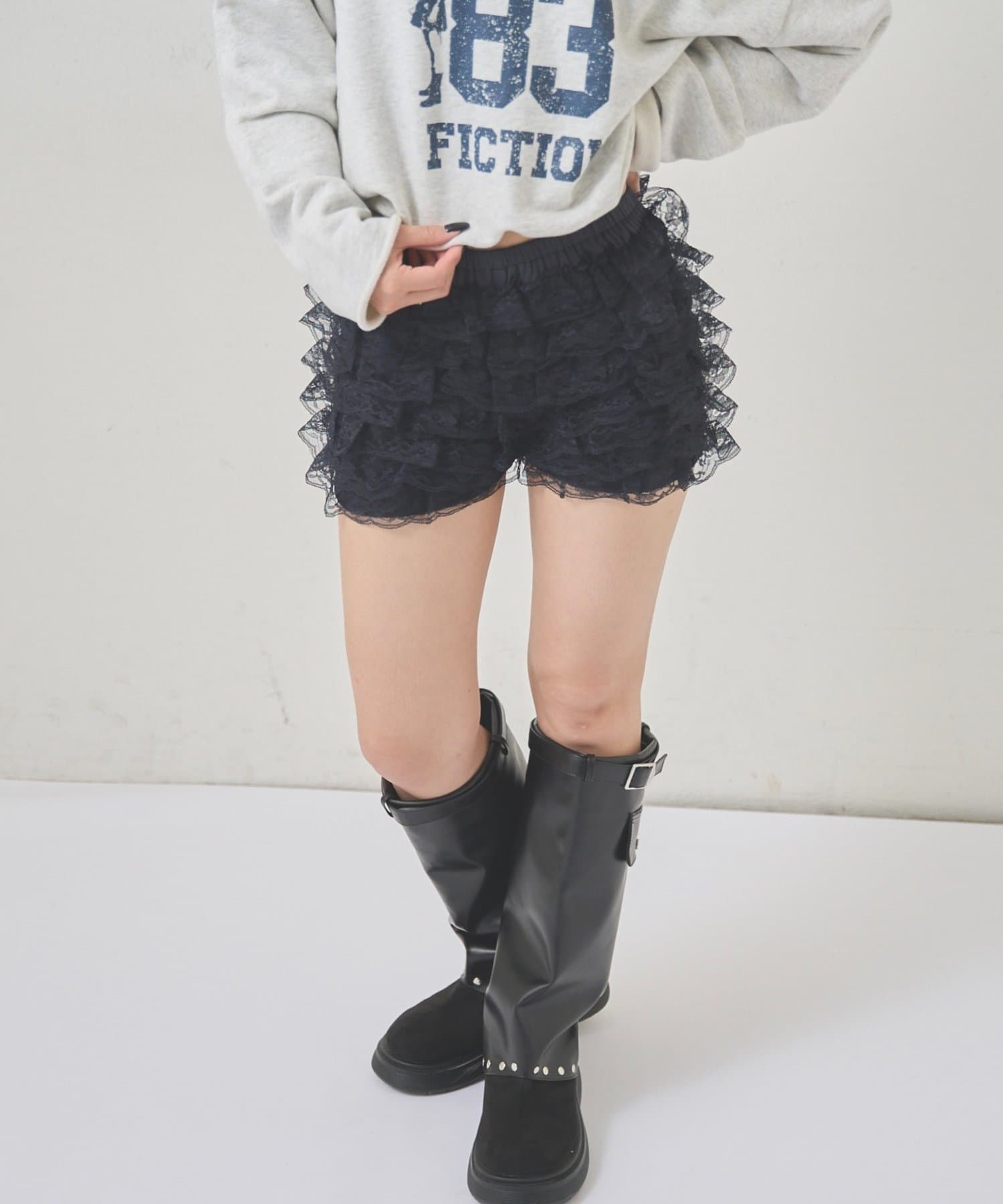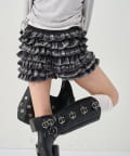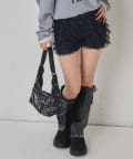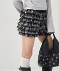 甘さとエッジを効かせた立体感のあるフリルデザインパンツ。