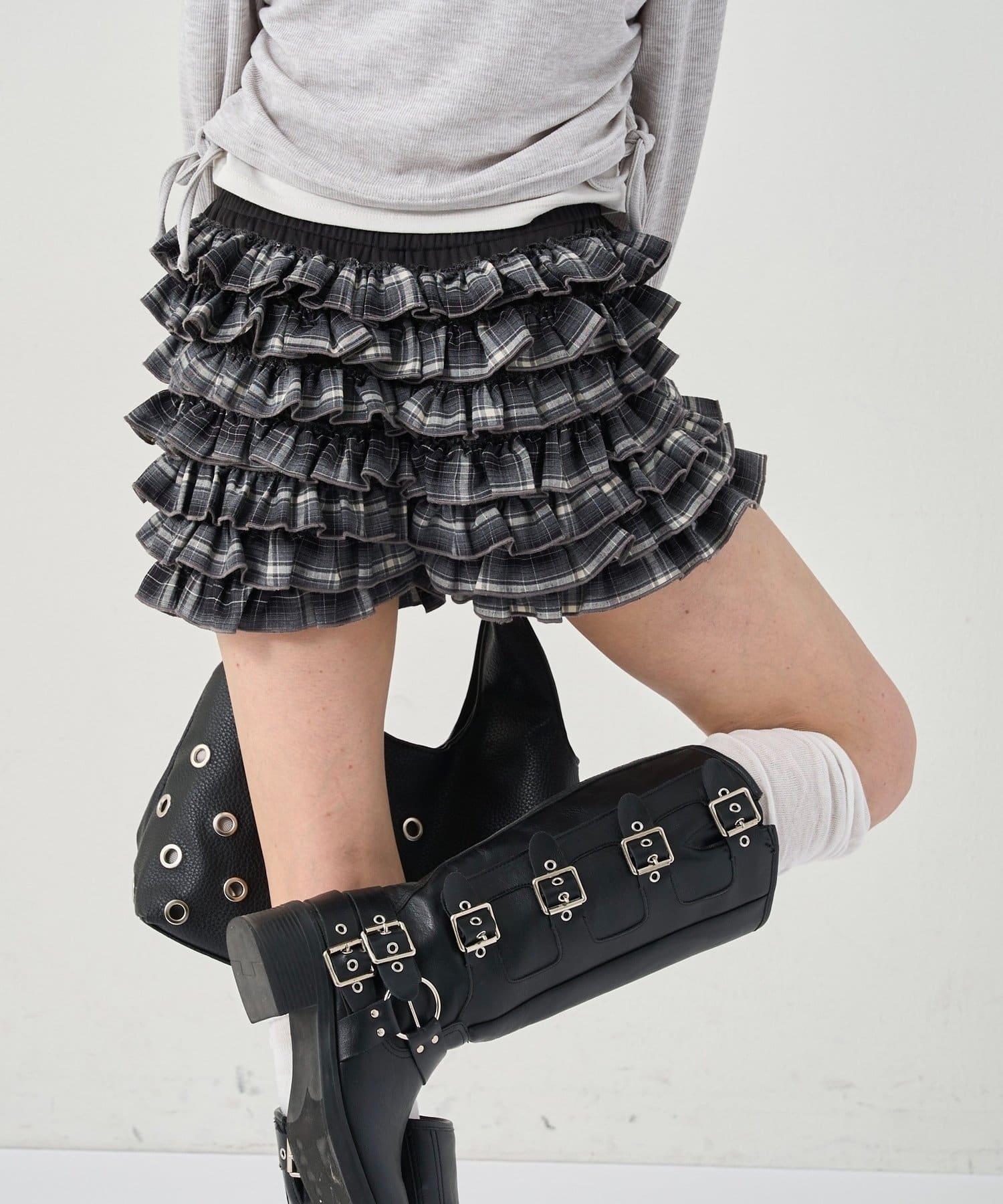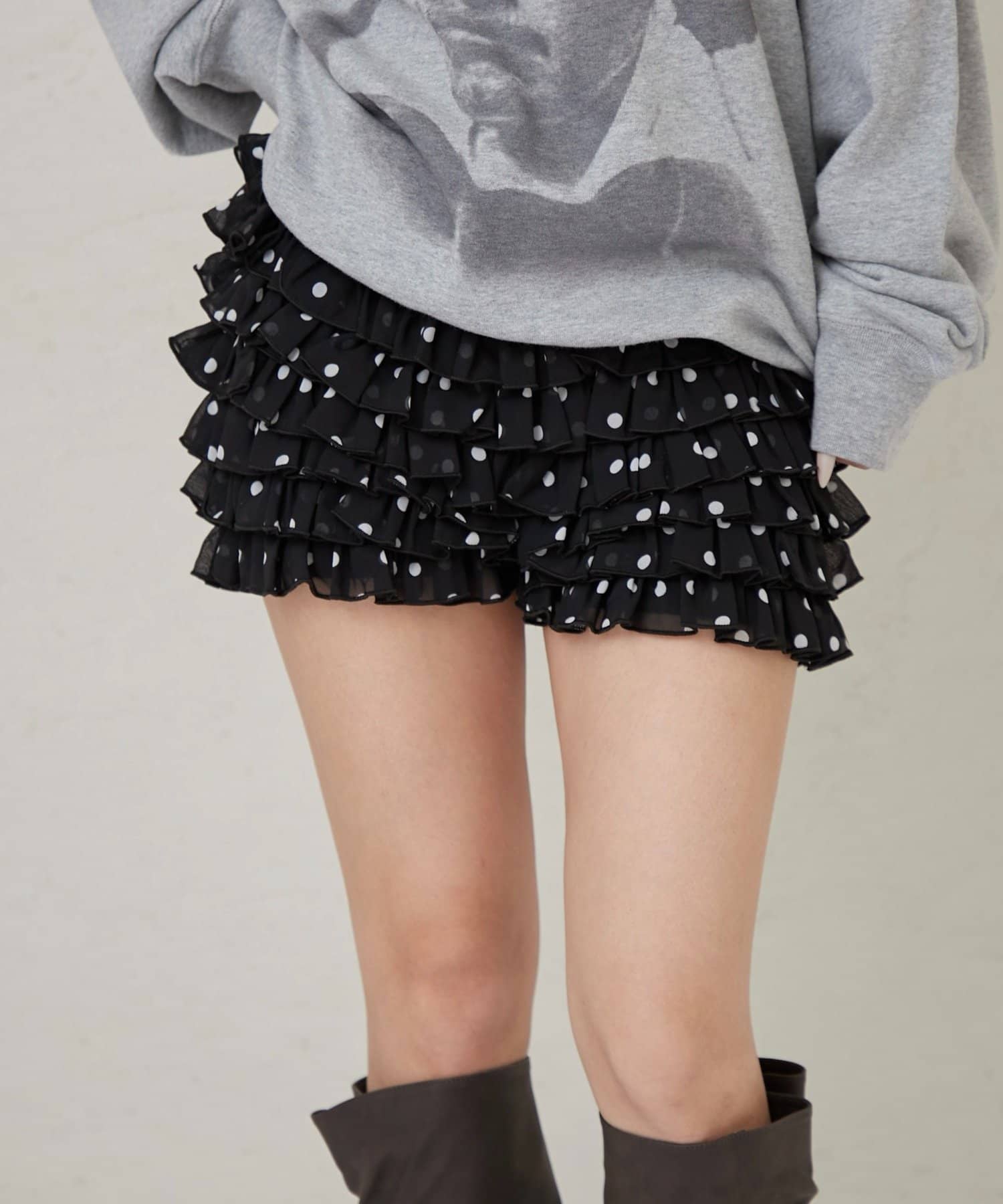 ・フリルを重ねたティアードデザインで、華やかな印象のアイテム。