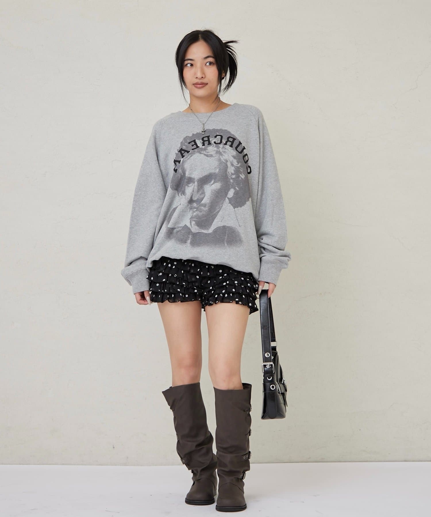 ・レザーやオーバーサイズのトップスなど辛めなアイテムとの相性抜群!