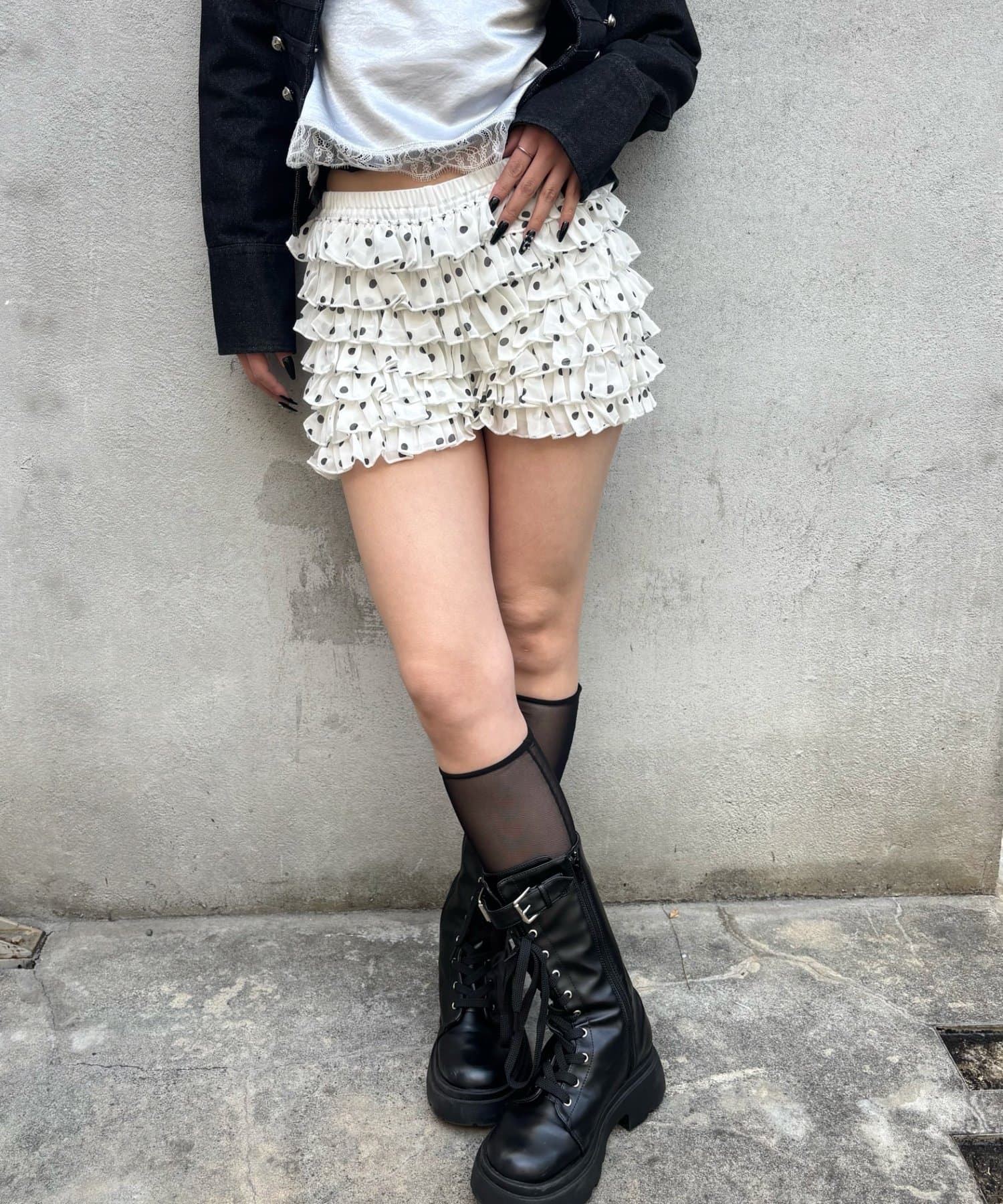 ・レースを重ねた可愛らしいショートパンツ