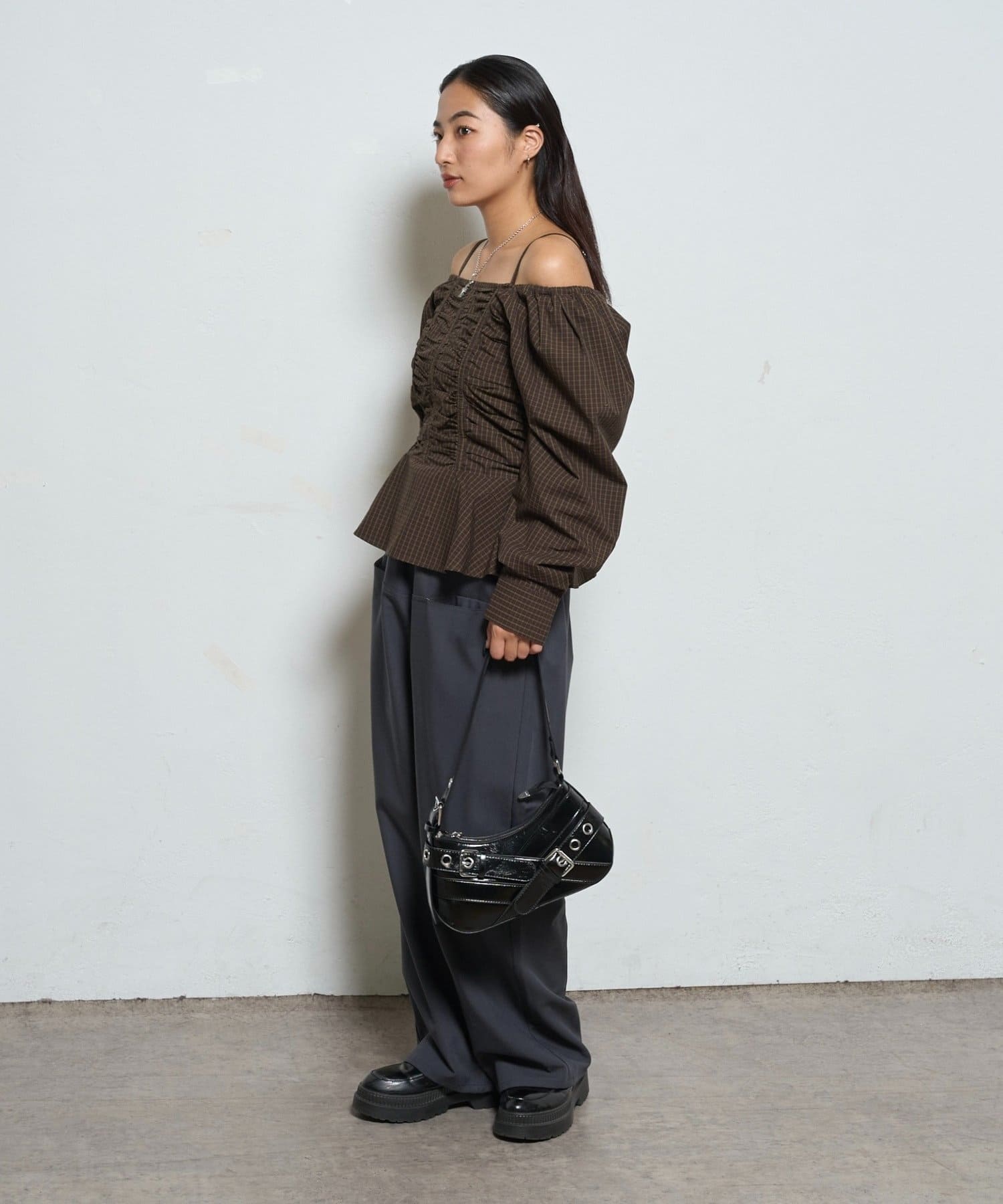 ・2WAYでトレンドのオフショルダーとしても、普通のブラウスとしても着れる、着回し力抜群のアイテム。