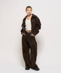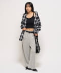 ・ボトムスはデニムやスウェットパンツを合わせて、定番のカジュアルスタイル。