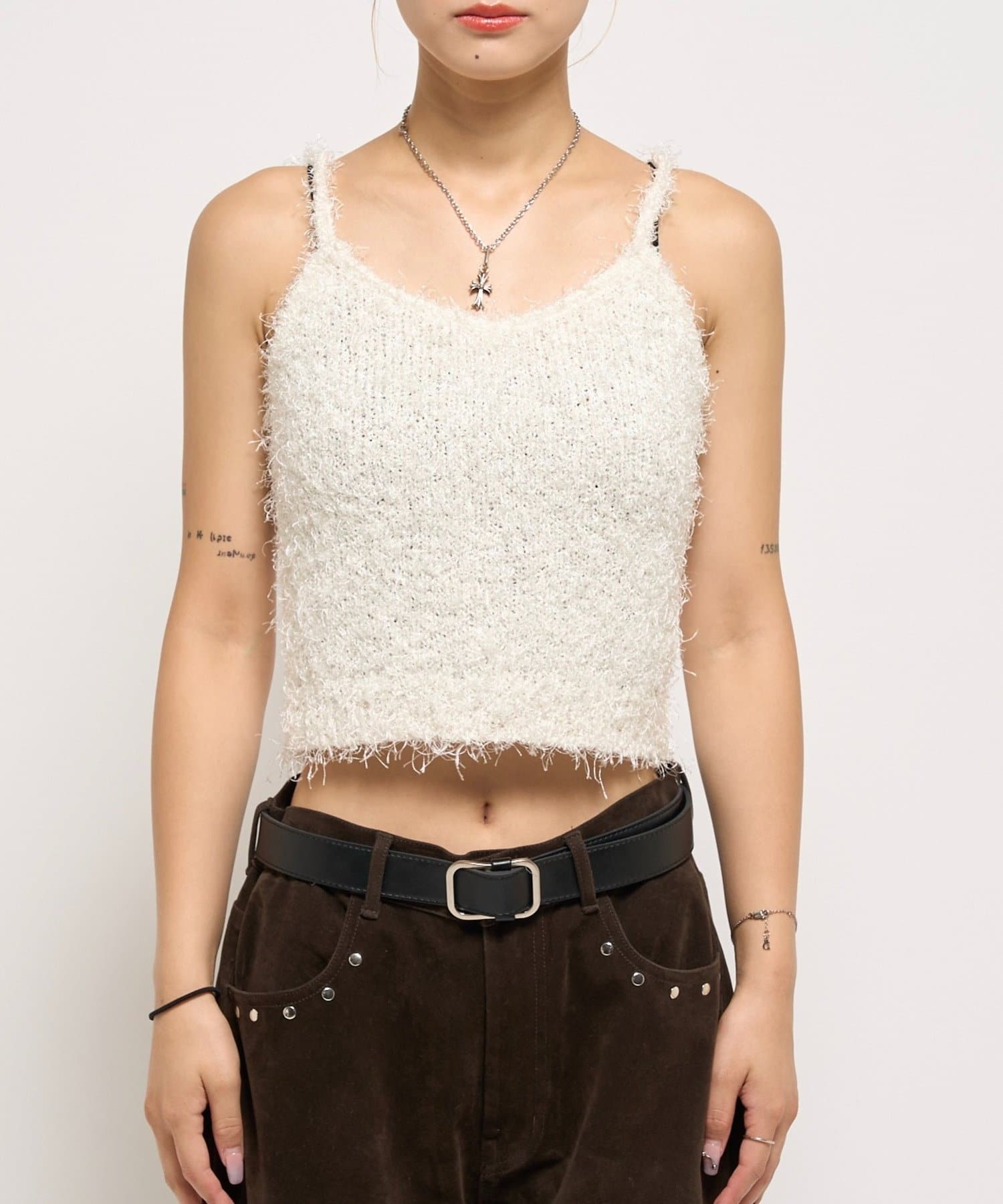 ・ふわふわのシャギーニットが可愛いキャミソール。