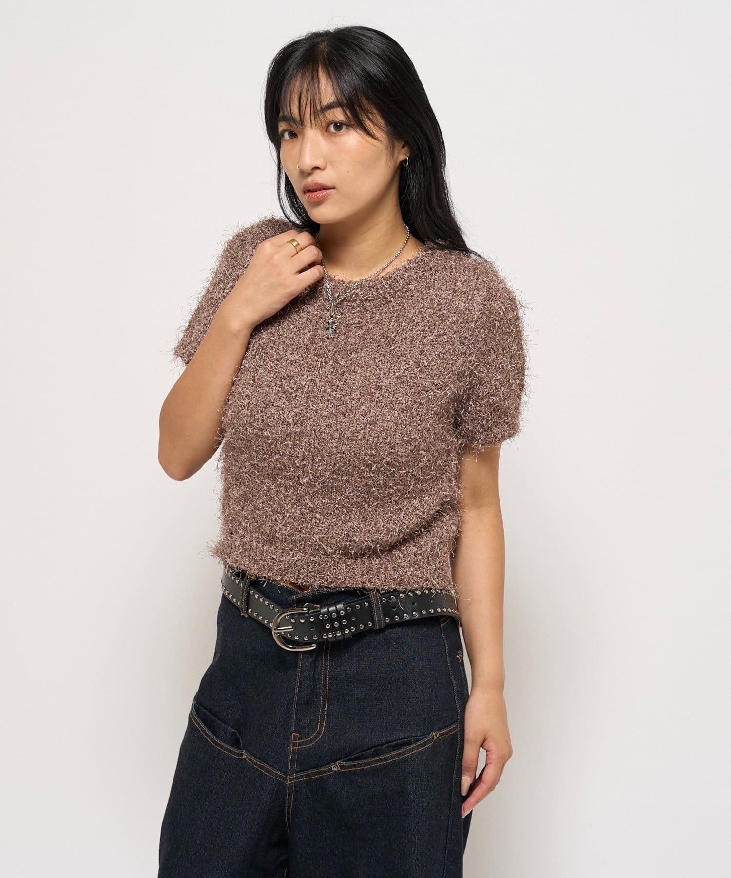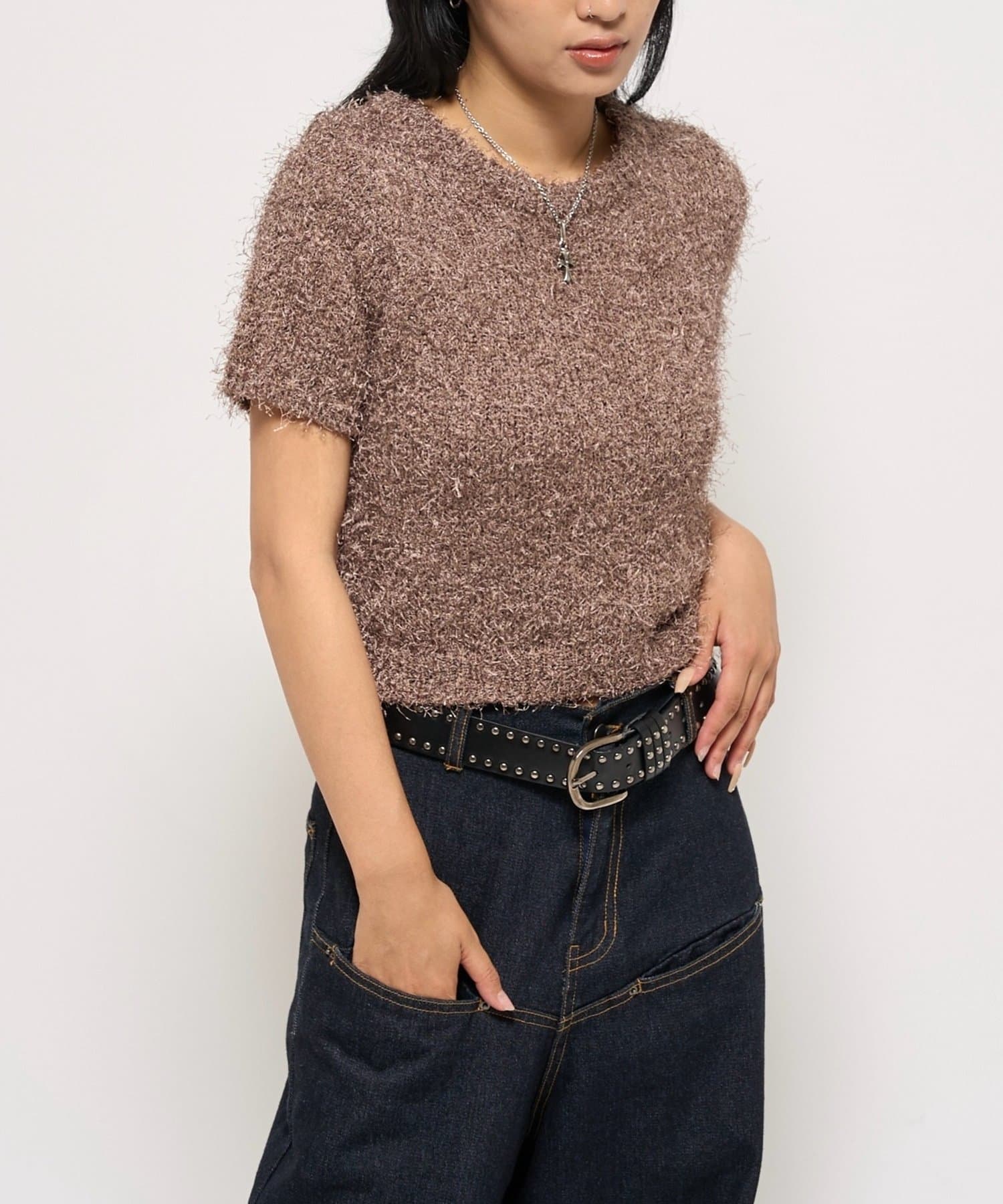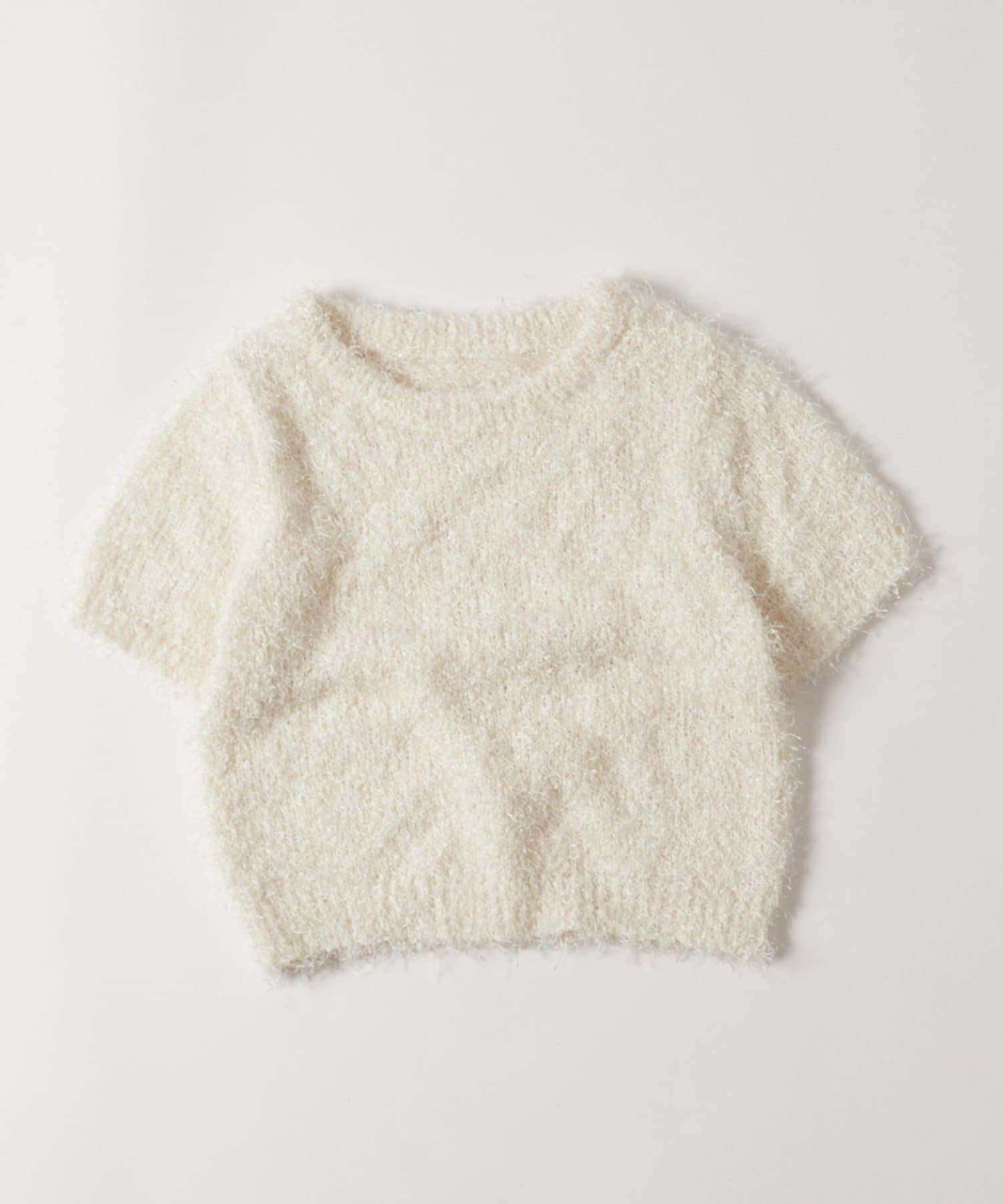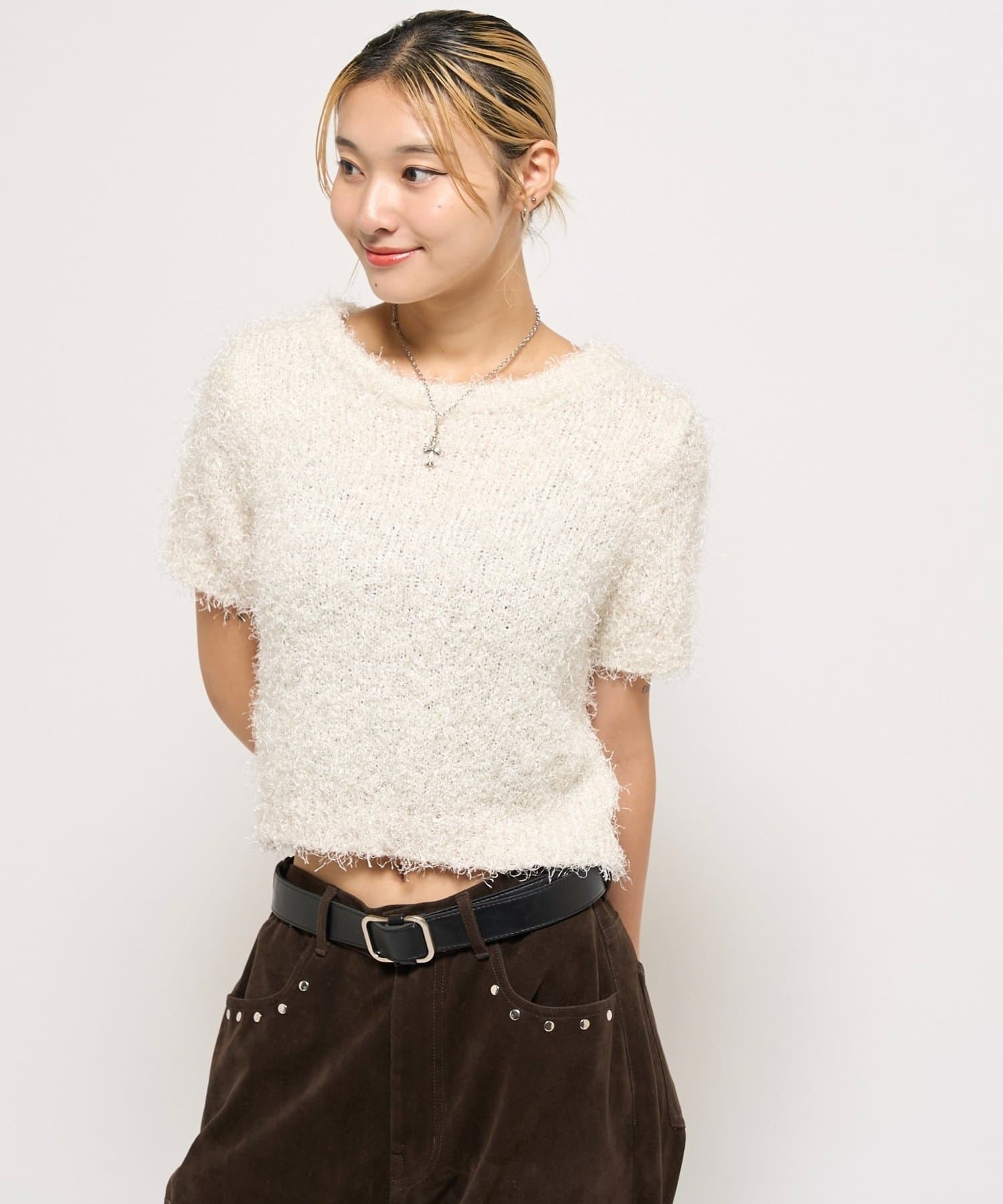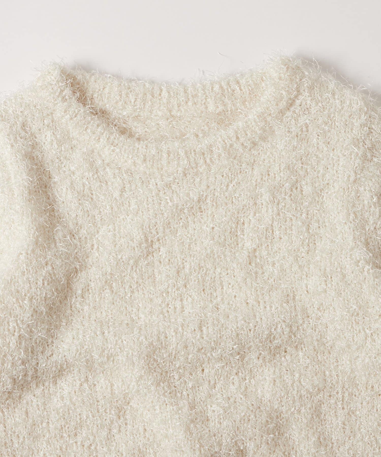 ふわふわのシャギー素材が可愛らしいニットトップス。
