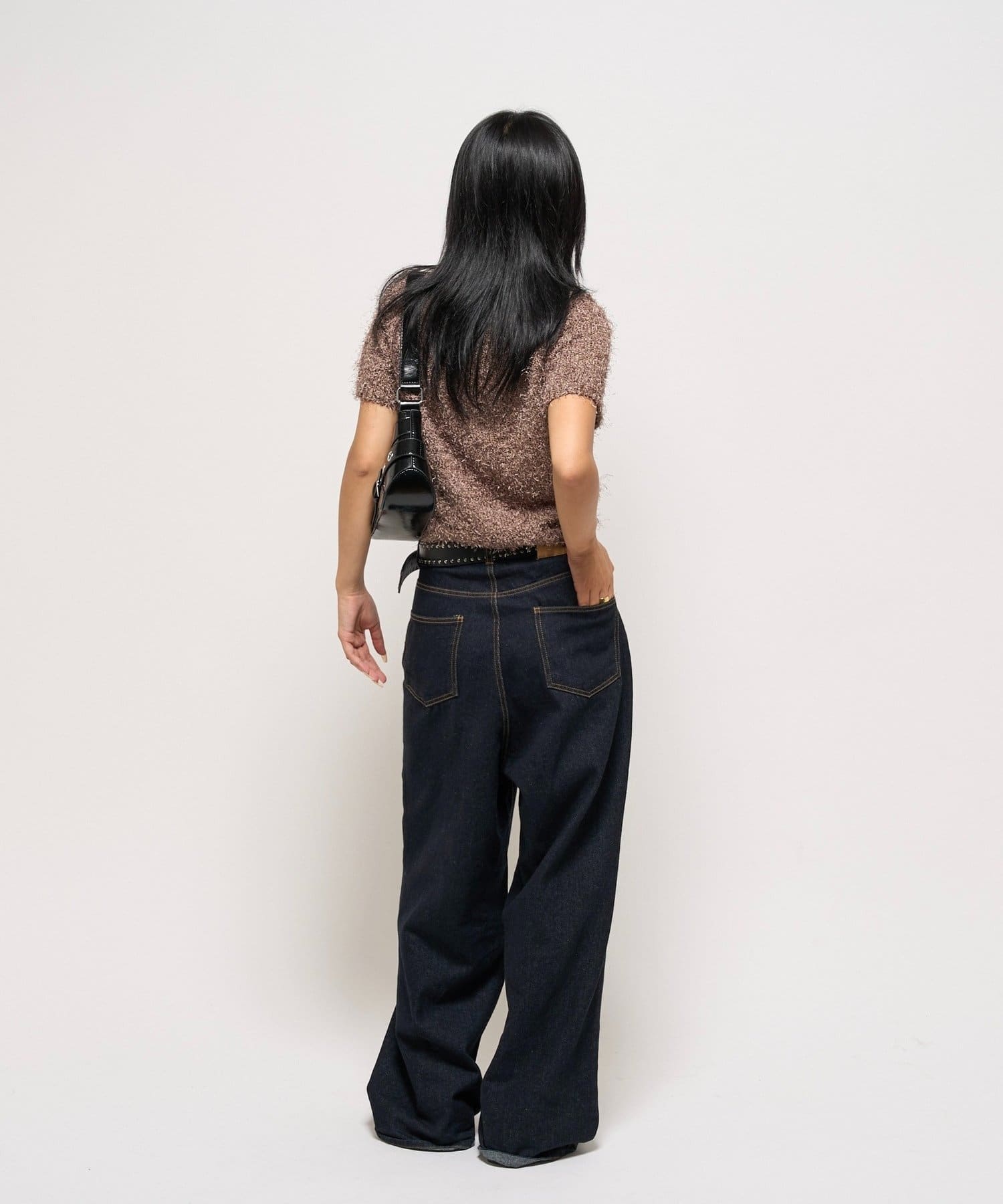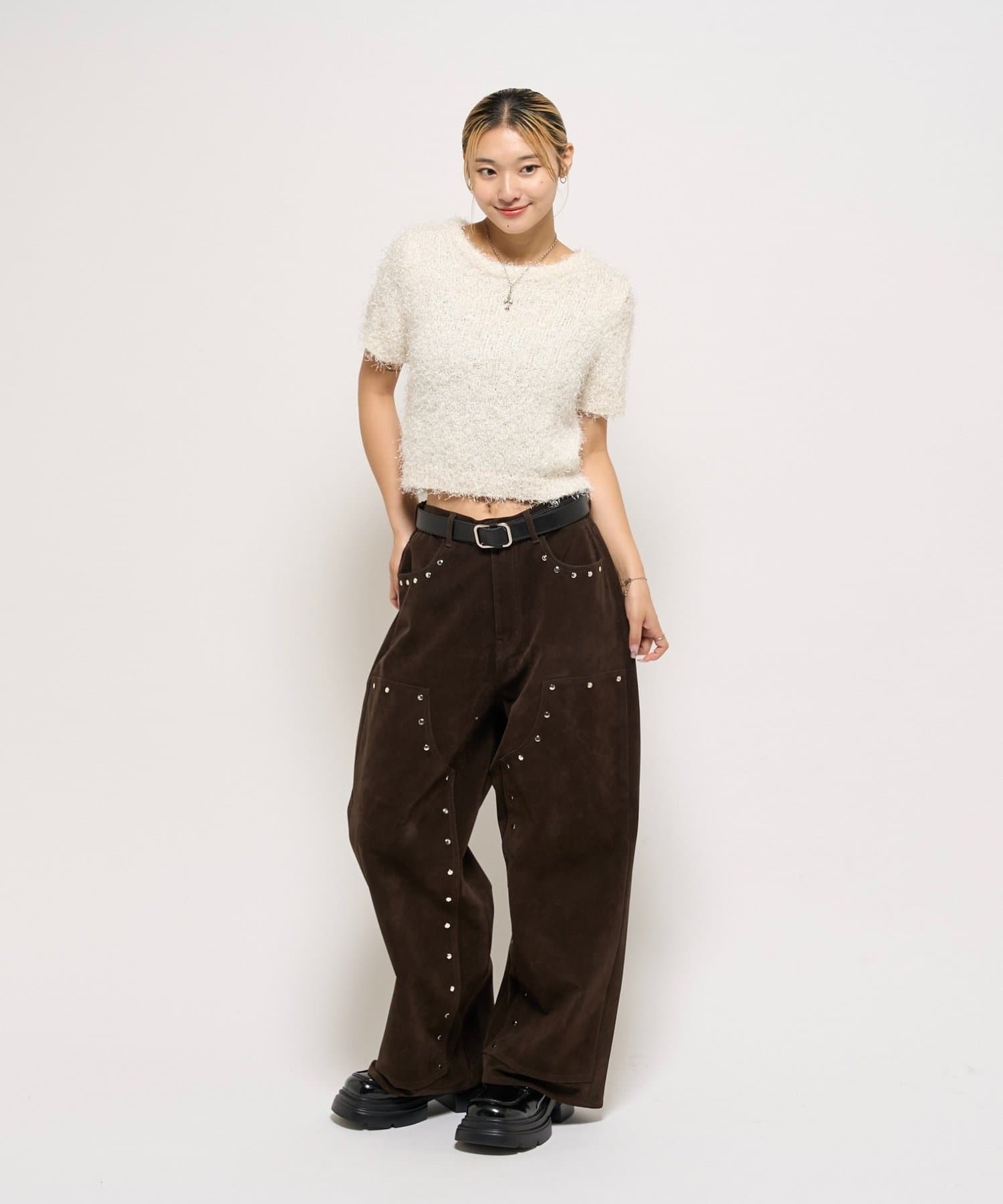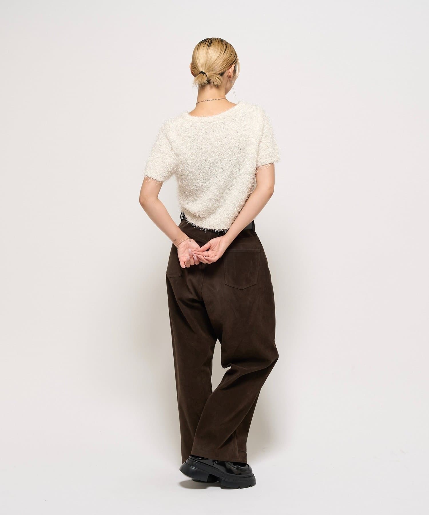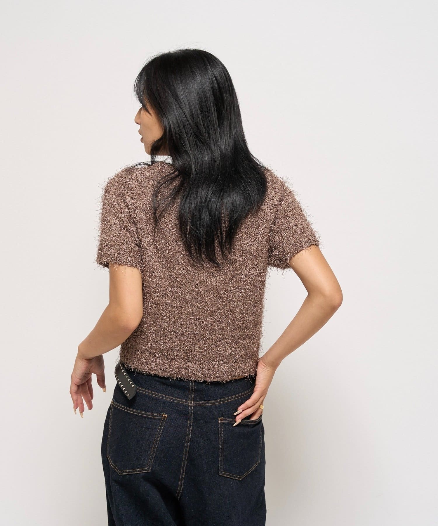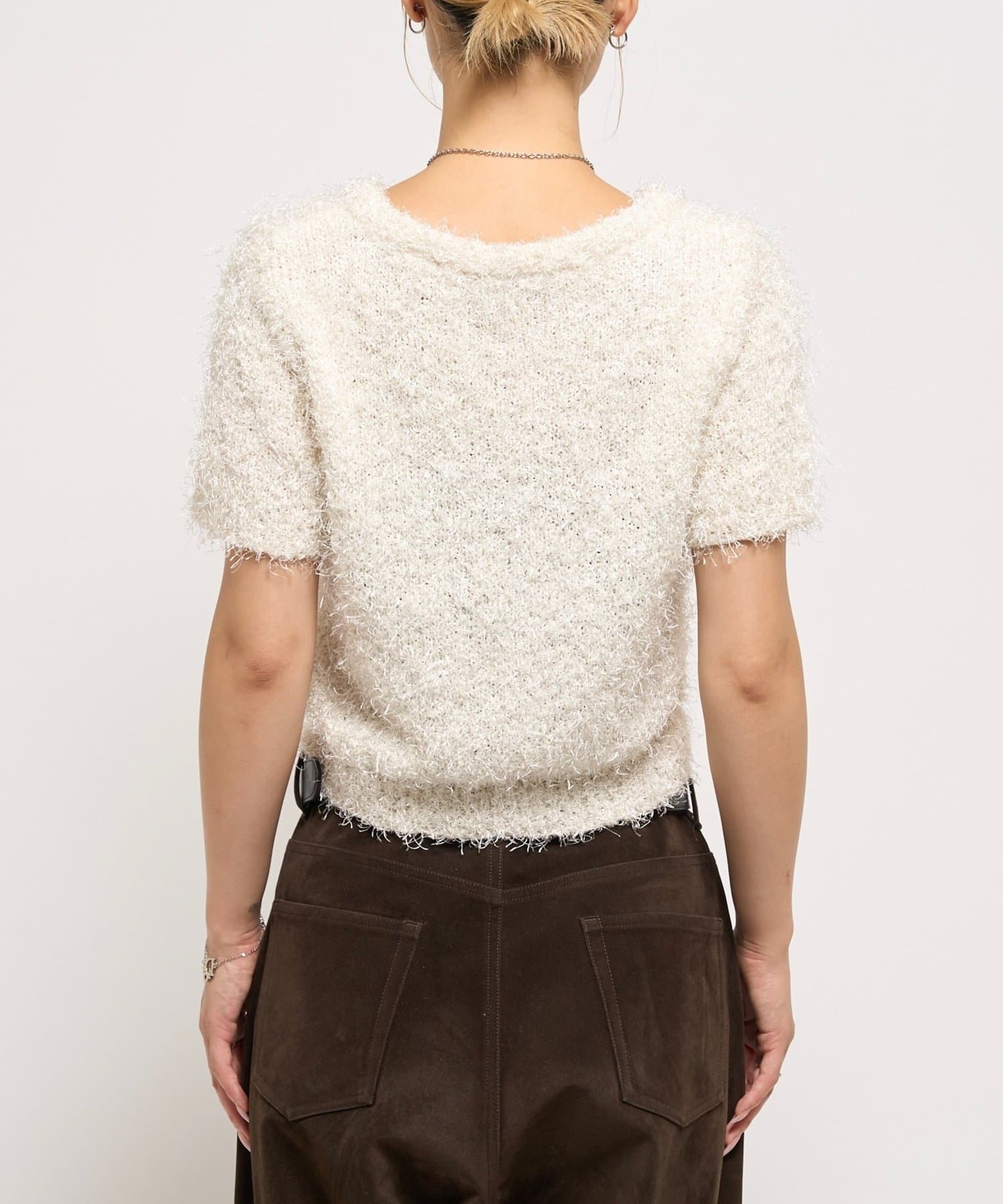 ふわふわのシャギー素材が可愛らしいニットトップス。