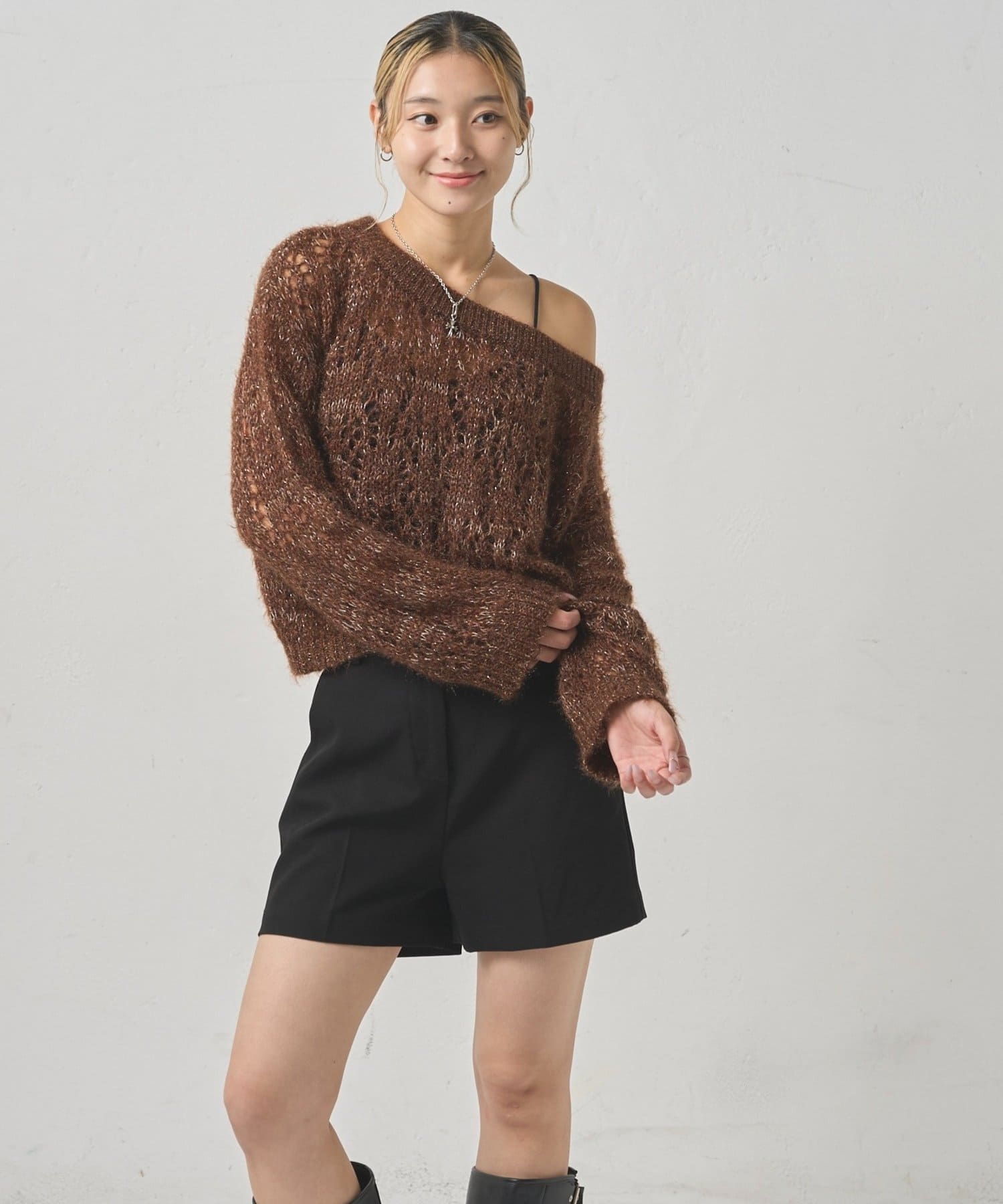 【WEB限定】きらめくラメが魅力。大人の抜け感オフショルニット