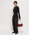 ・スラックスと合わせて上品な大人っぽいスタイルに。