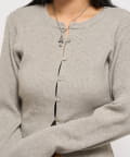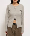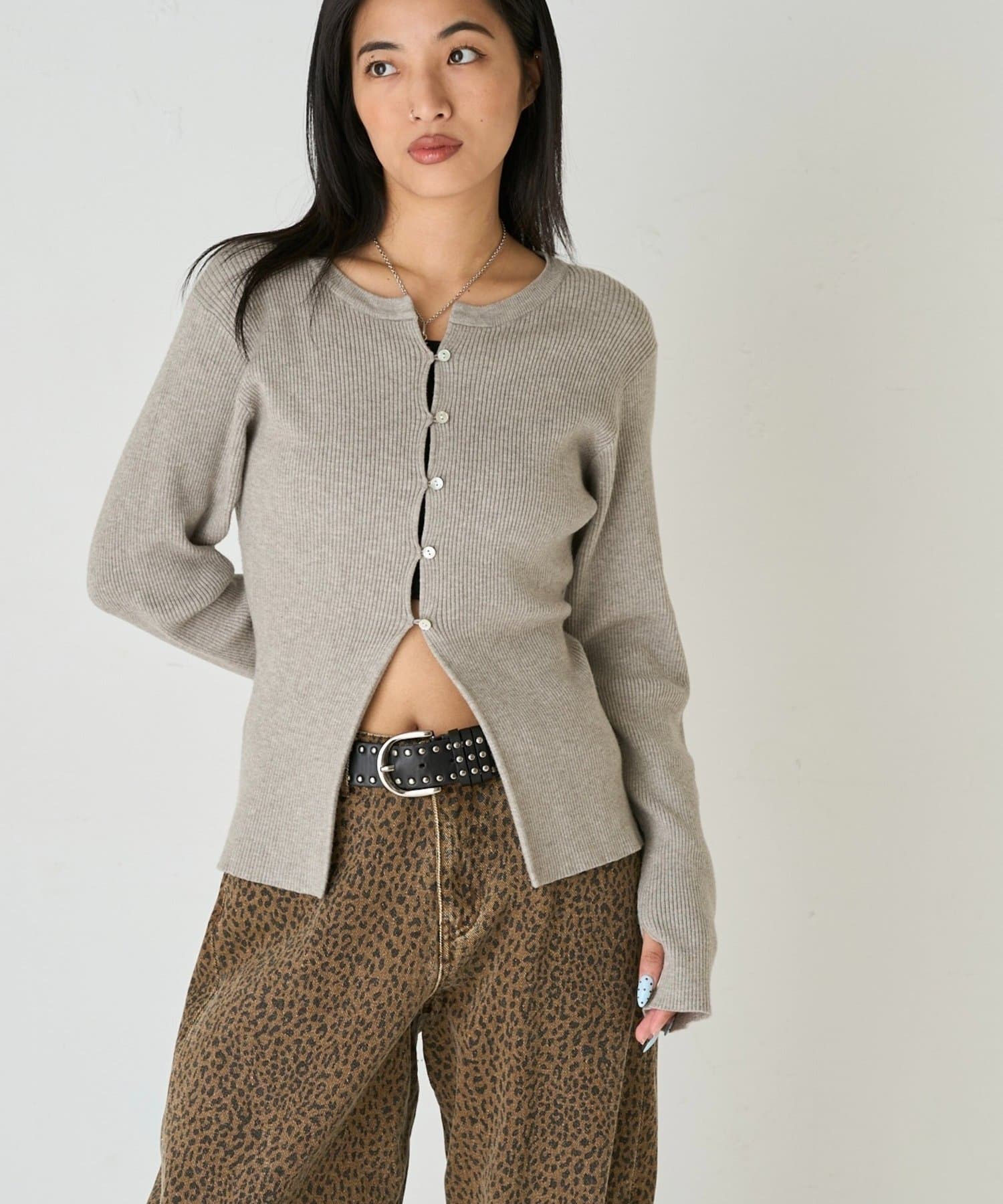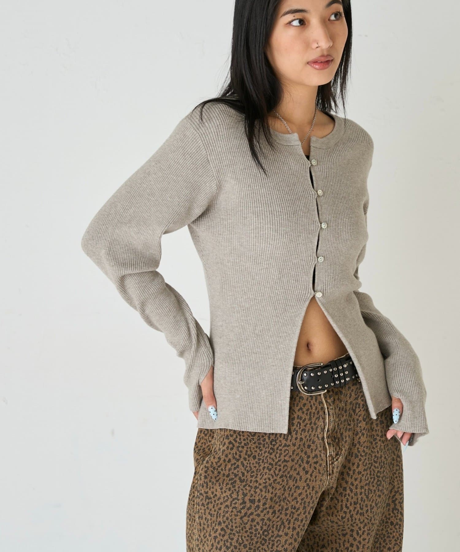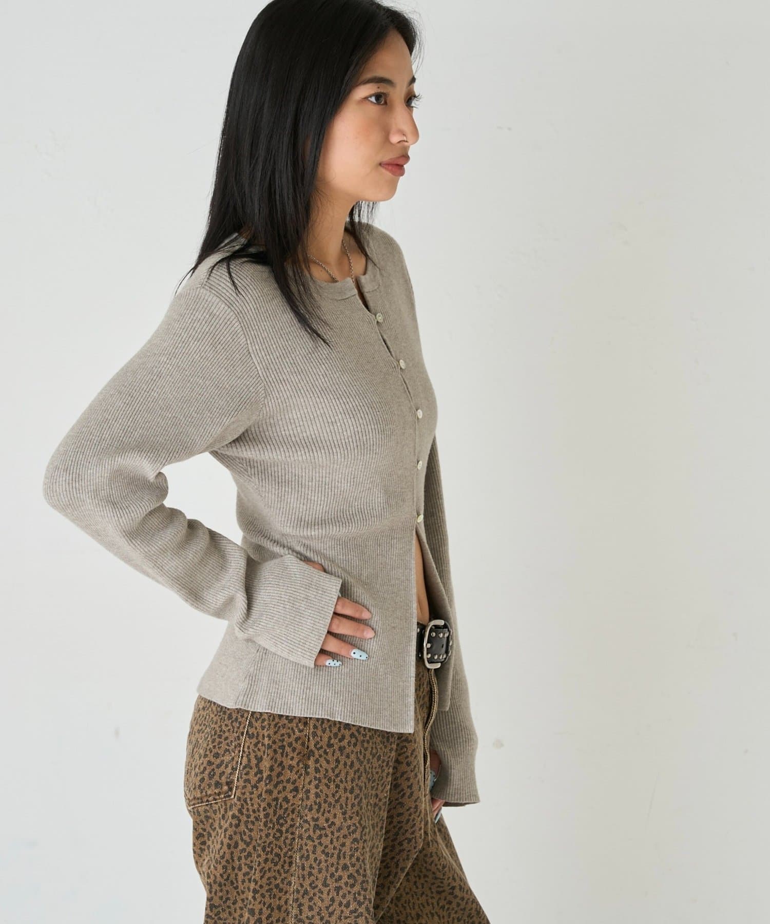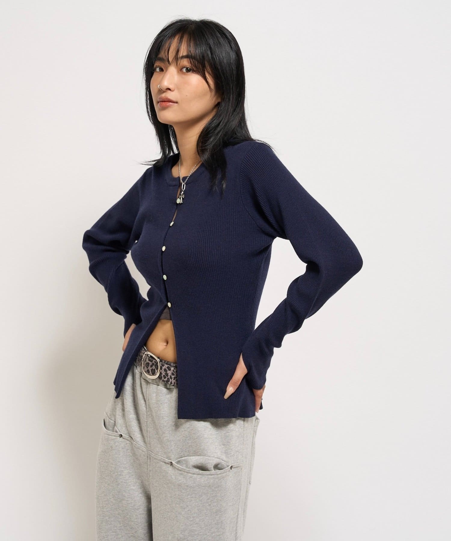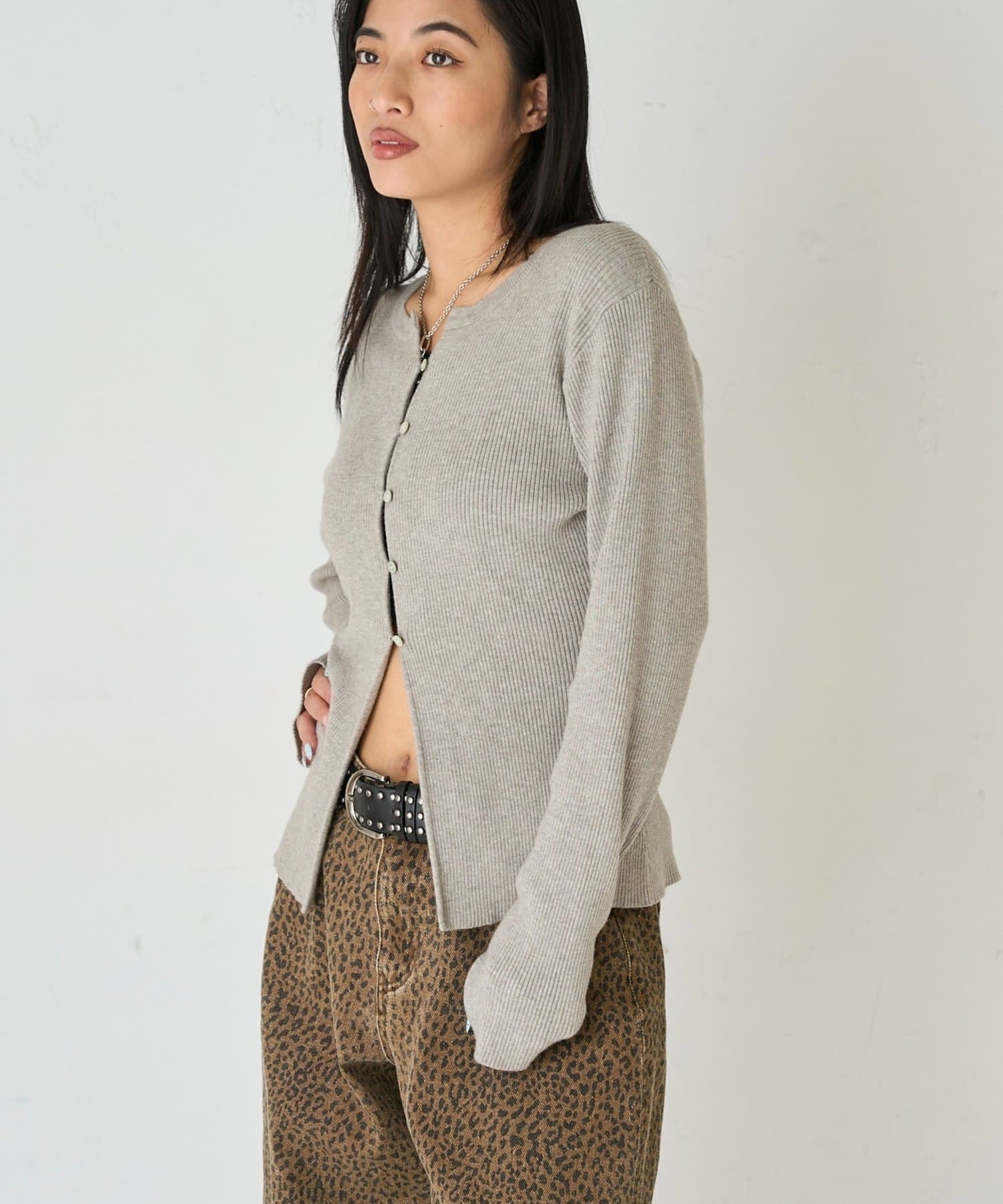 ・細めのリブ編みが上品で繊細な印象を与えてくれるリブニットカーディガン。