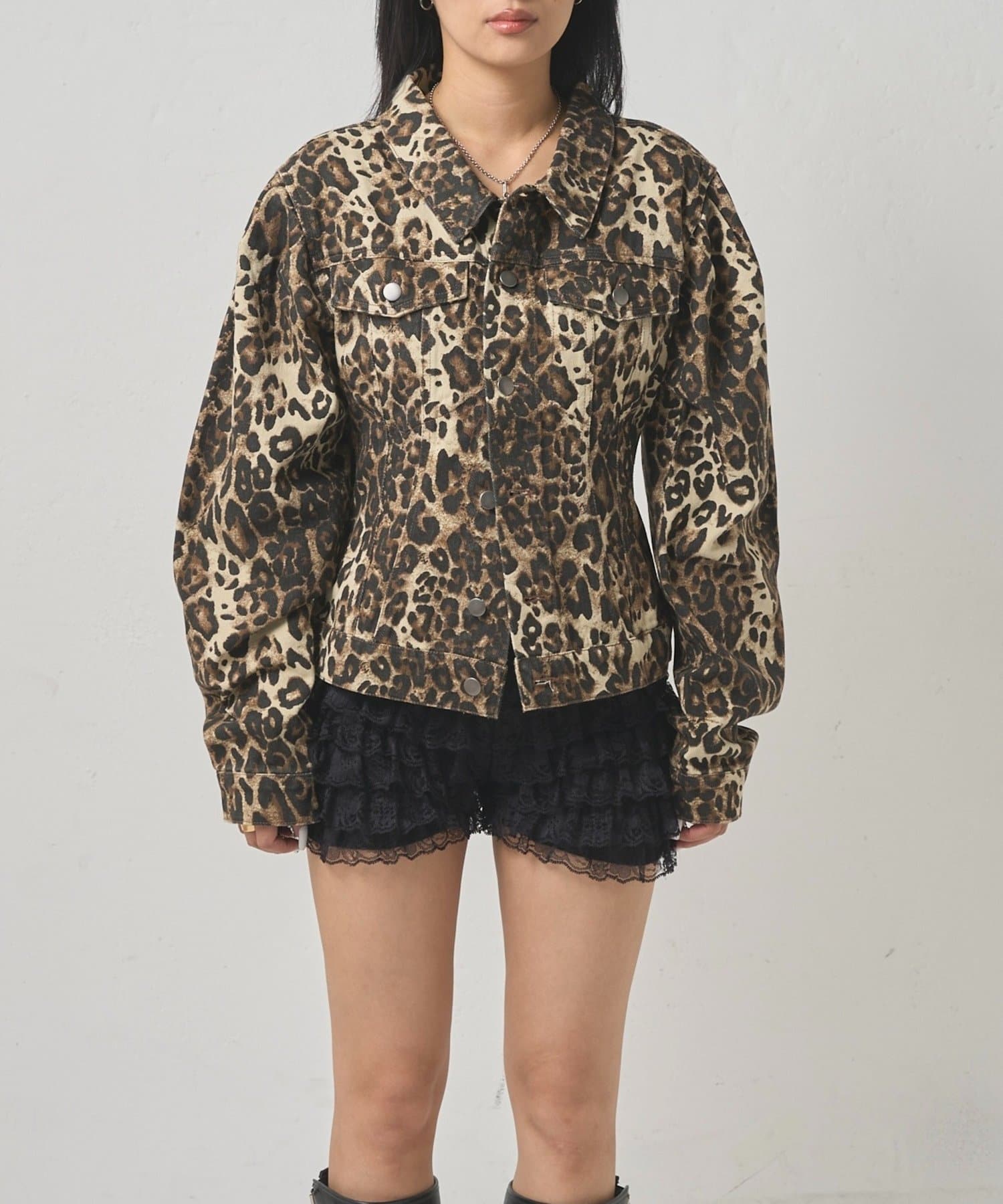 ・ミニ丈のボトムス×レオパード柄で、ギャルっぽい着こなしもおススメです。