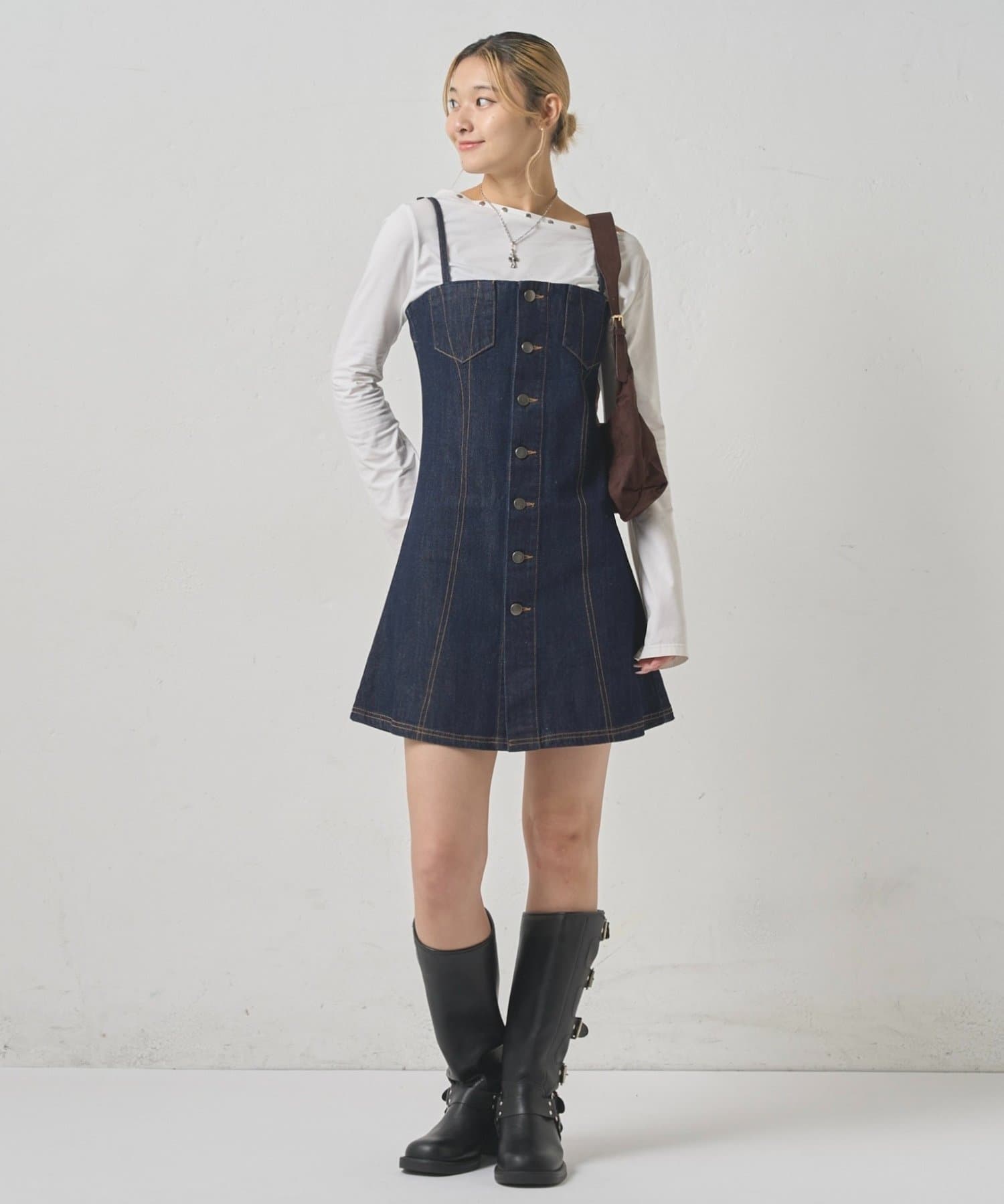 ・ トレンドのビスチェデザインで、いつものコーデにアクセントをプラス。
