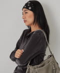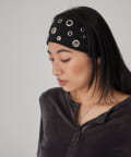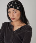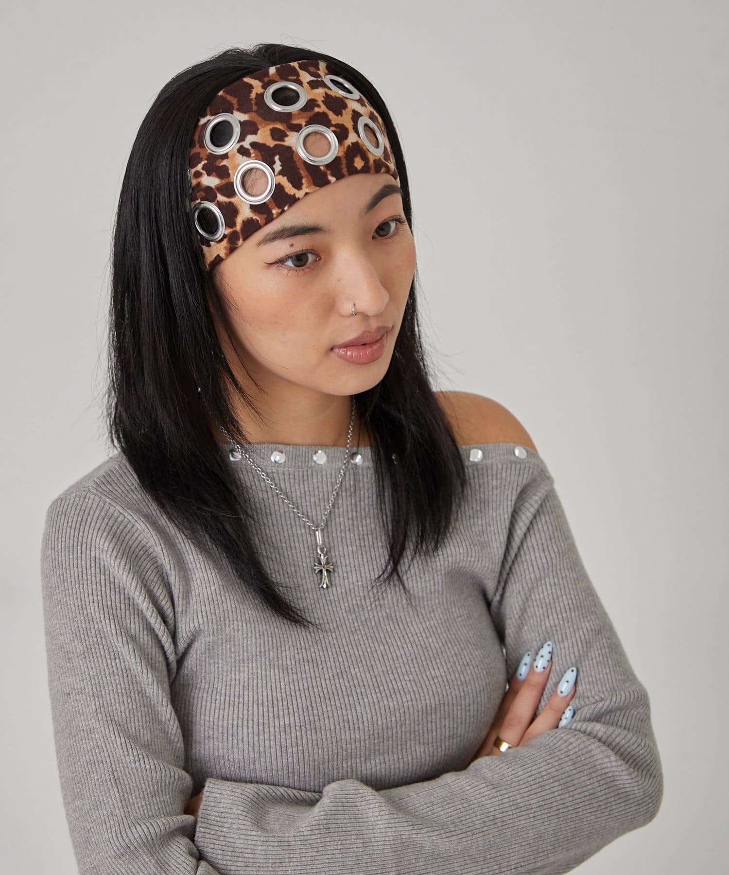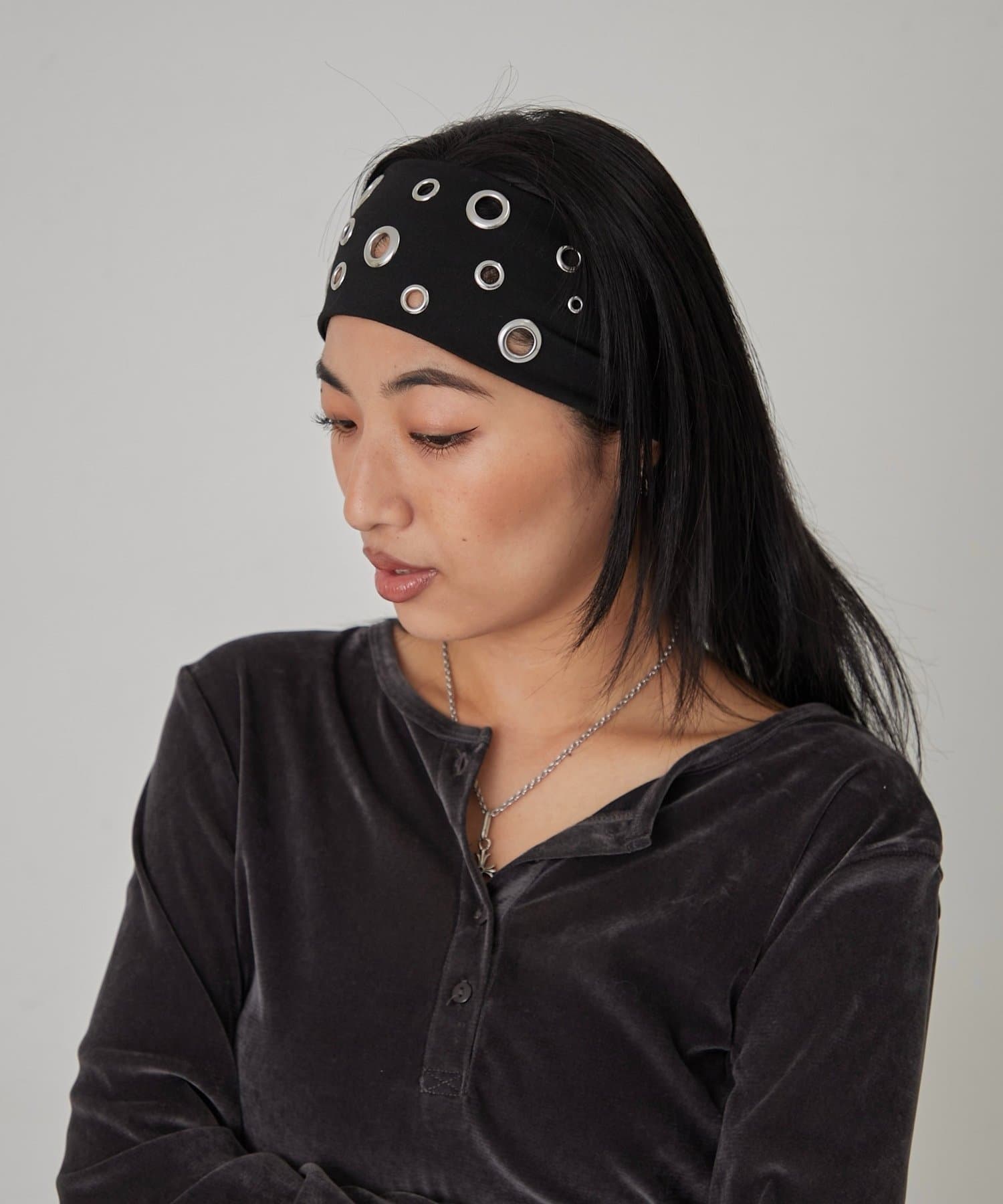 ・大小様々なハトメ(アイレット)が散りばめられた、クールなヘアバンド。