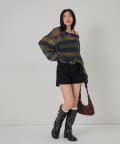 160cm/骨格ナチュラルTOPS:ワイドボーダーメッシュニット