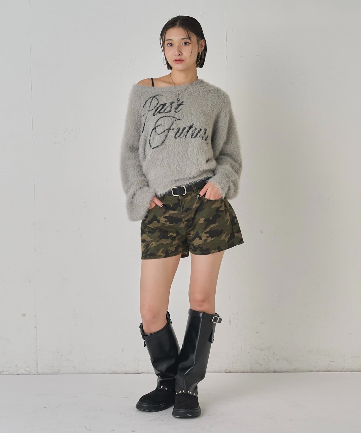 • 165cm/骨格ウェーブBT:スクエアベルトTP:シャギーロゴオフショルニット