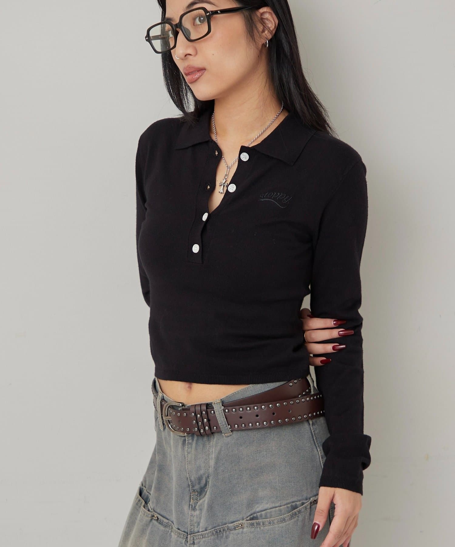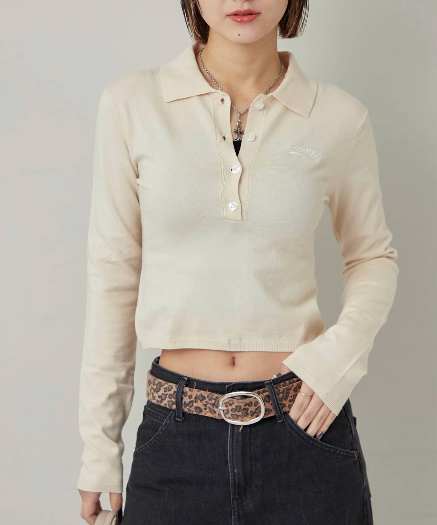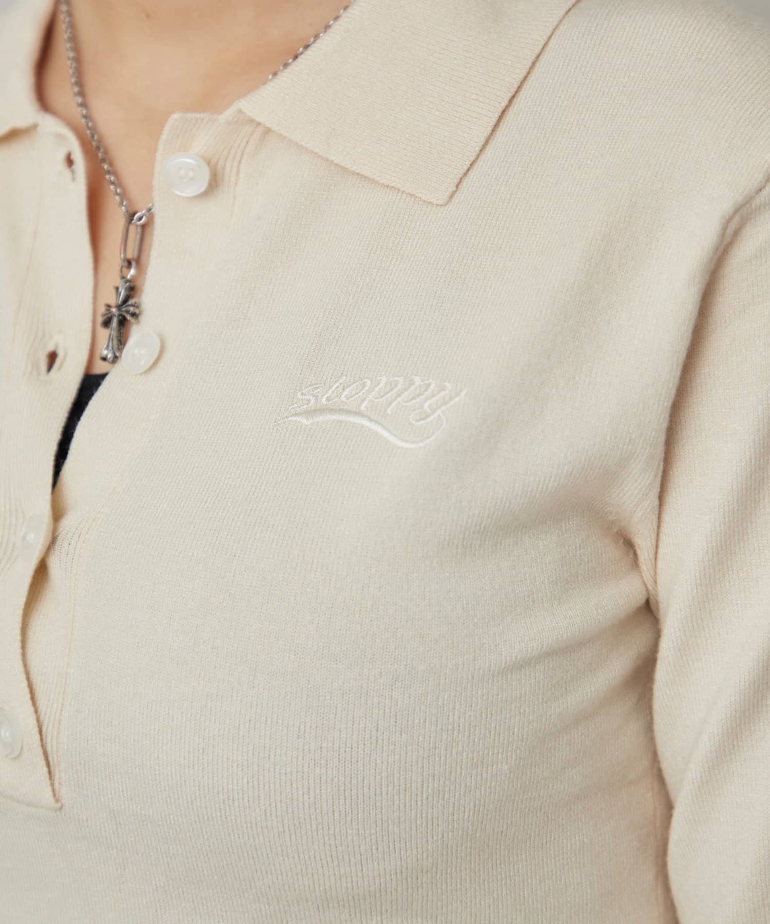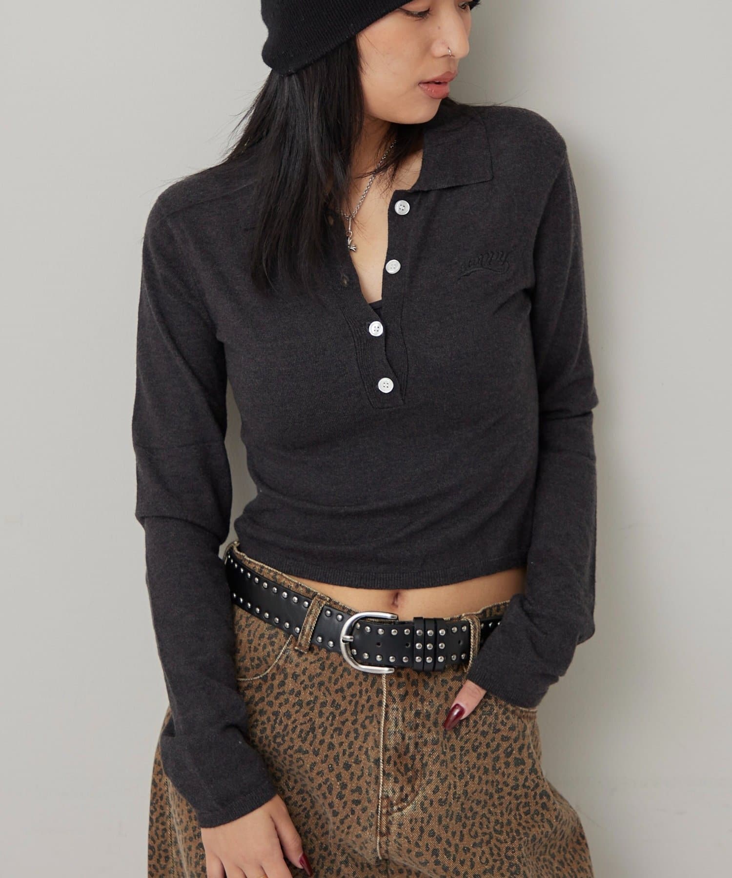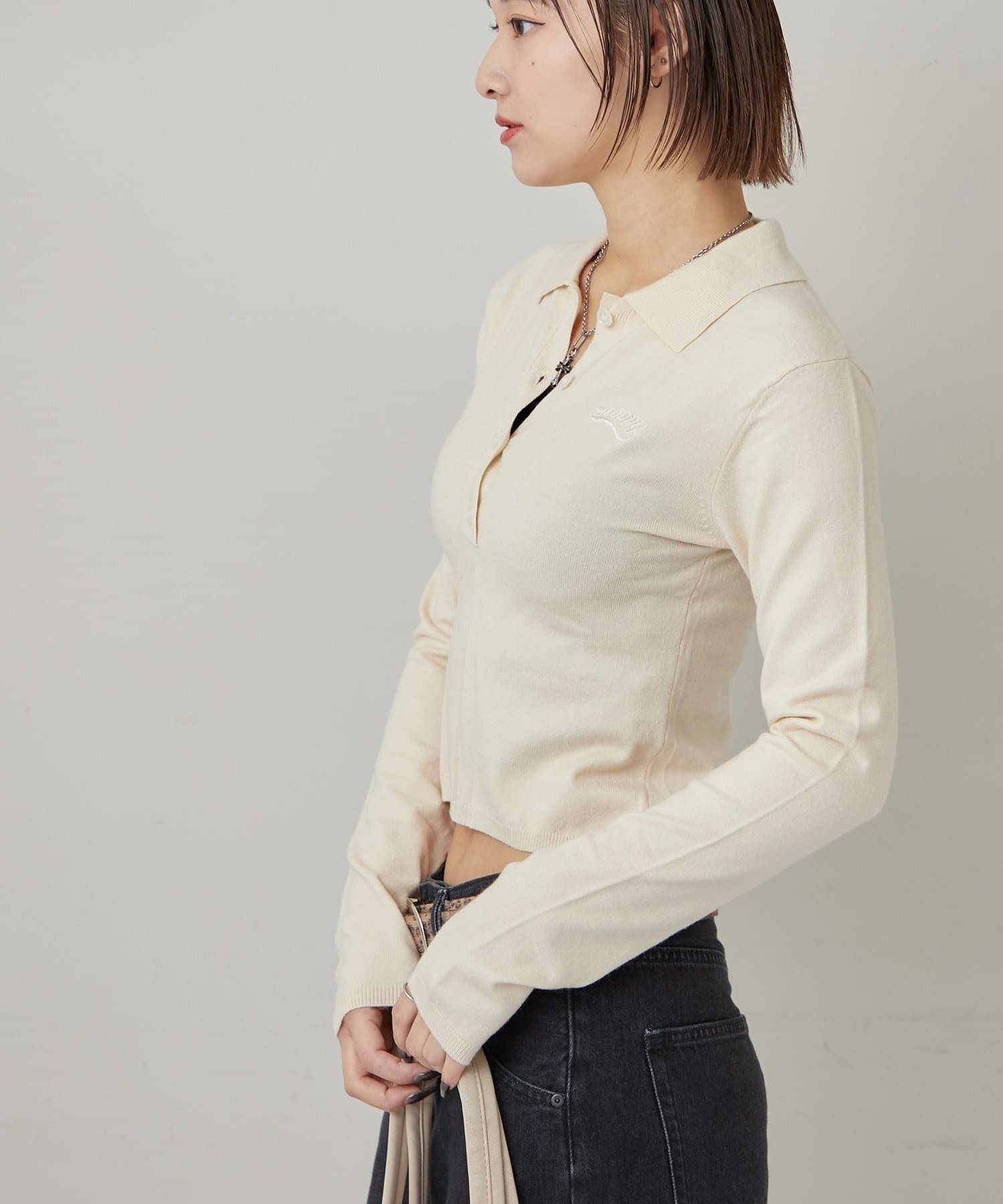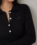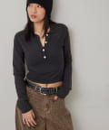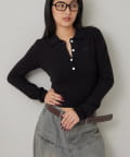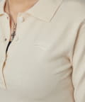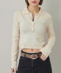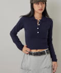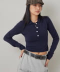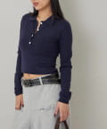 ・トレンドのコンパクトなシルエットで、スタイルアップ効果も期待できる長袖ニットポロ。