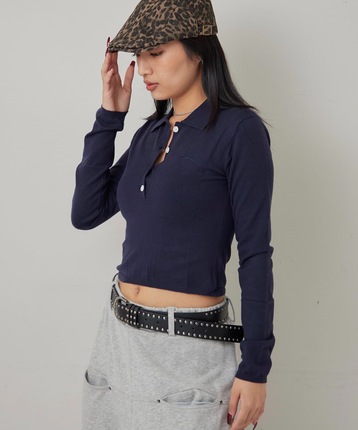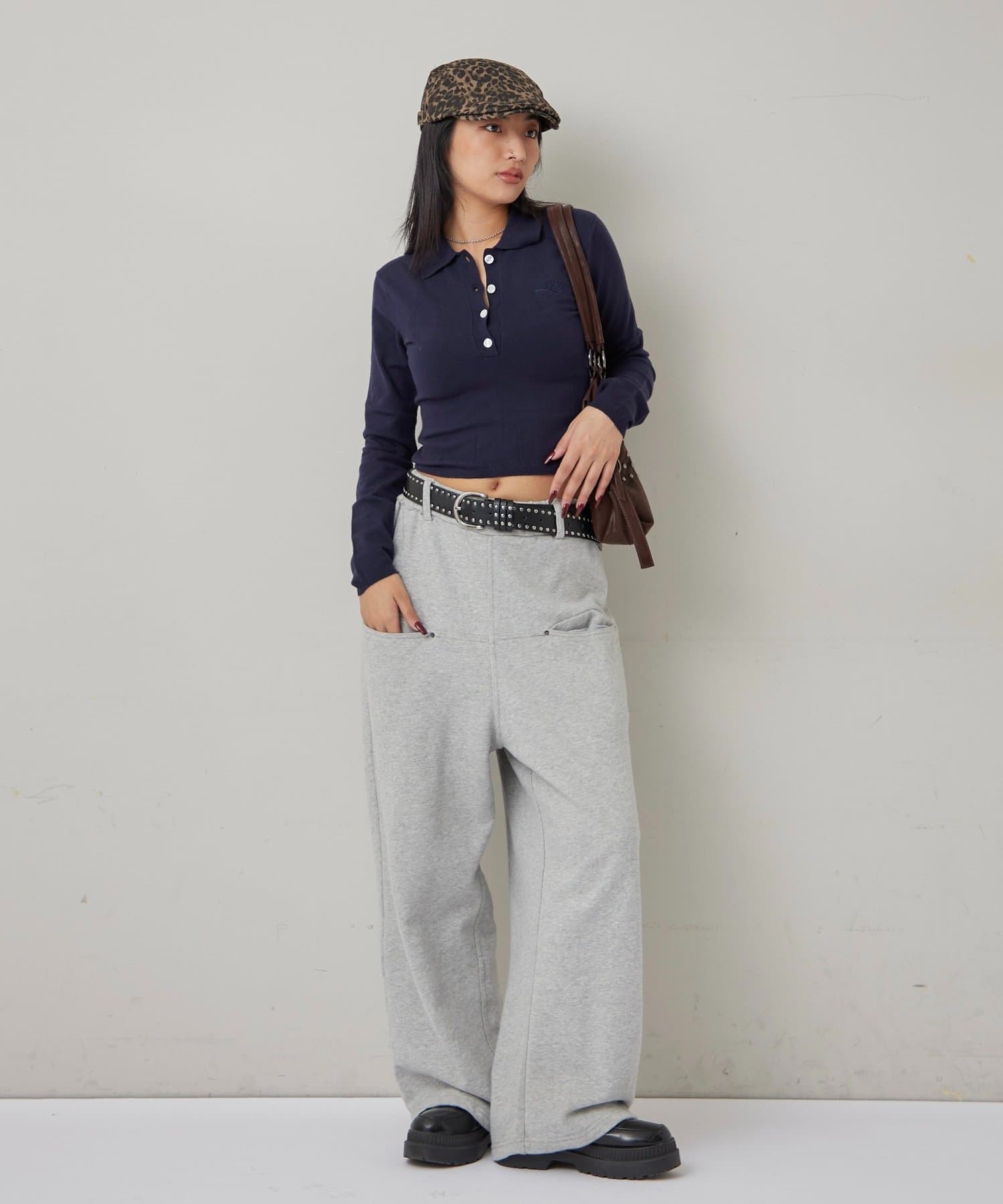 • 160cm/骨格ナチュラルBT:スタッズベルトPT:スラッシュポケットイージースウェットパンツ