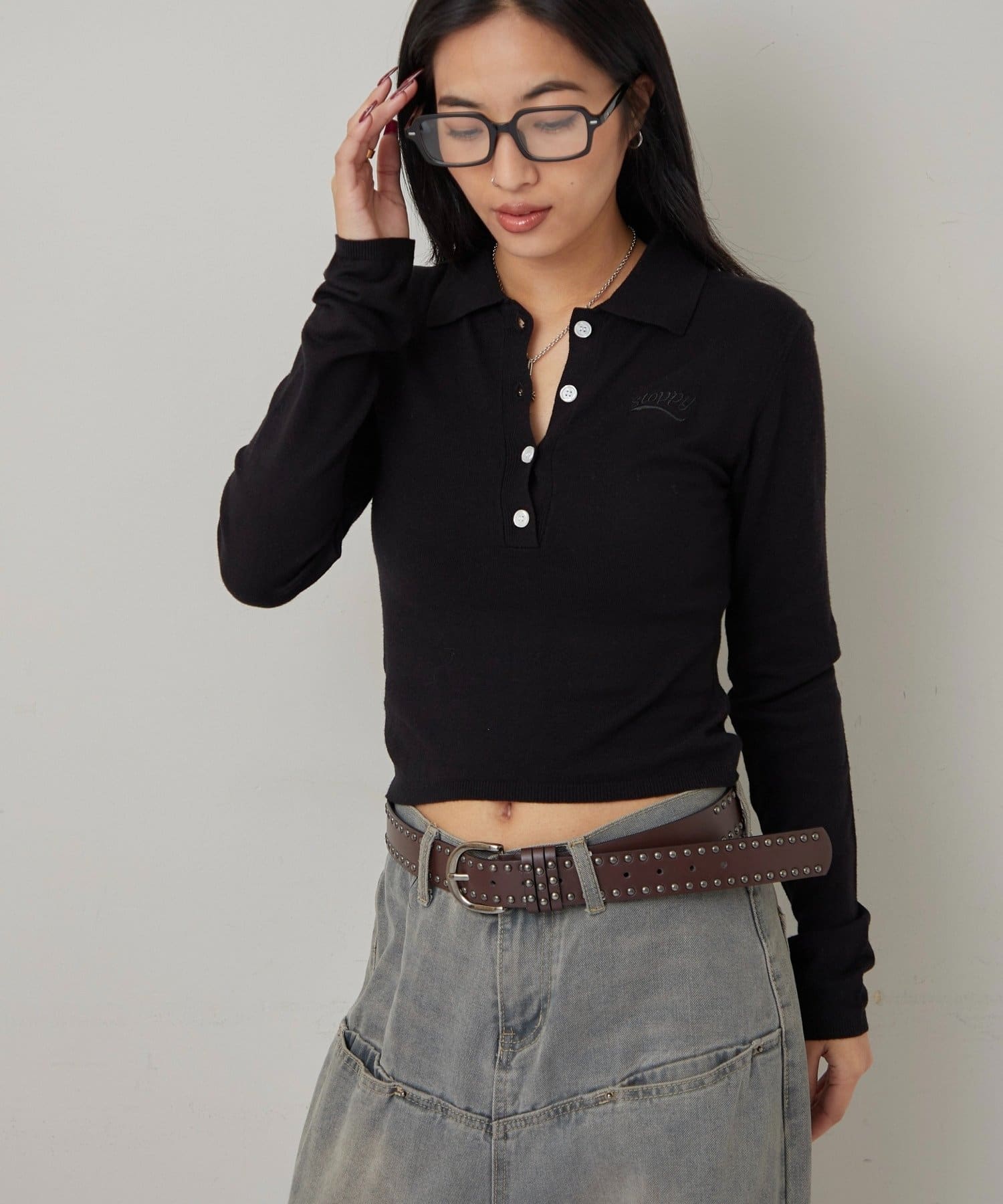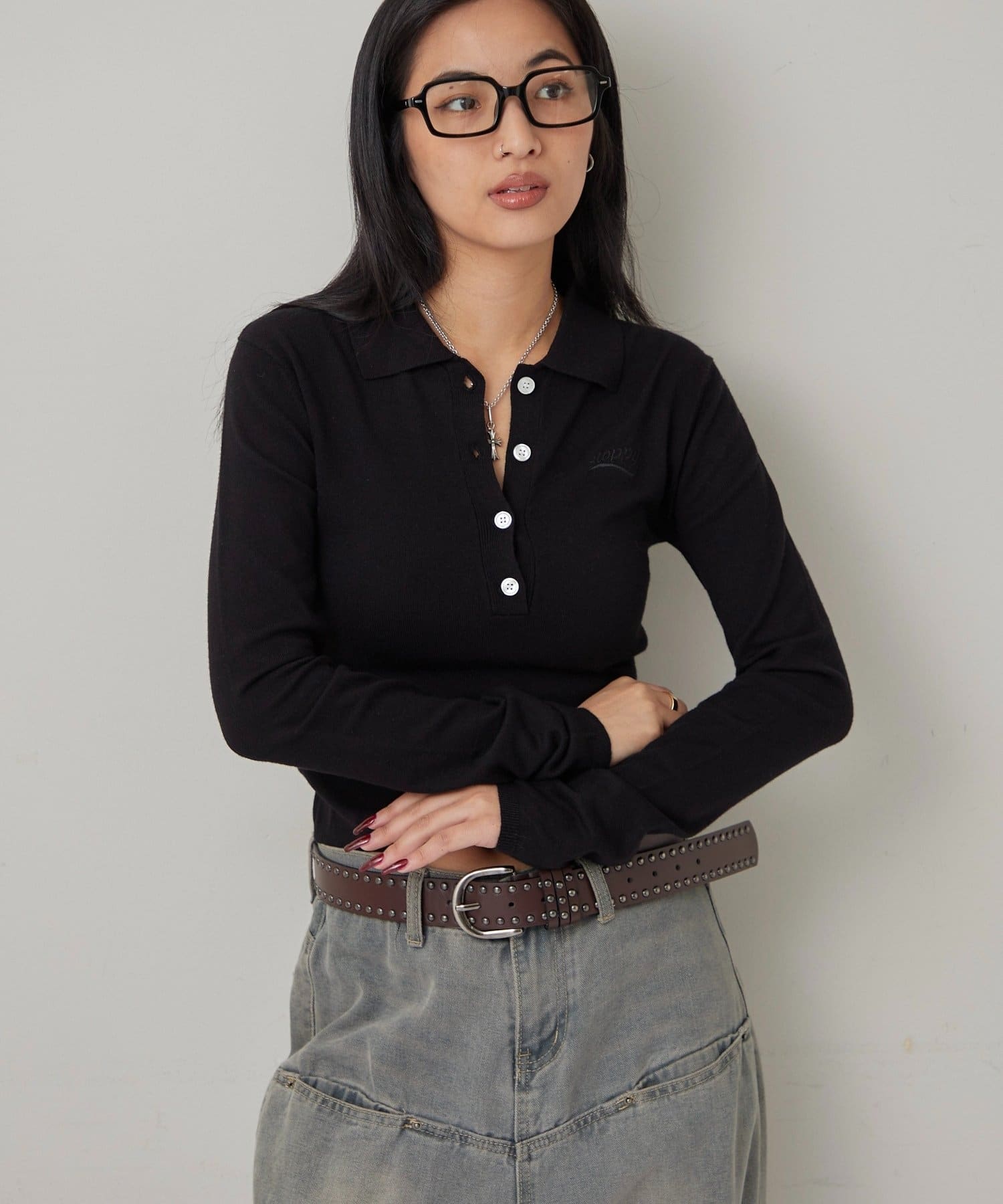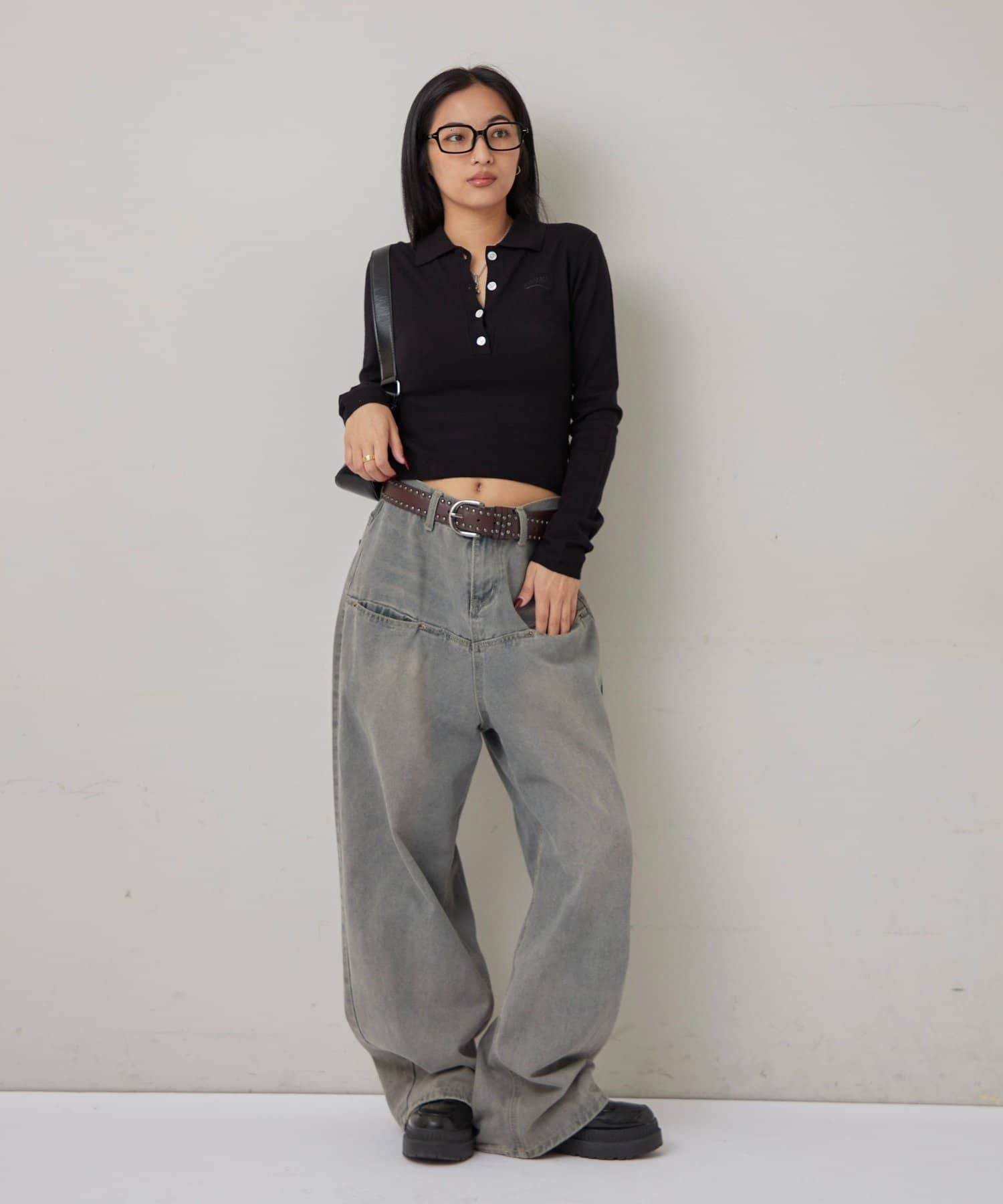 • 160cm/骨格ナチュラルBT:スタッズベルトPT:アソート柄ローライズデニム