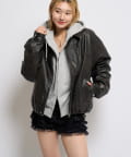 ボアを外してシンプルなレザーブルゾンとしても着用可能◎