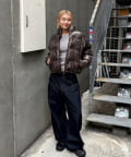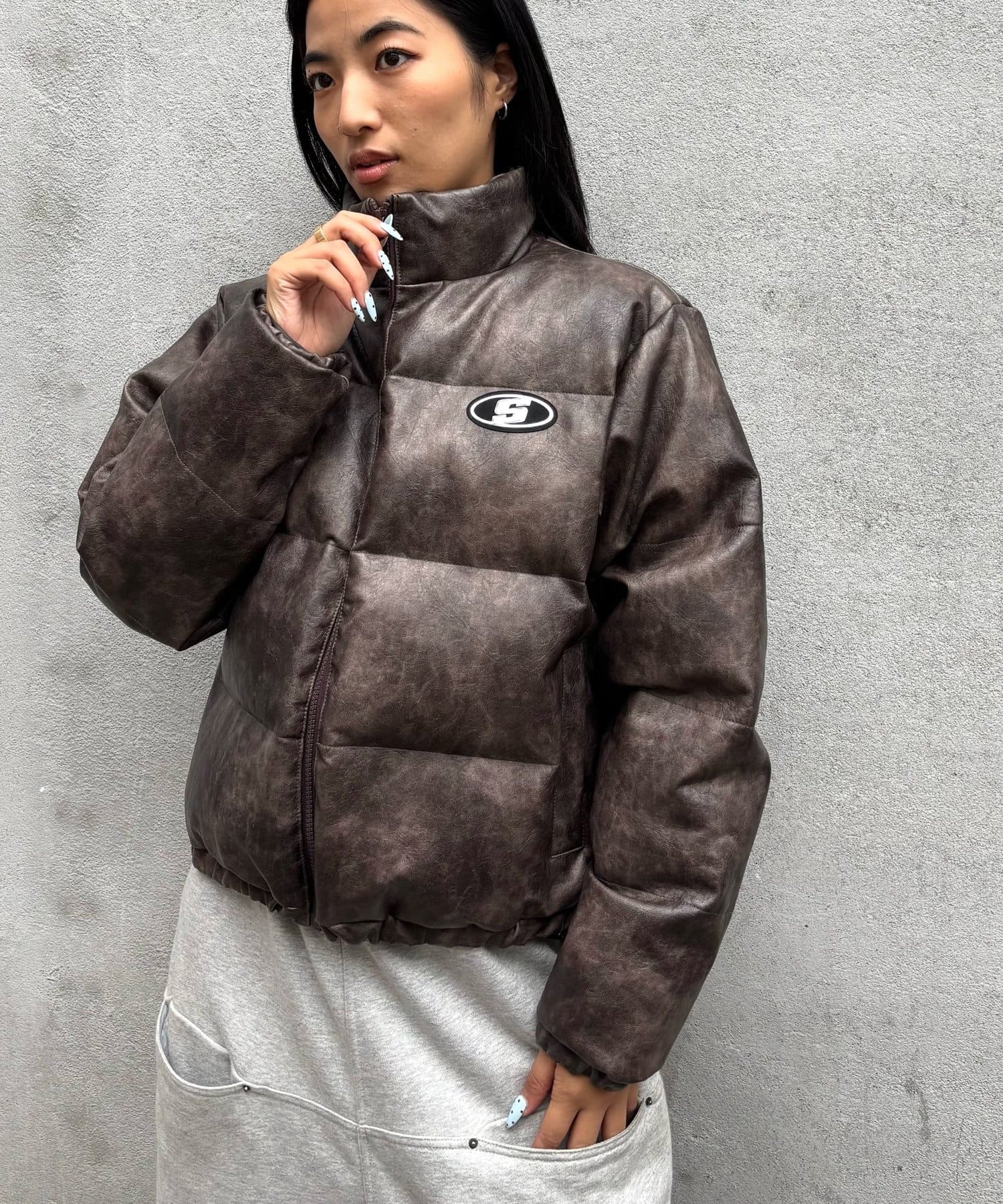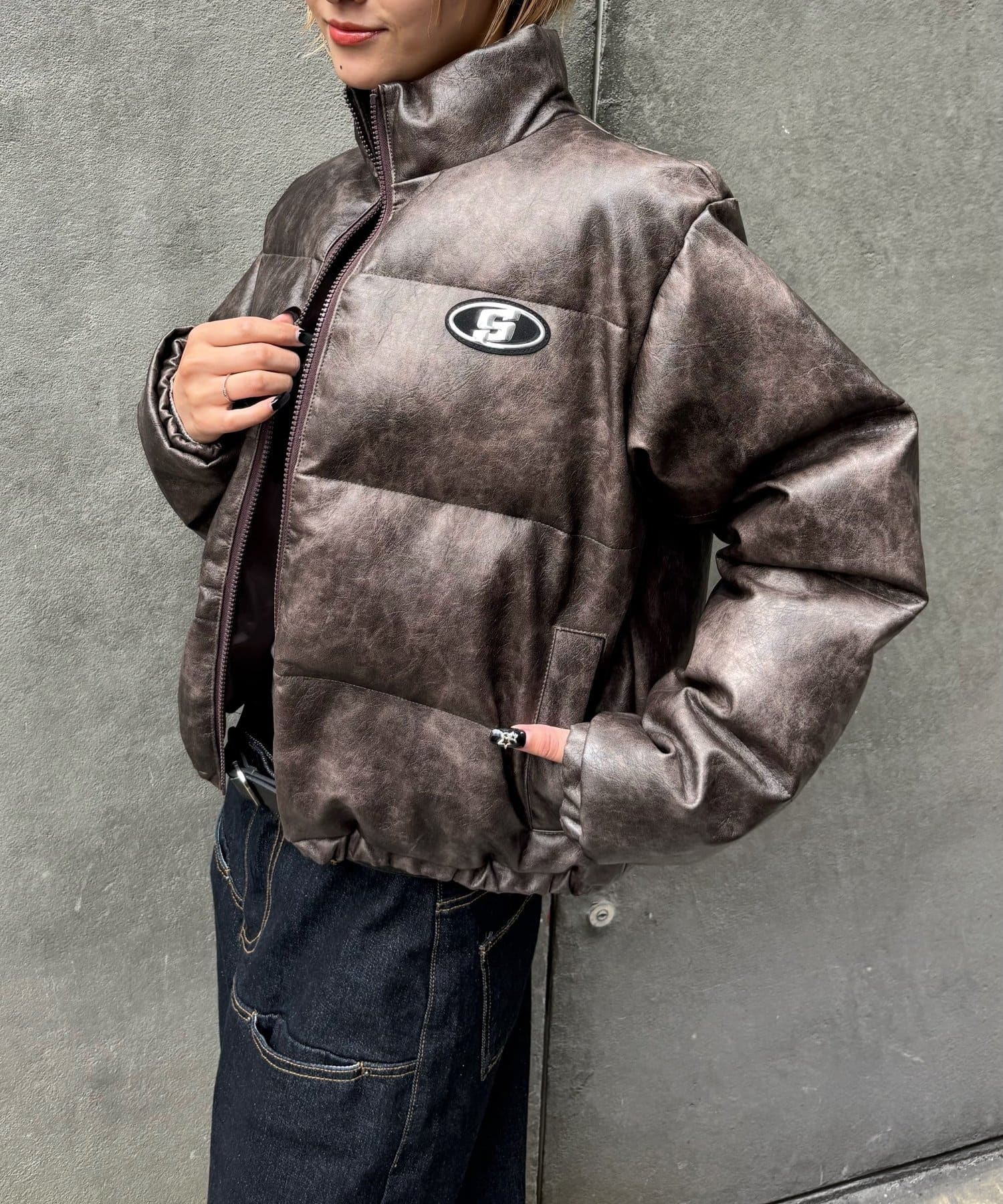 【UNISEX/サイズ展開あり】Sロゴヴィンテージライク中綿レザーブルゾン
