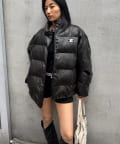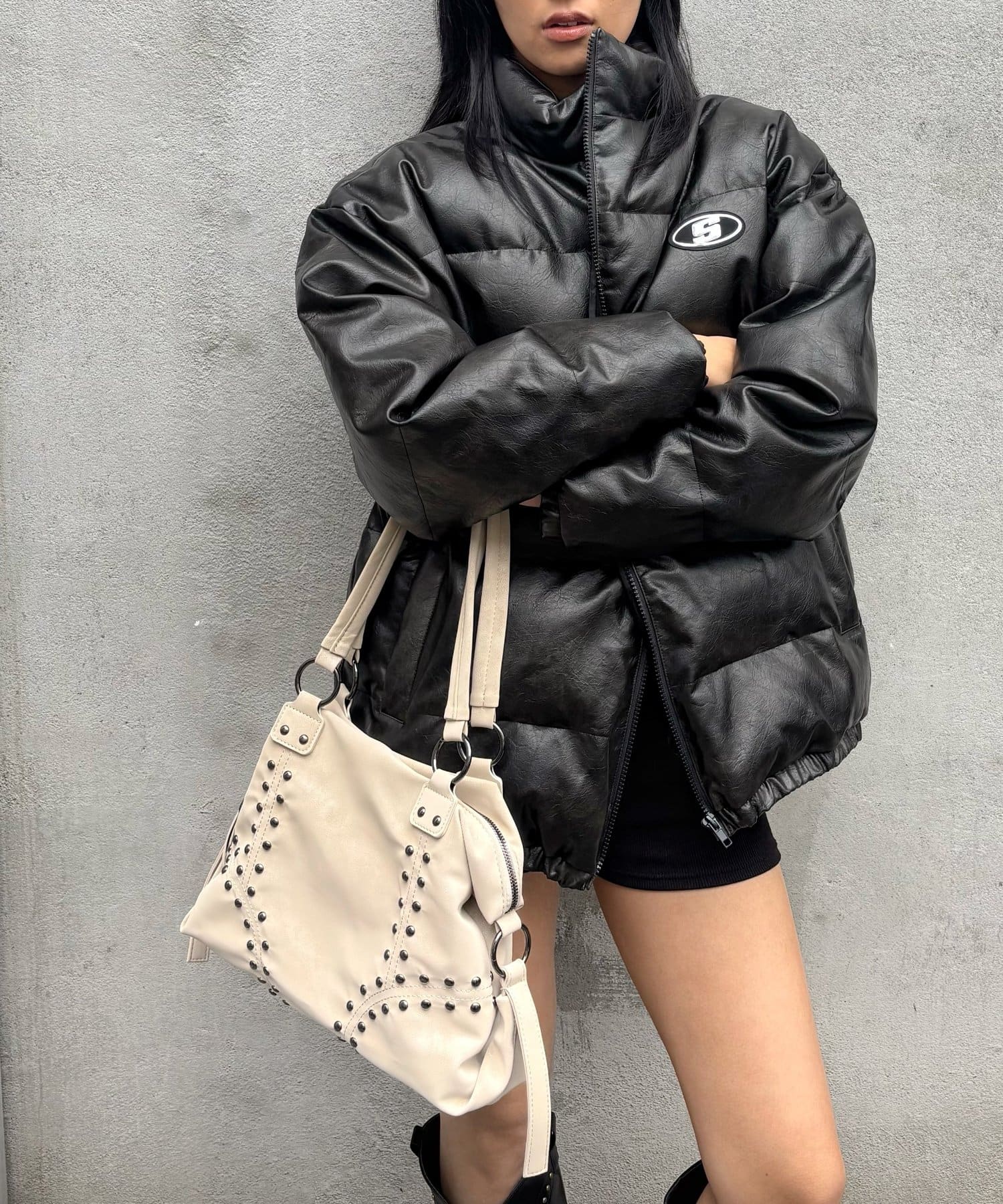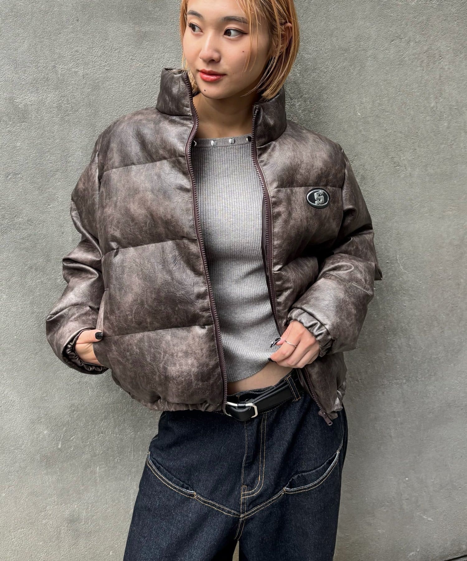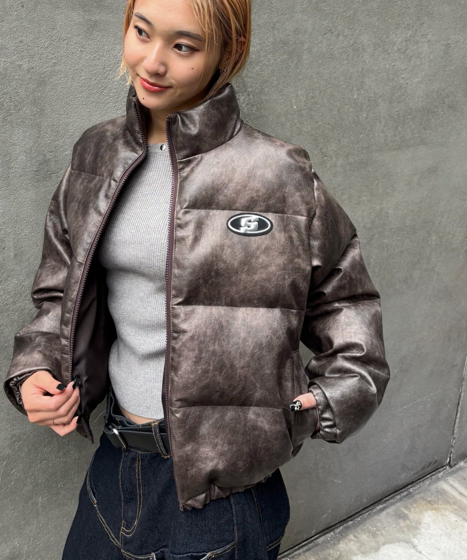 【UNISEX/サイズ展開あり】Sロゴヴィンテージライク中綿レザーブルゾン