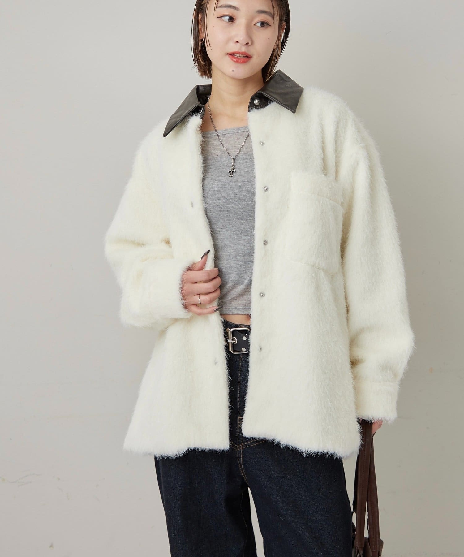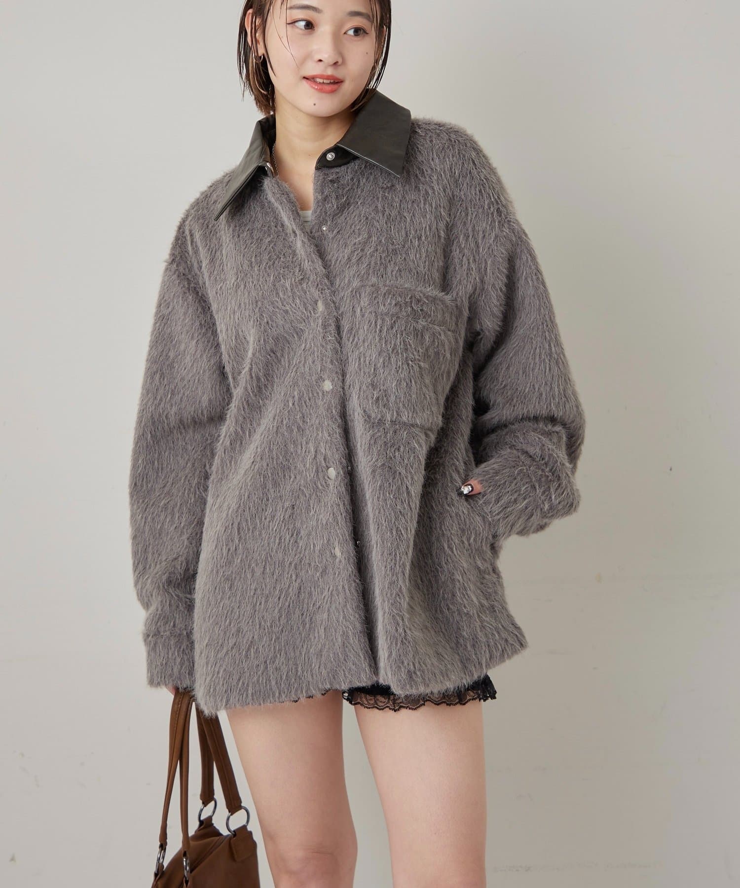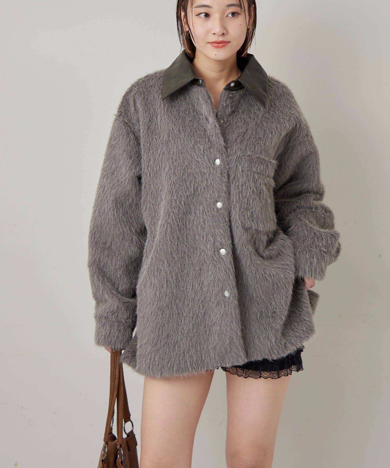 ・ 襟の切り替えデザインがおしゃれなシャギーシャツジャケット。