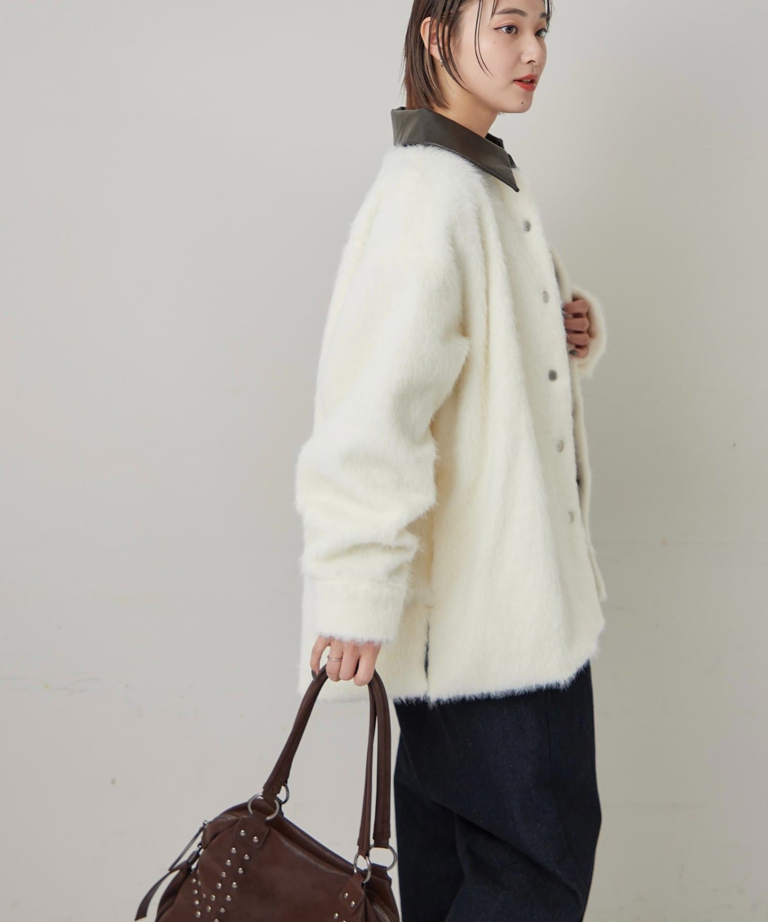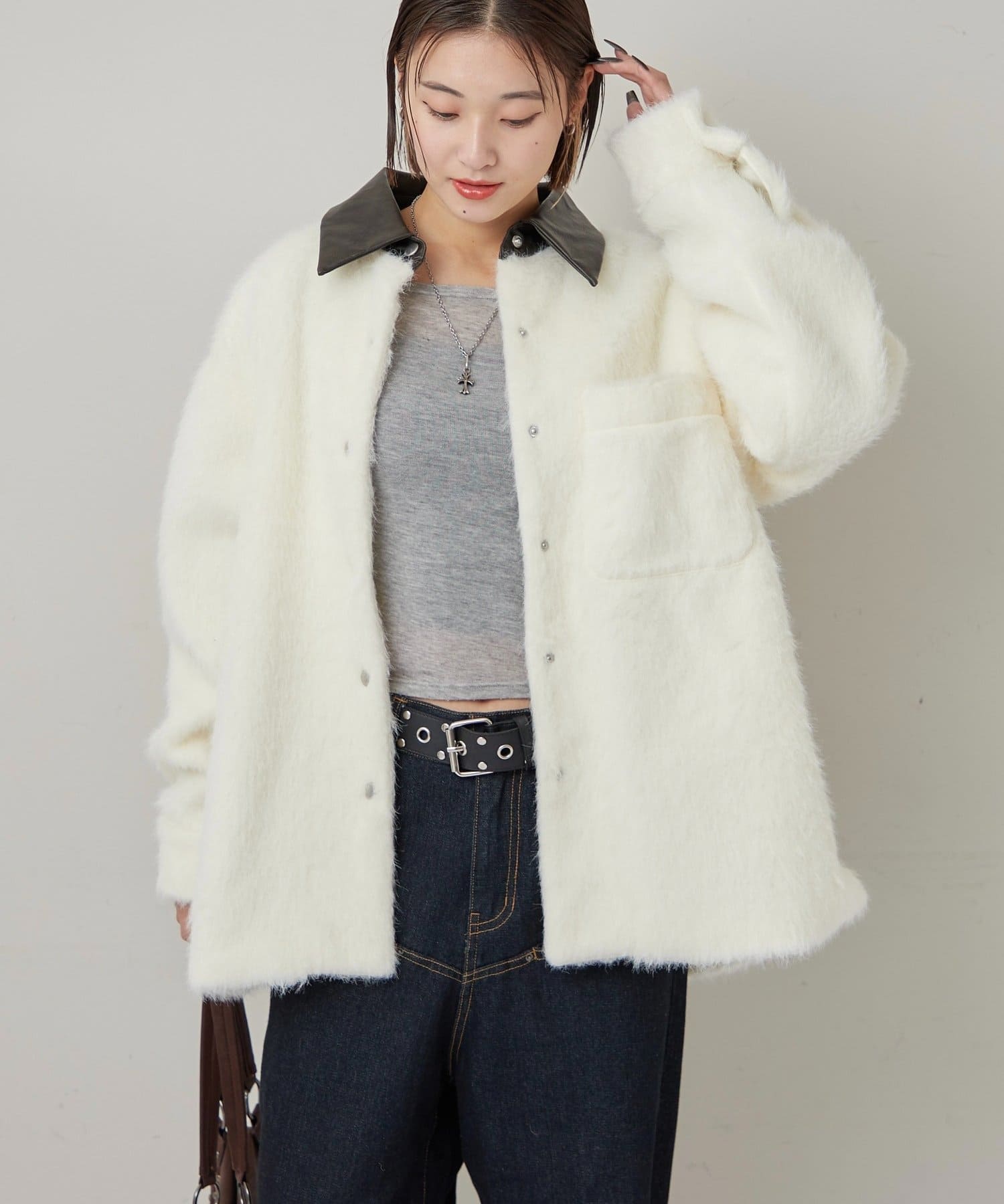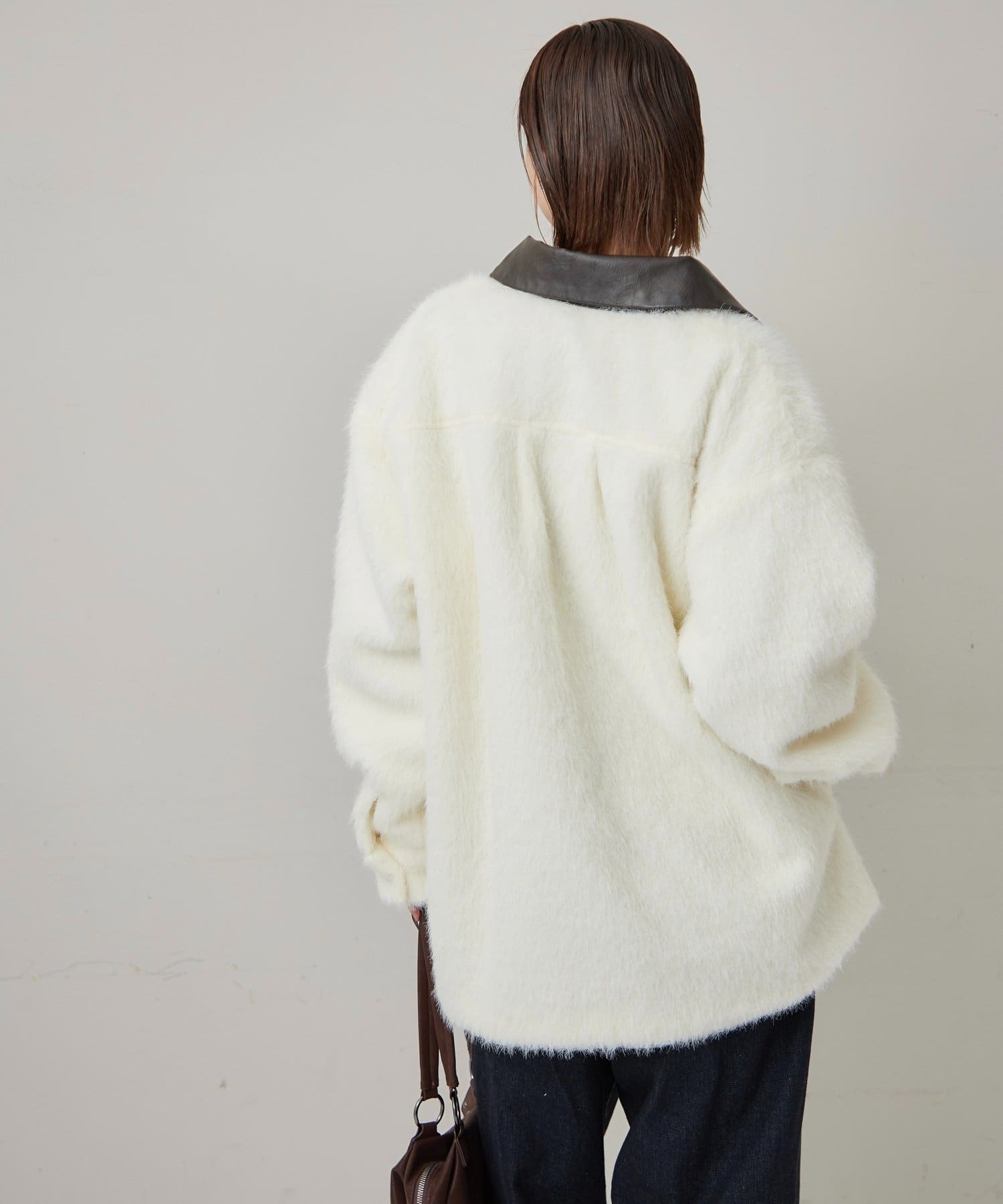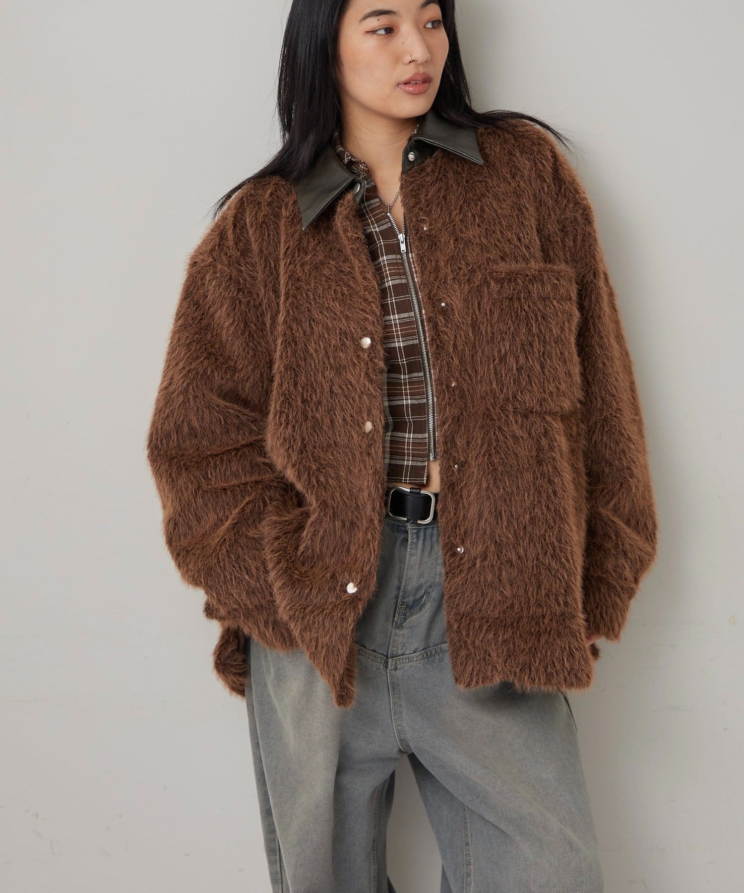 ・ 襟の切り替えデザインがおしゃれなシャギーシャツジャケット。