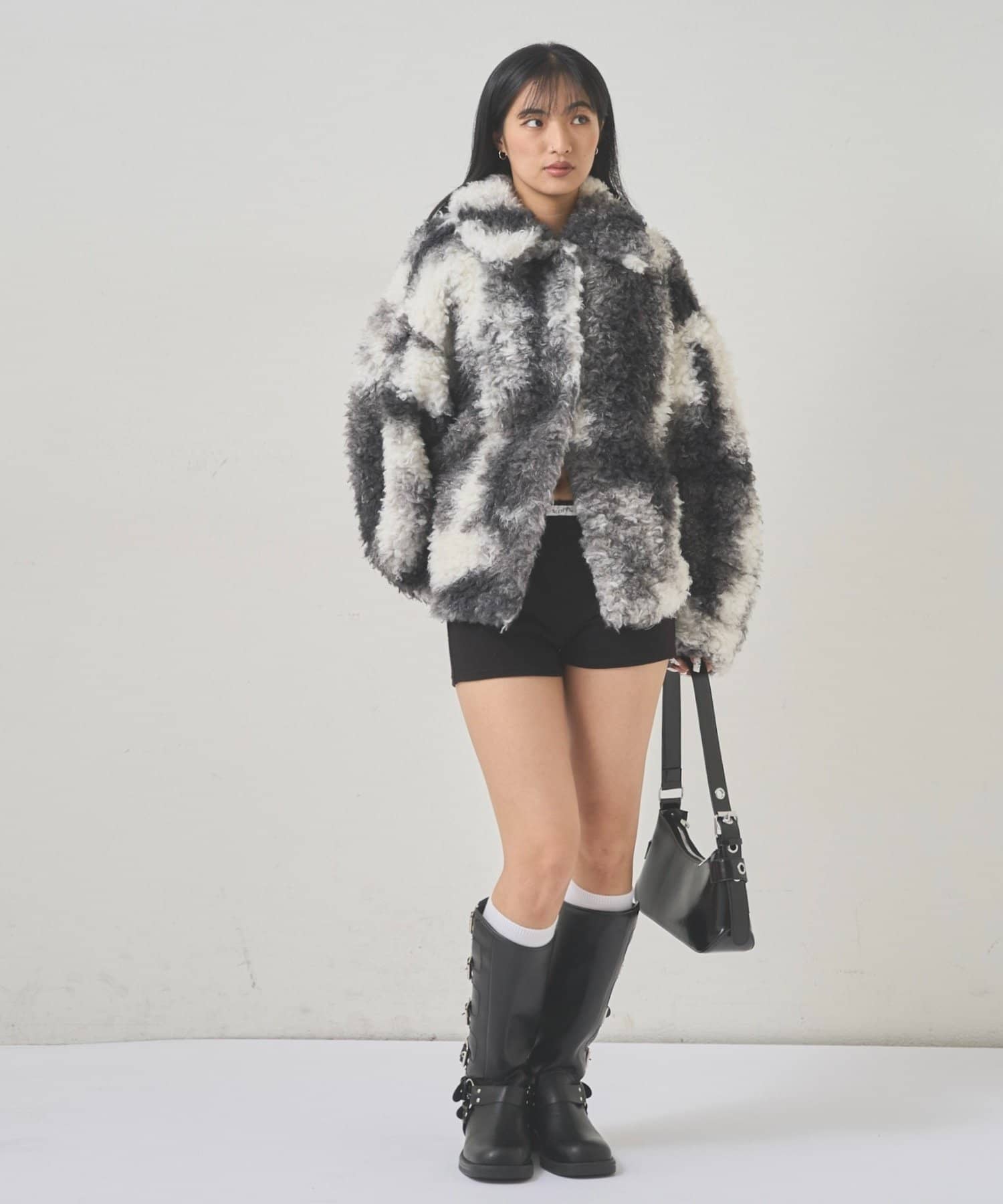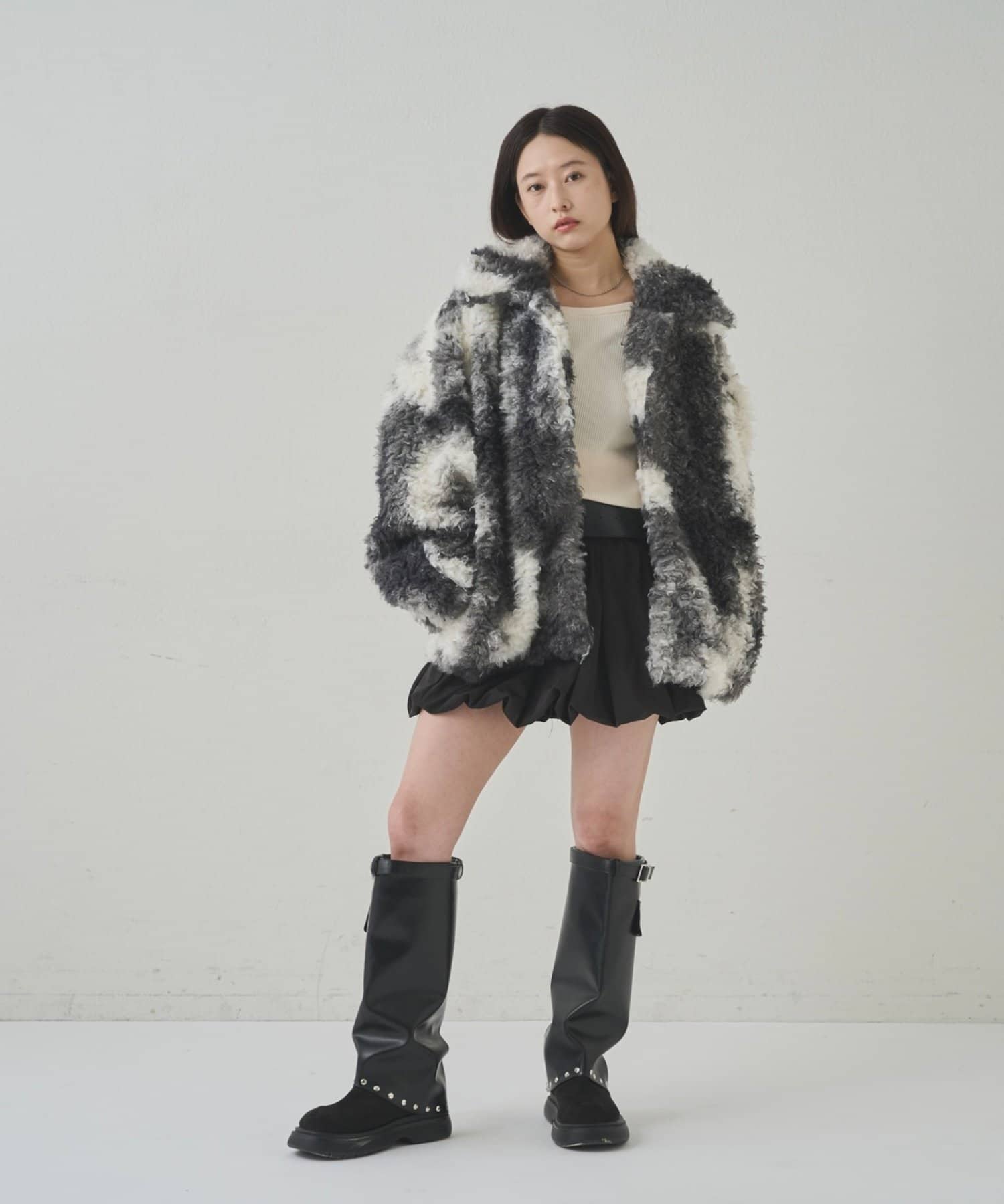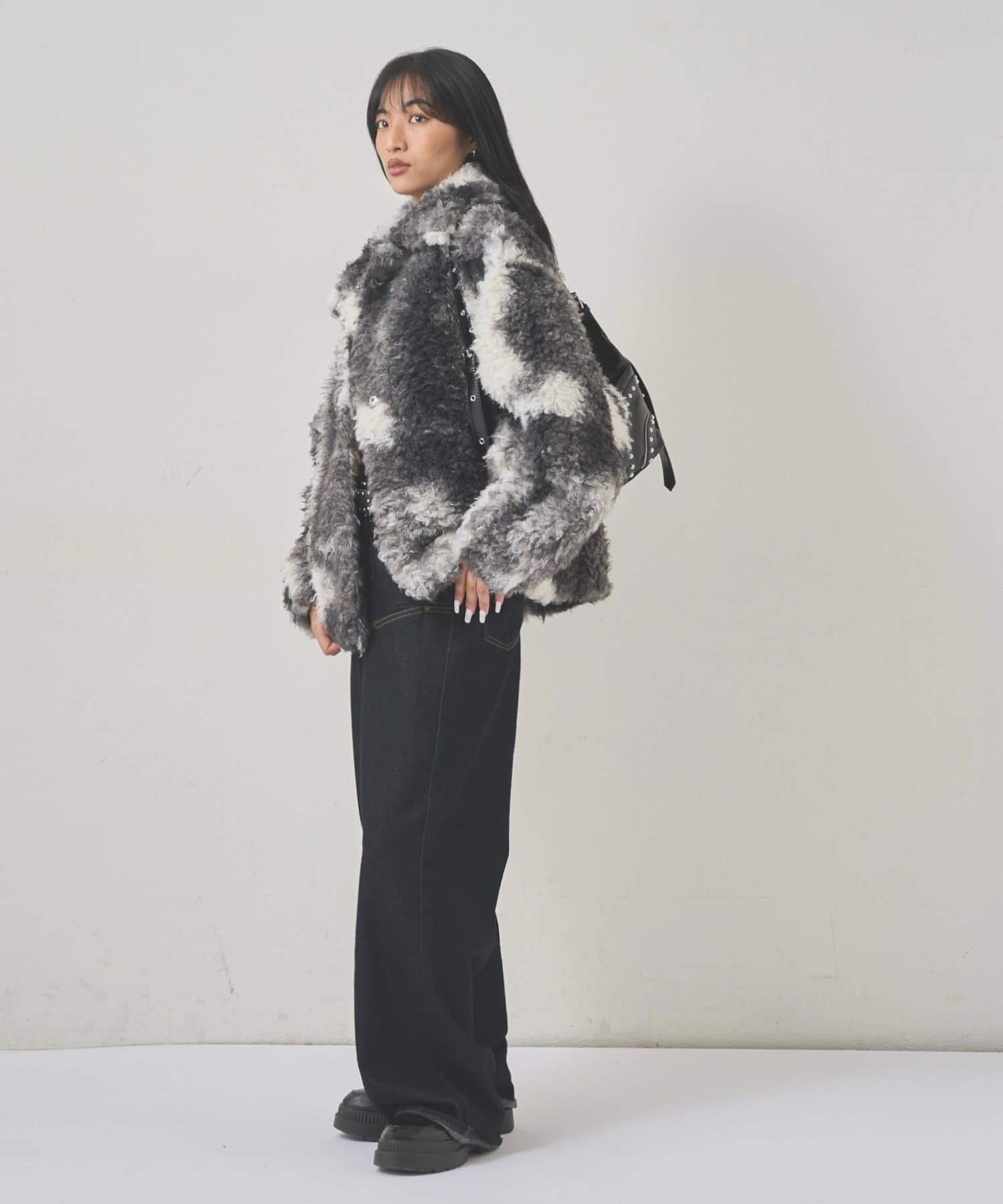 ・モノトーンカラーのまだら模様が、甘すぎない大人の遊び心を演出し、コーディネートの主役にもなります。