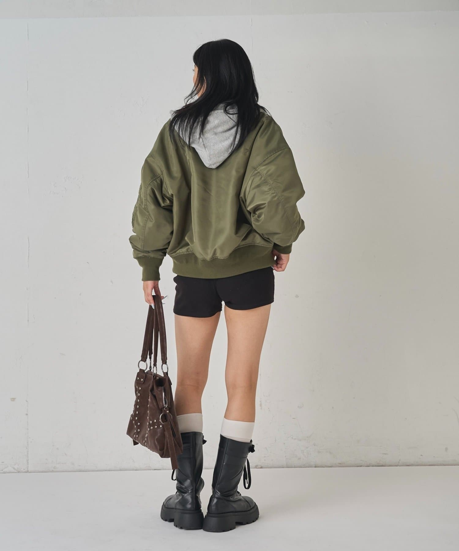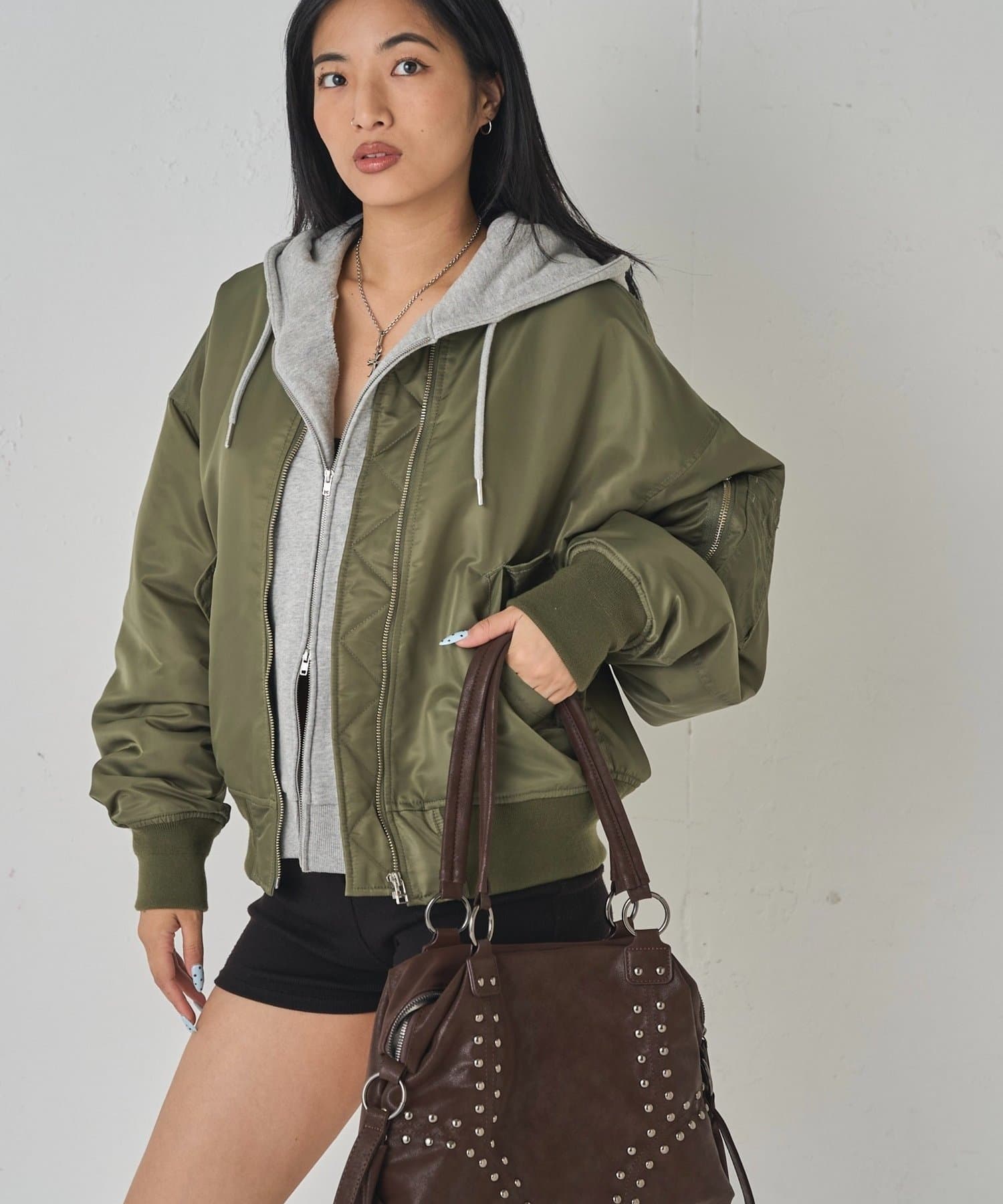 ・スカートやワンピースに羽織って、甘辛ミックスな着こなしも楽しめます。