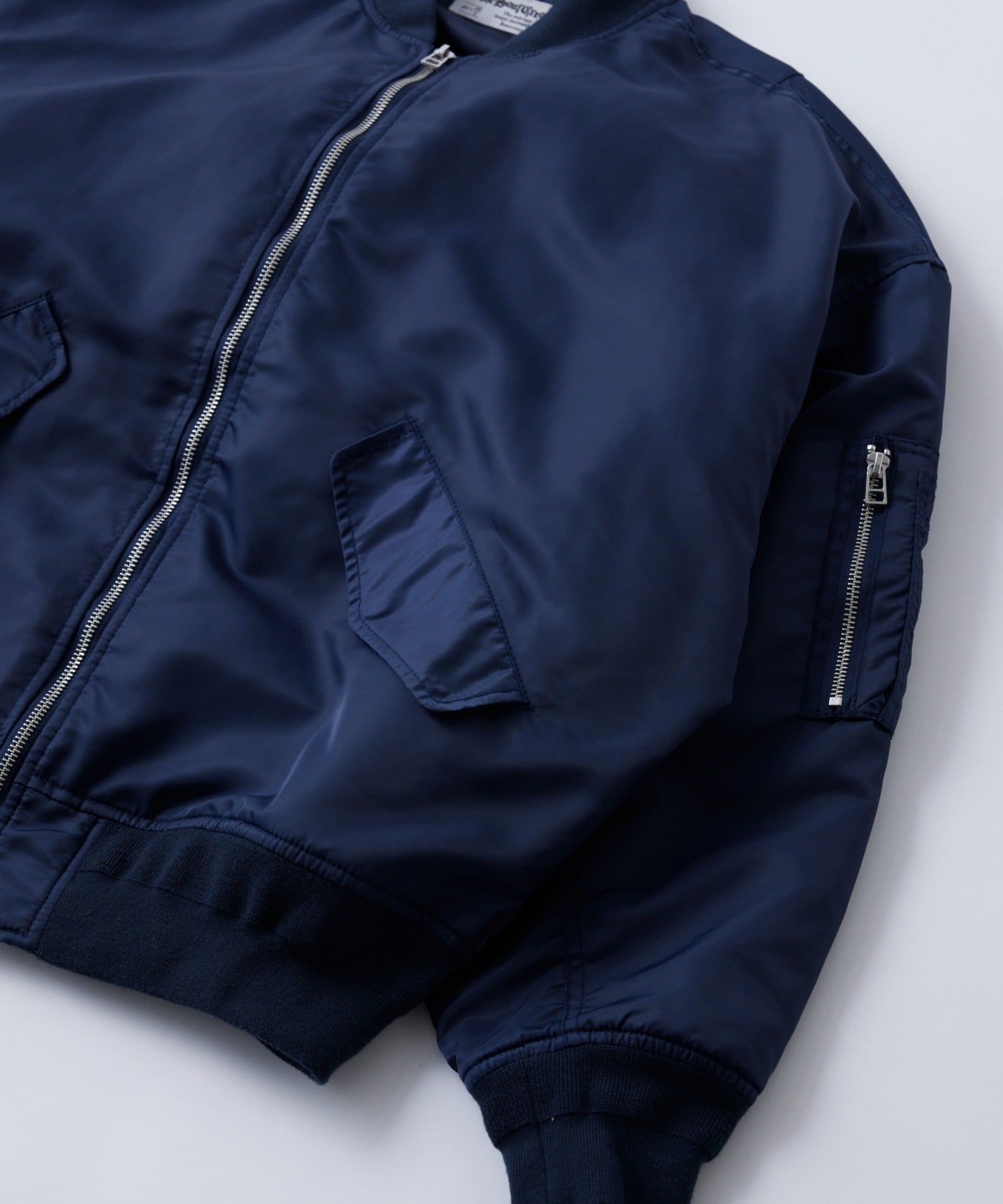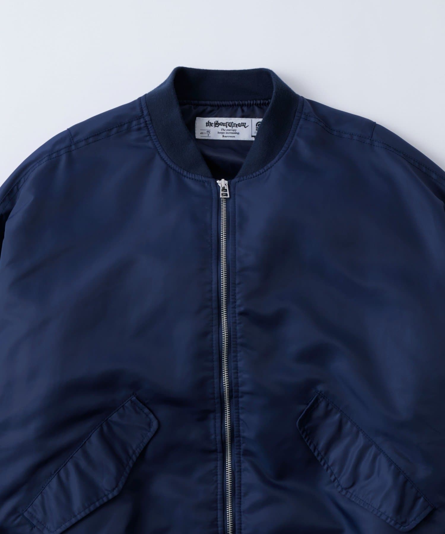・すっきりとしたリブ襟、フロントジップ、フラップ付きポケットなど、MA-1ならではのディテールはそのままに、無駄を削ぎ落としたシンプルでミニマルなデザイン。