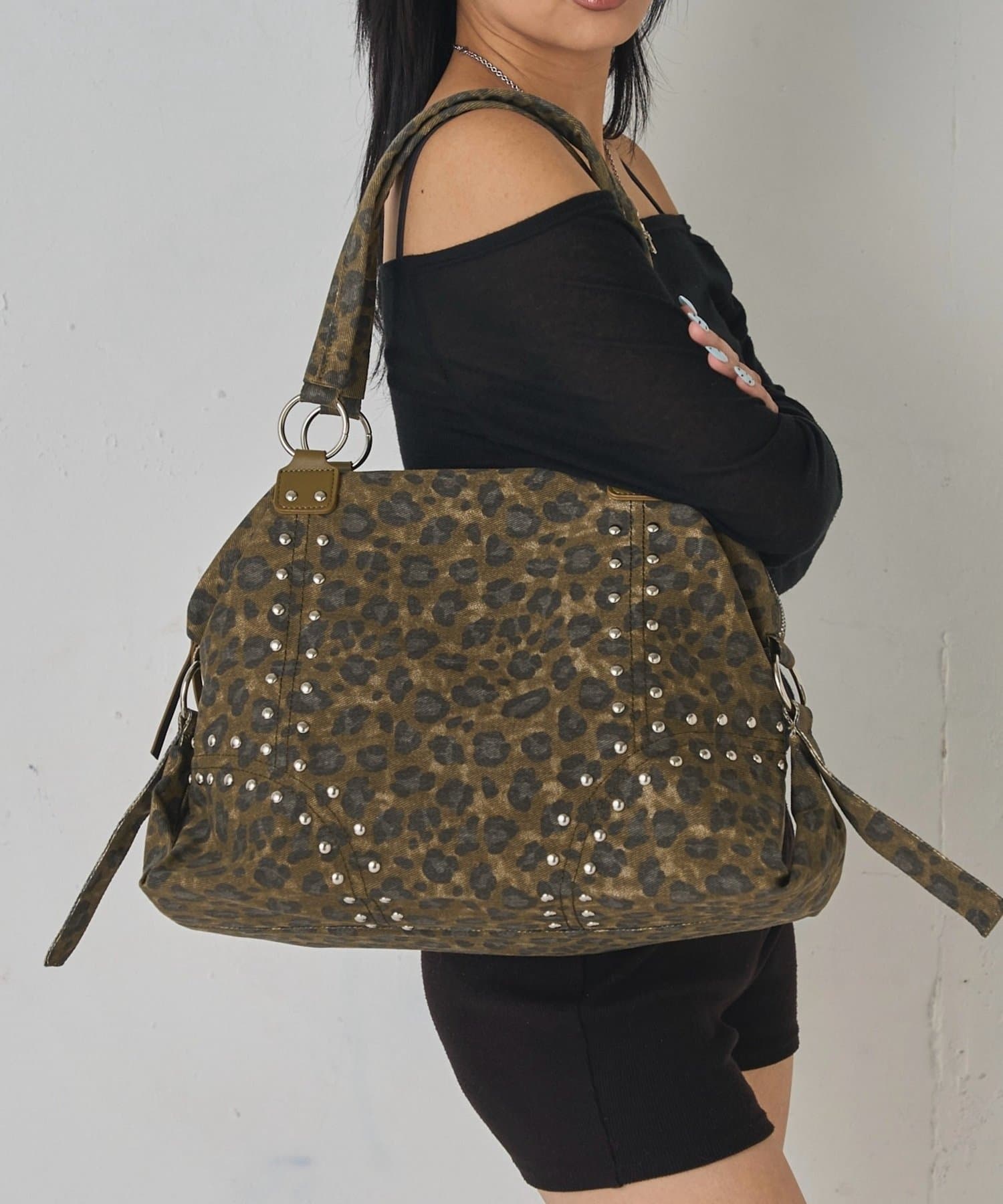 ・今年トレンドの、スタッズがついたボストンバッグ。