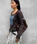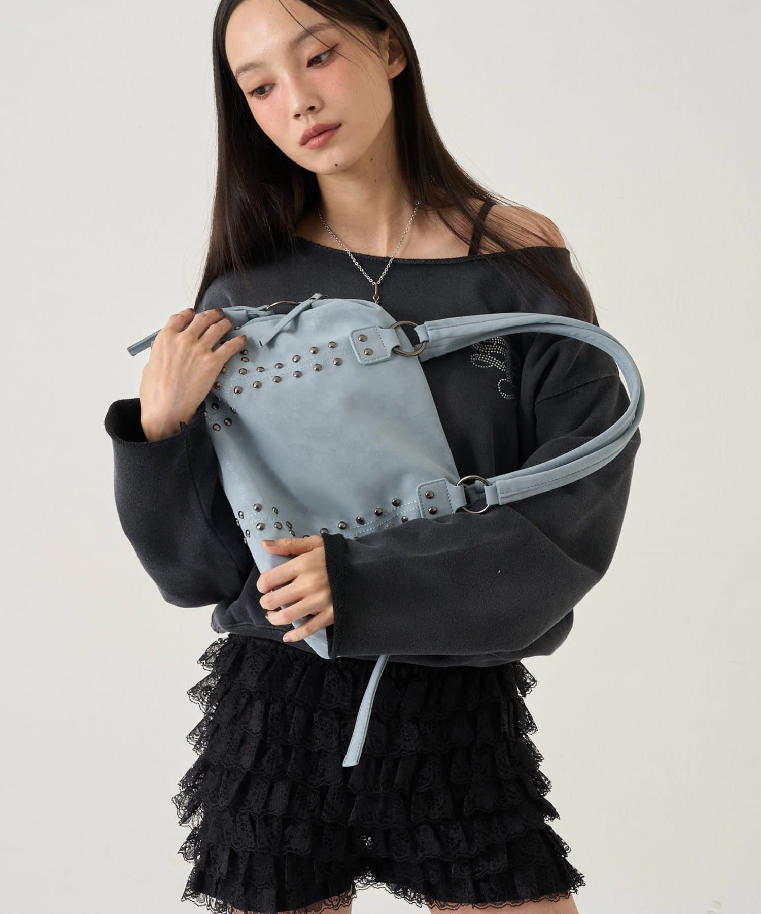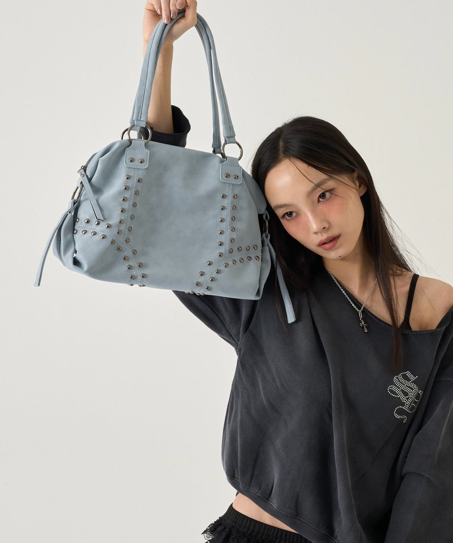 エッジの効いたスタッズが目を引くショルダーバッグ。