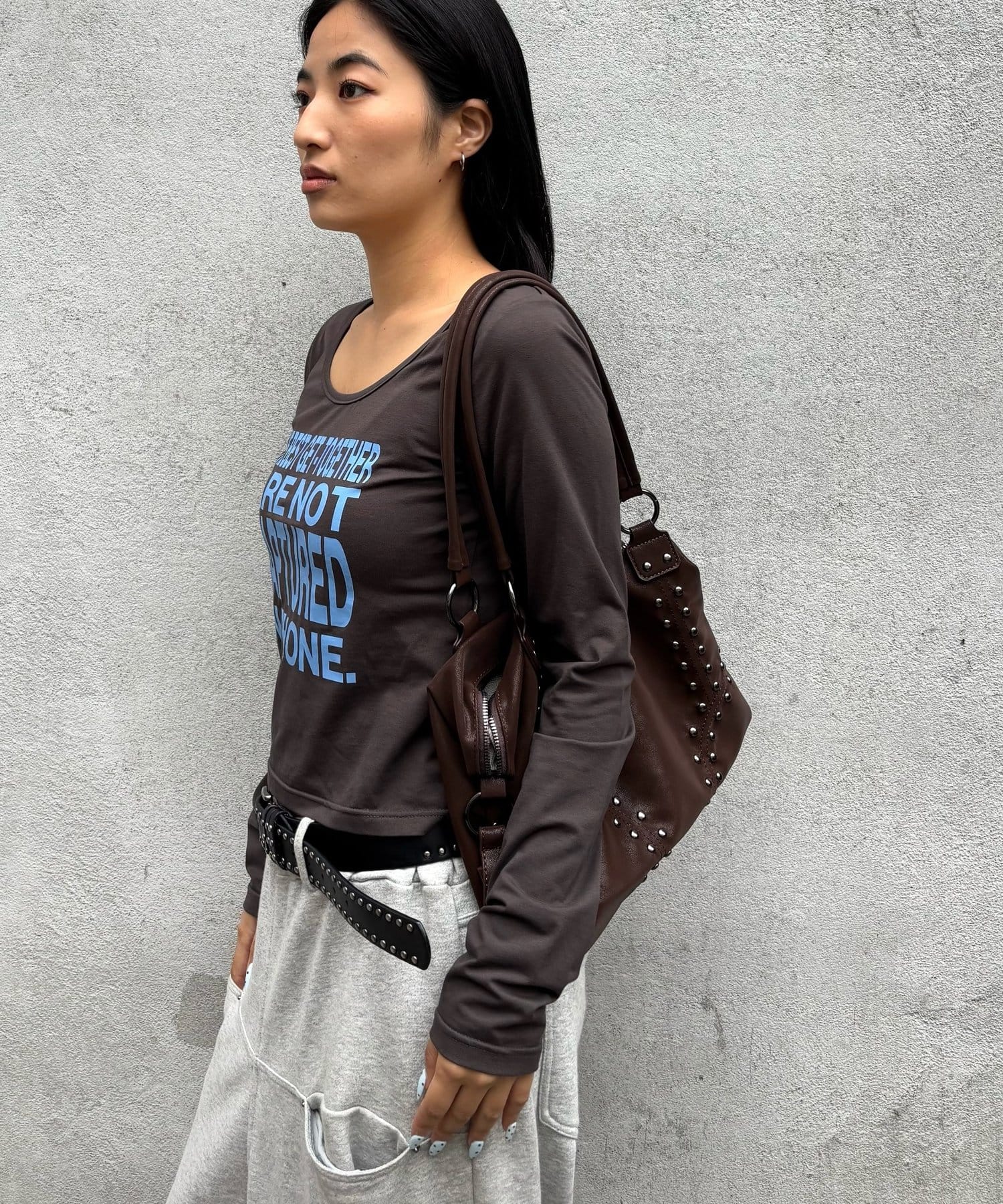 ・フェイクレザーとスタッズの組み合わせが、かっこ良さを増してくれるショルダーバッグ。