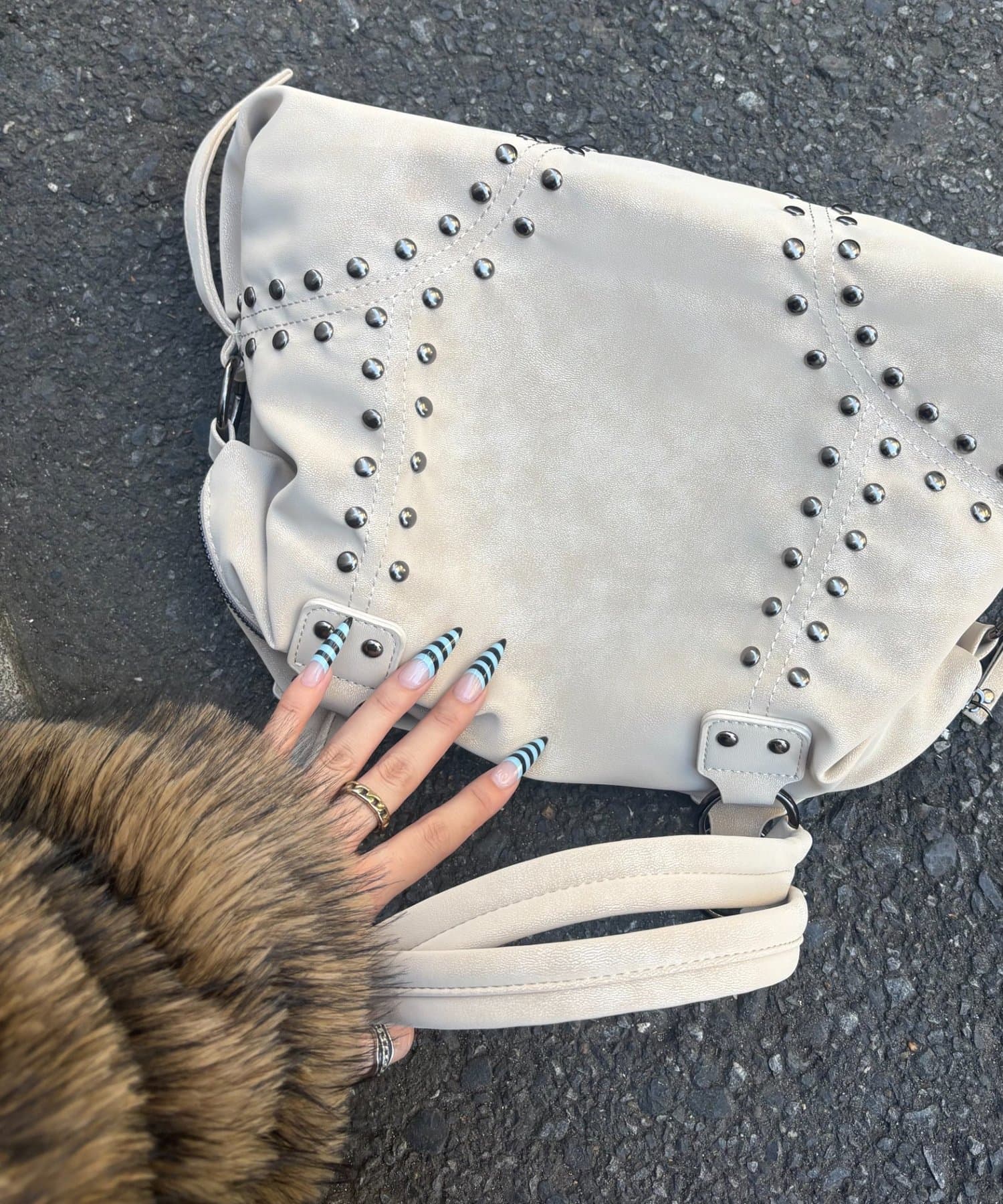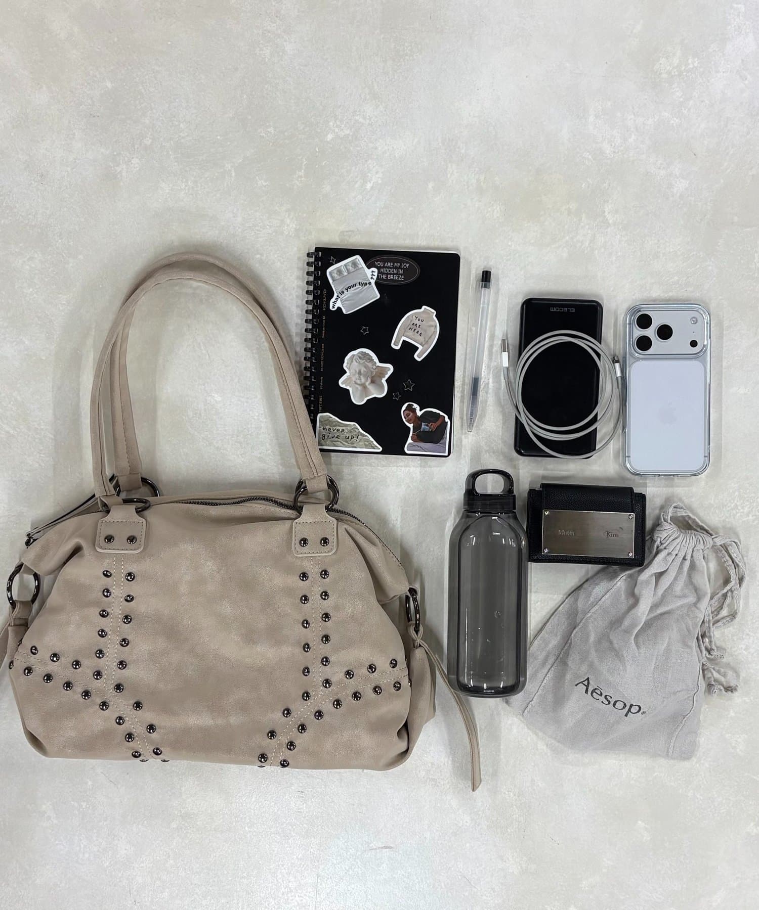 ・フェイクレザーとスタッズの組み合わせが、かっこ良さを増してくれるショルダーバッグ。