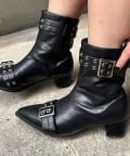 ・ダブルベルトがアクセントになった、辛口デザインのショートブーツ。