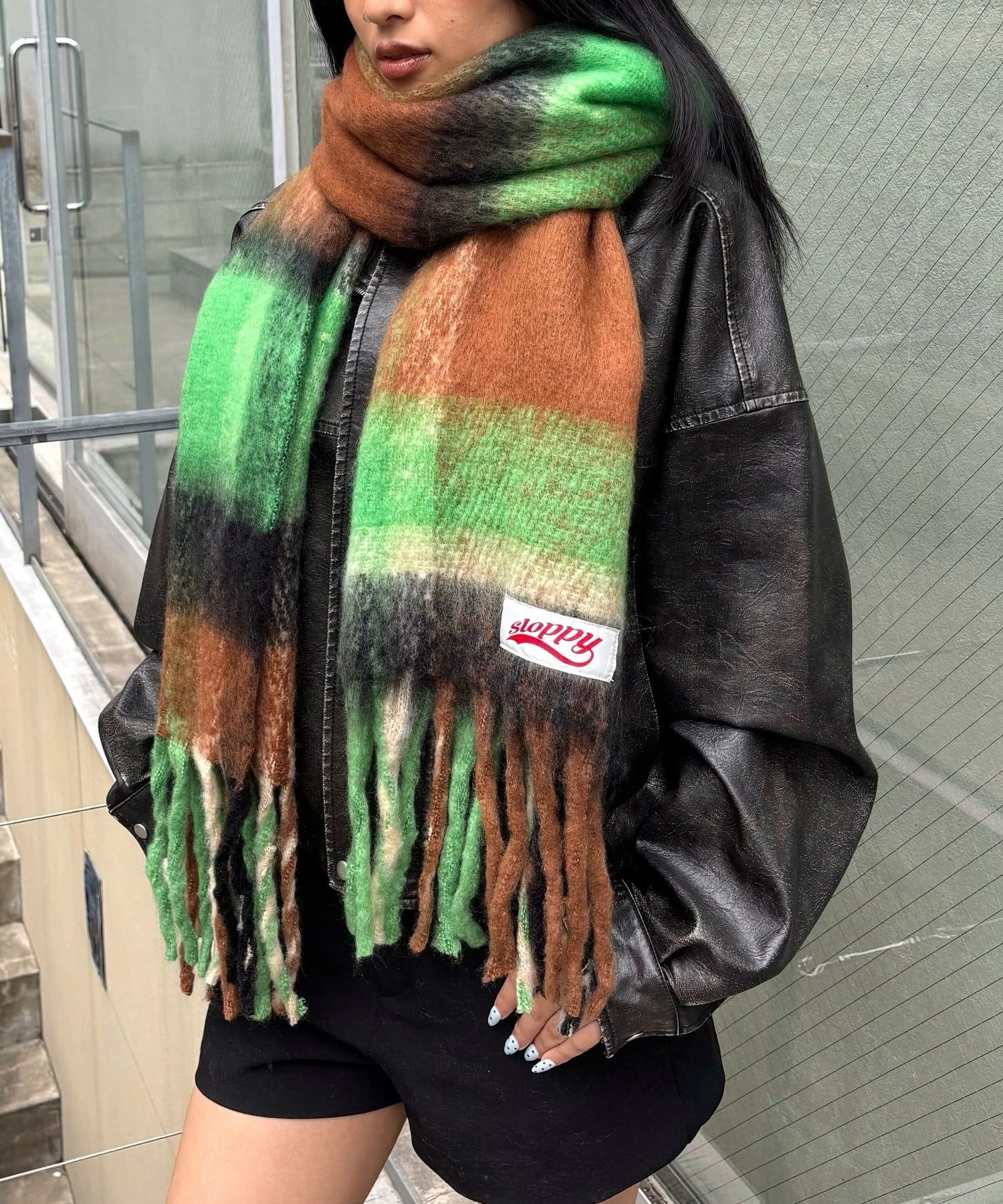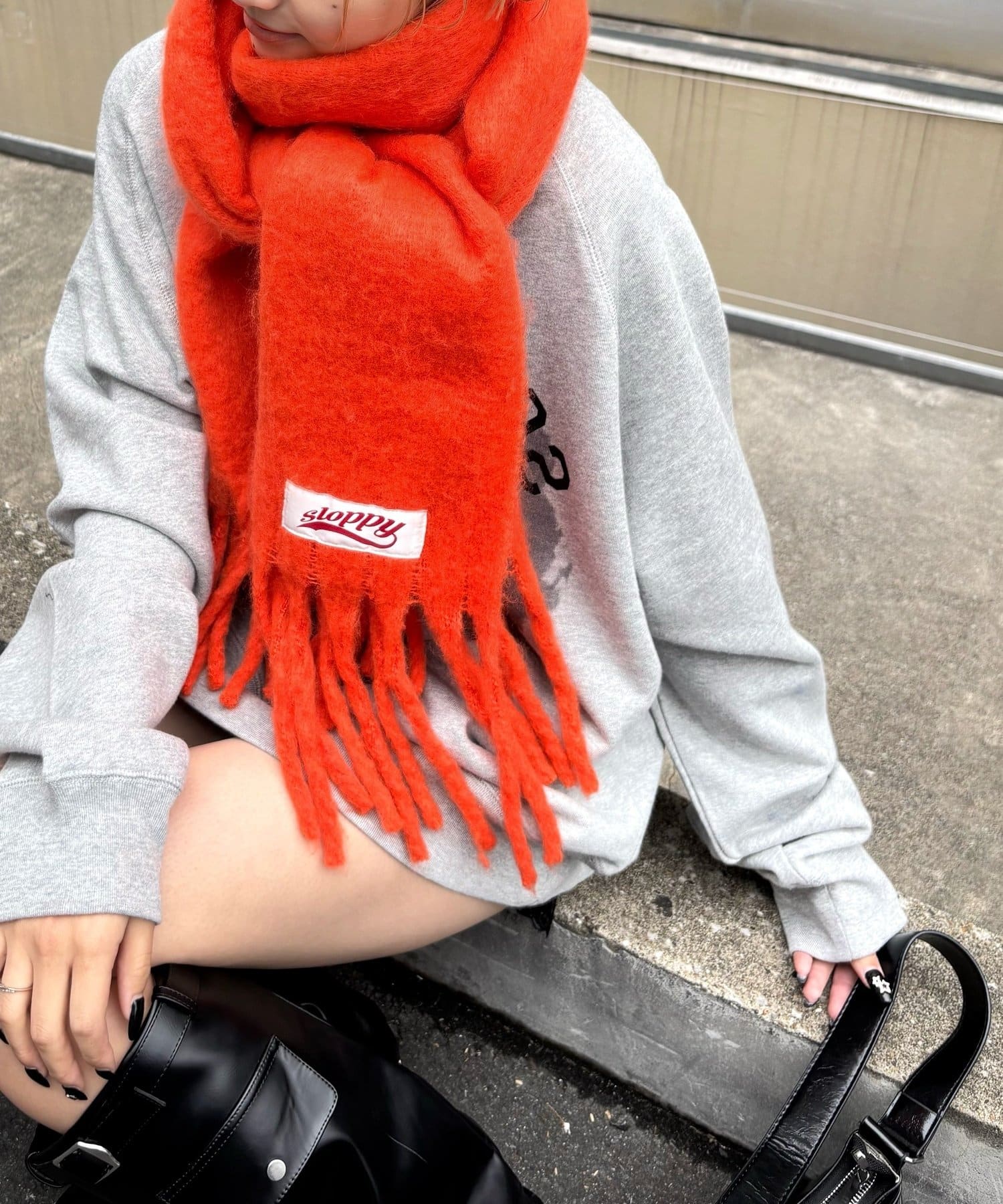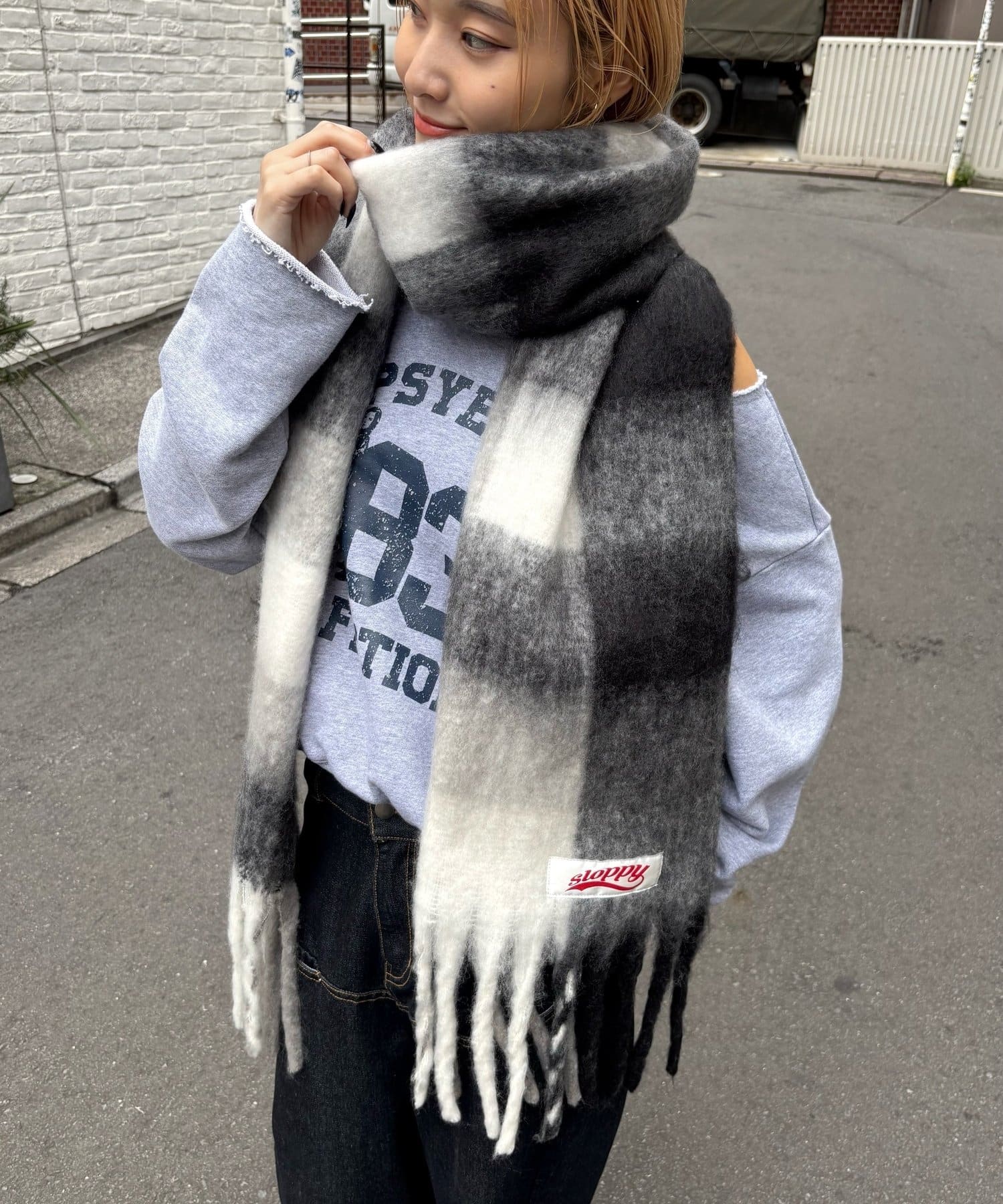 ・SLOPPYのネームタグがさりげないアクセントになるマフラー。