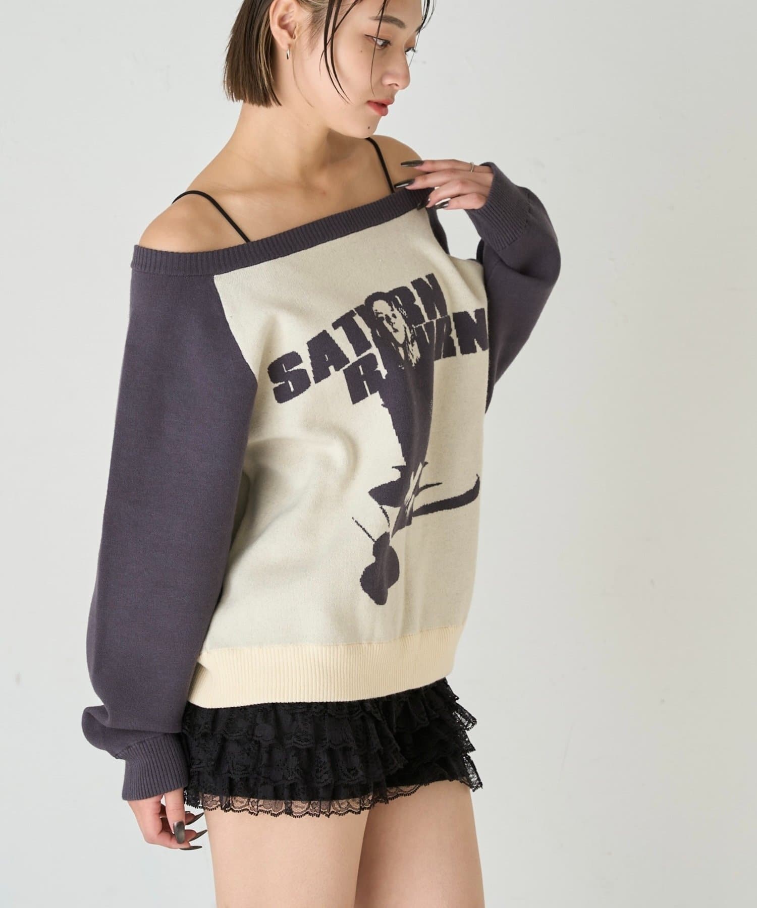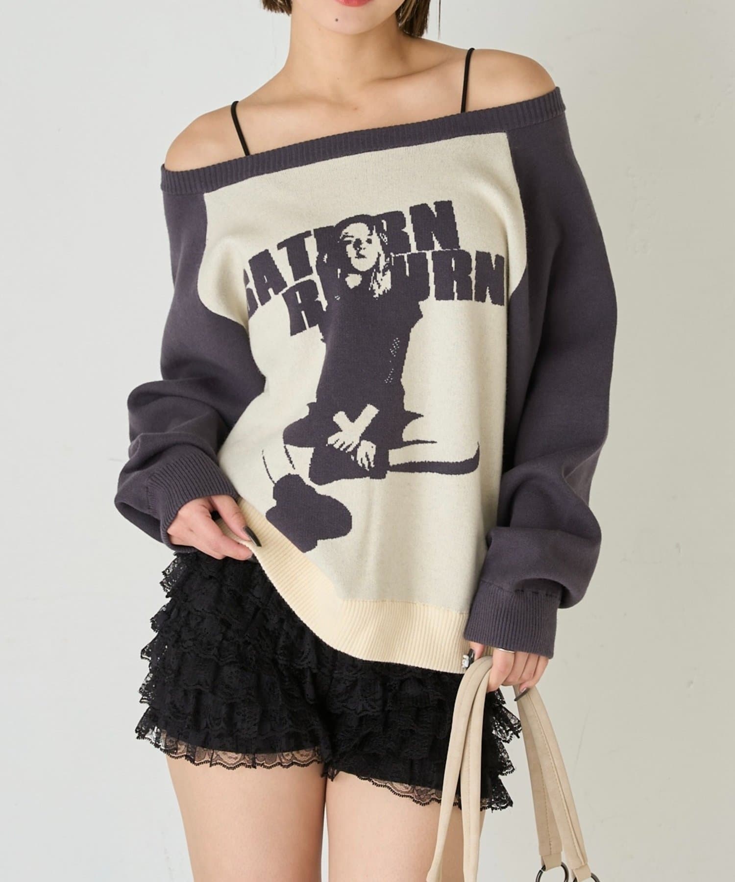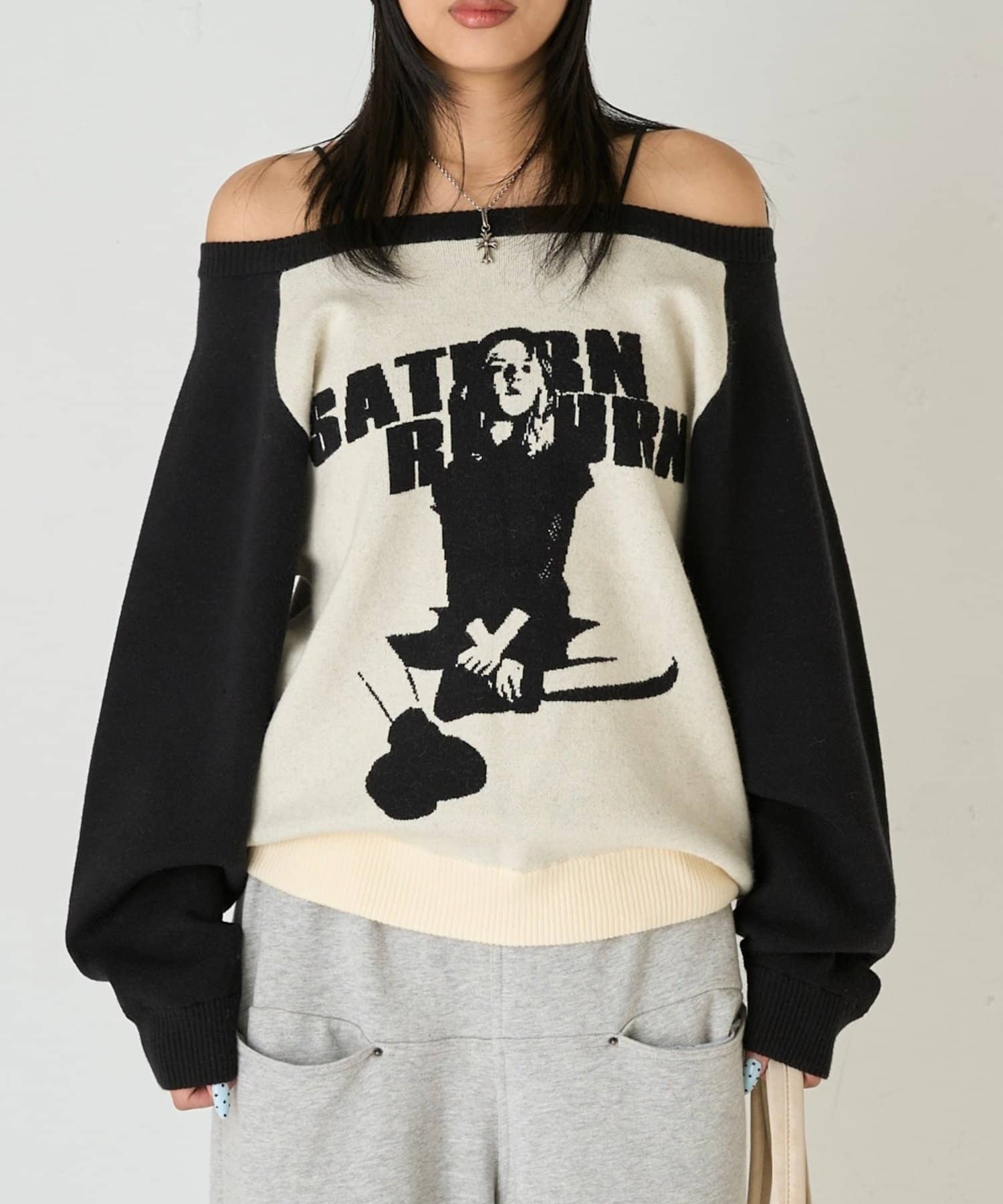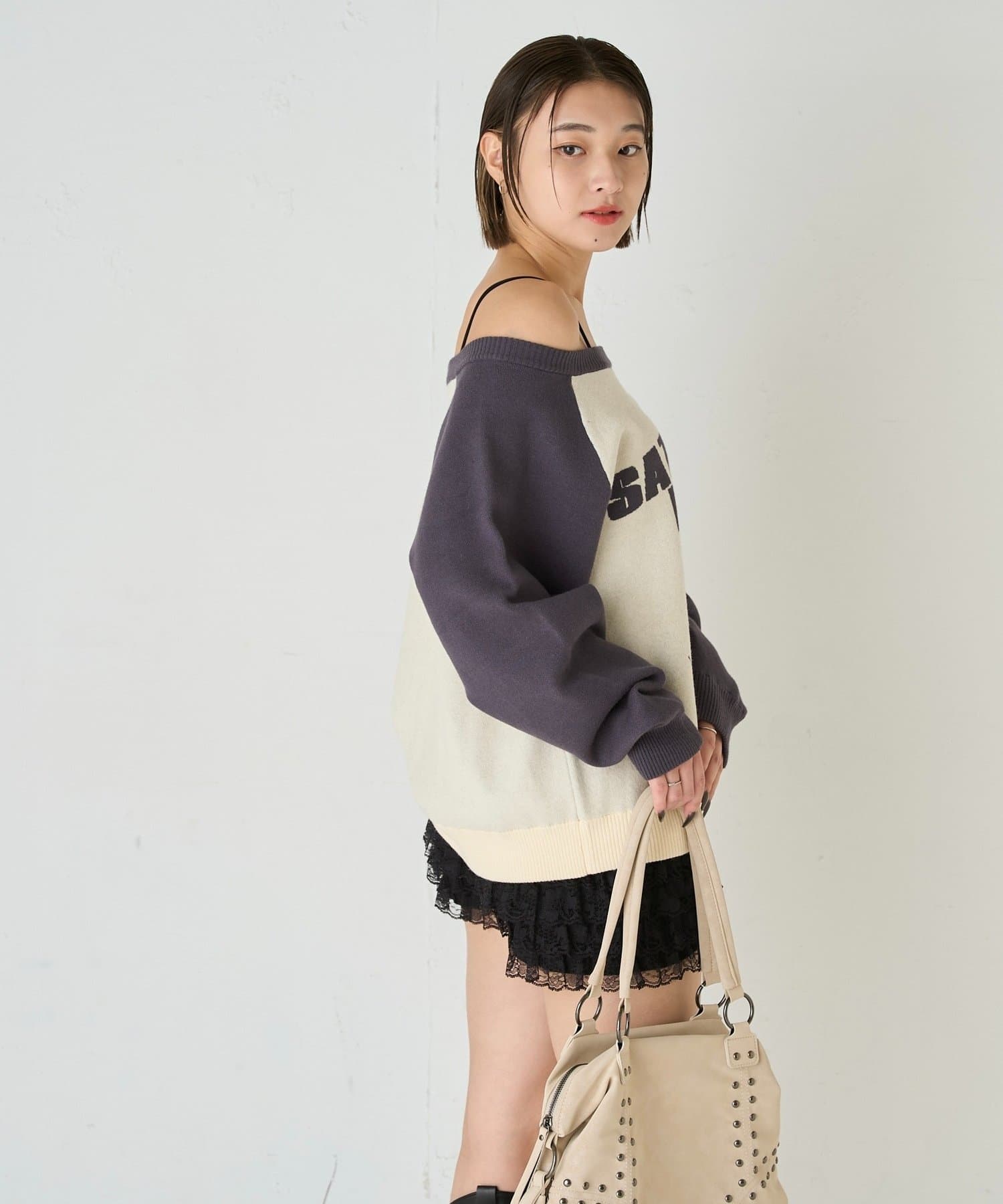・肩部分を落としてワンショルダーやオフショルダーにして2WAYで楽しめるニット。