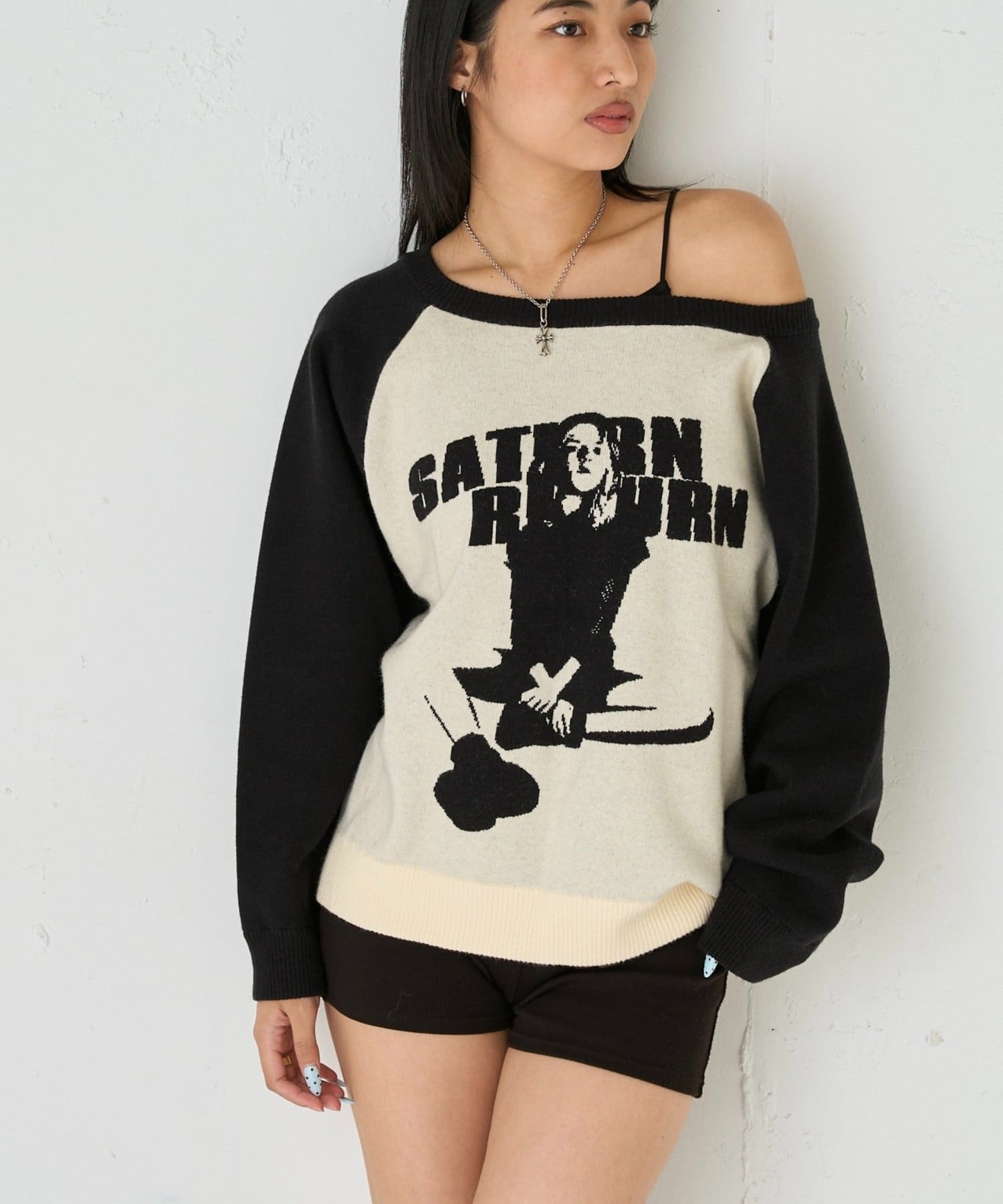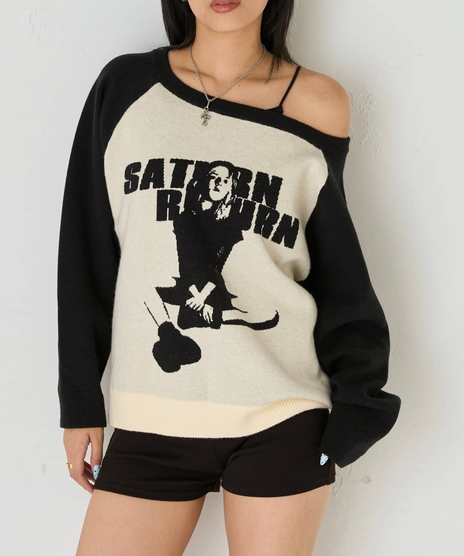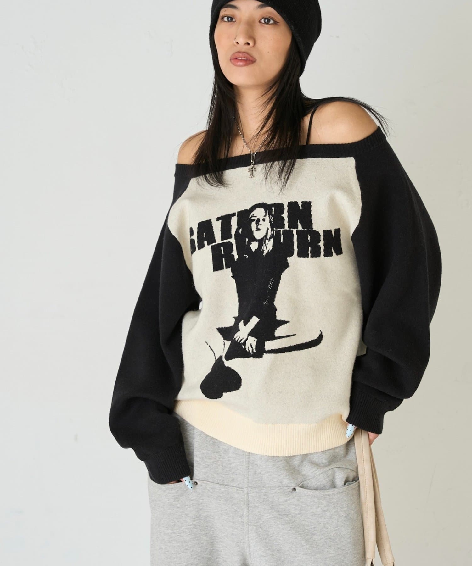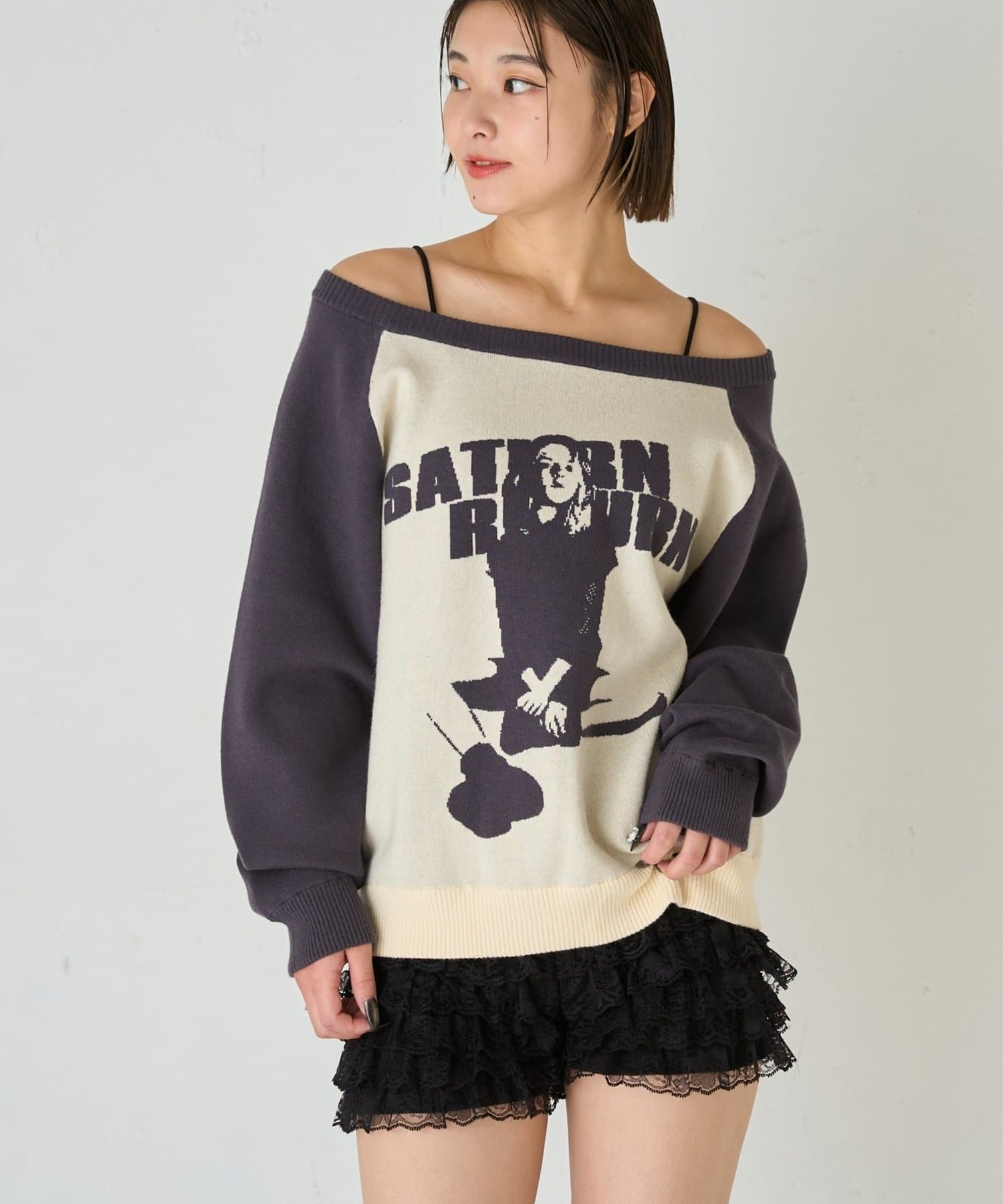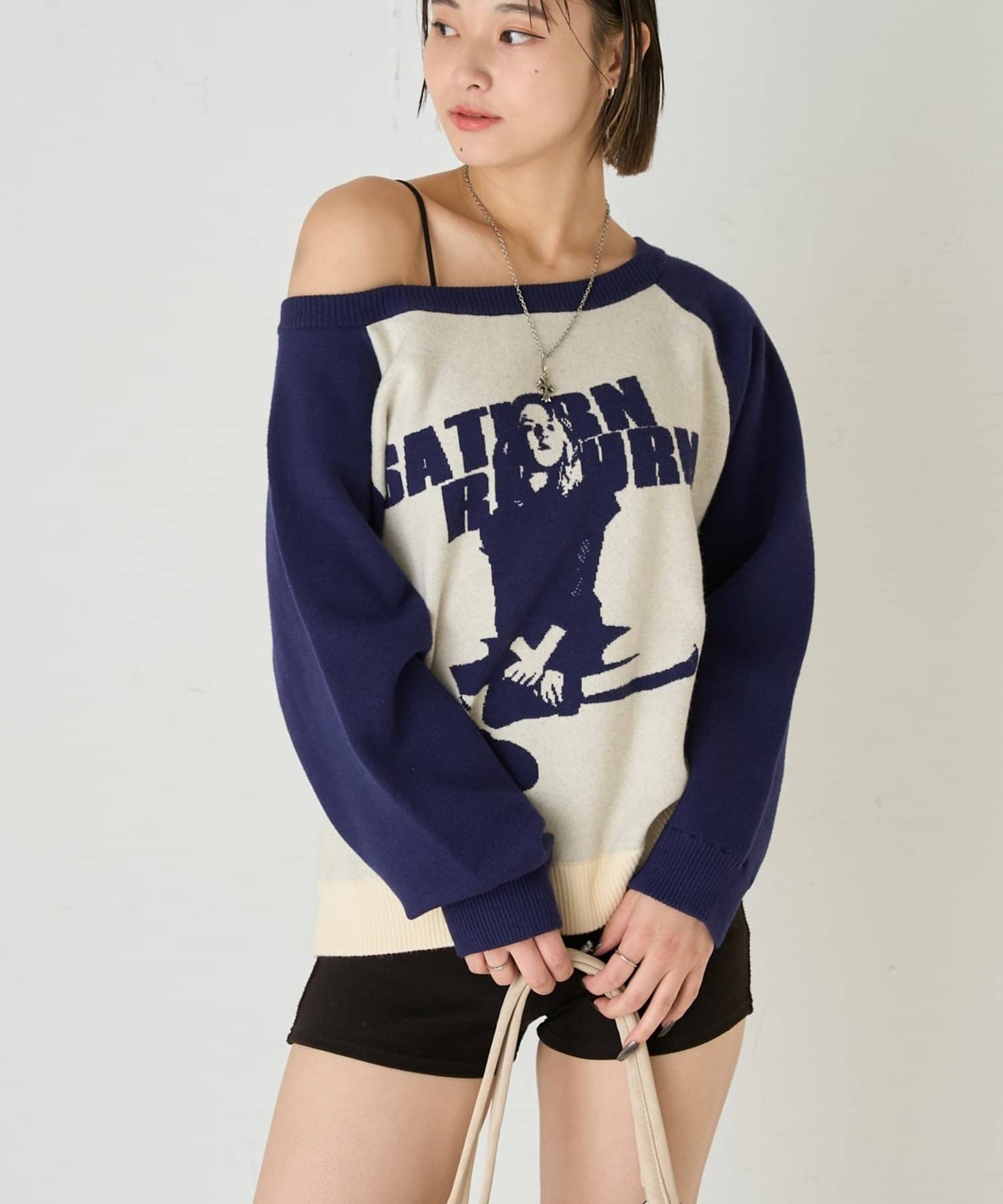 ・肩部分を落としてワンショルダーやオフショルダーにして2WAYで楽しめるニット。