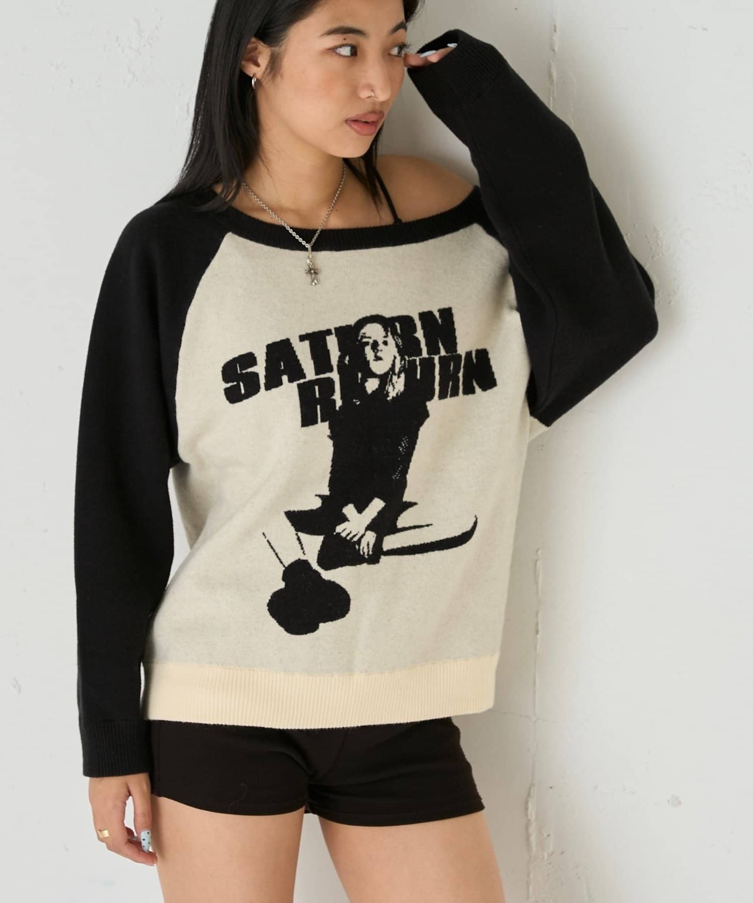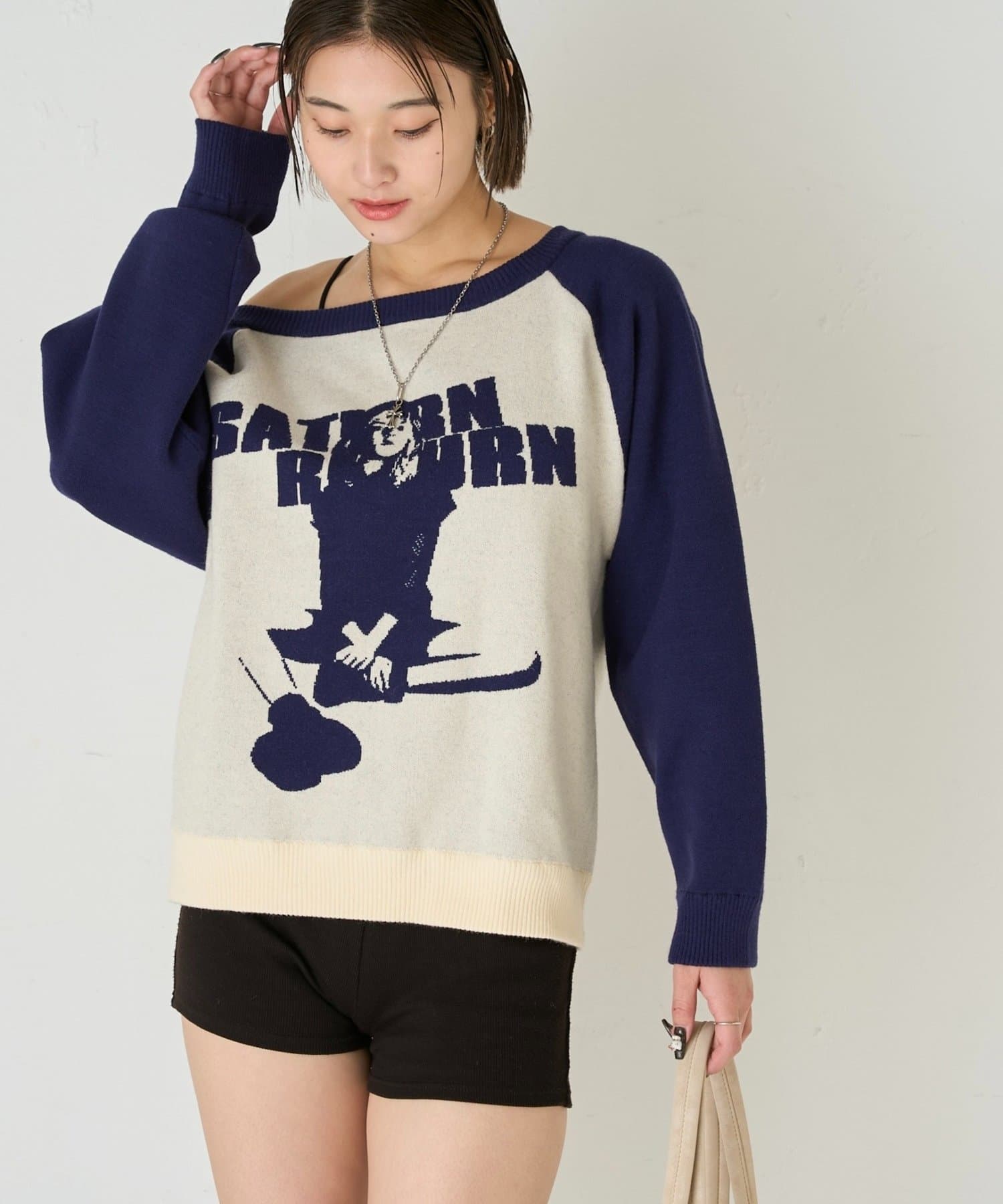 ・目を引く大胆なプリントが、ストリートスタイルにぴったりのニットトップス。